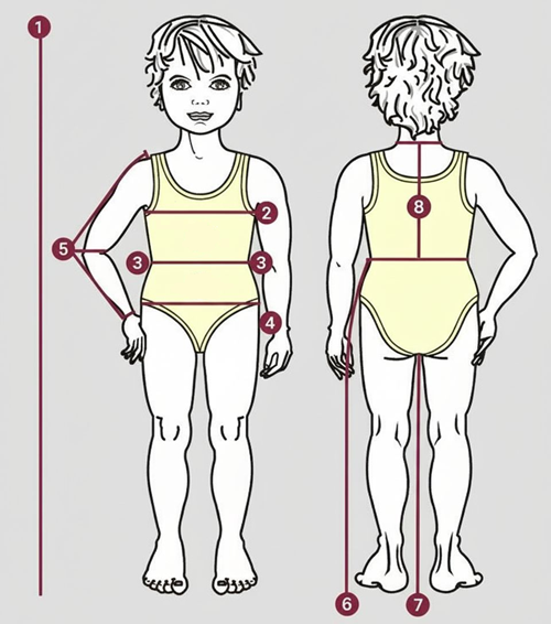 Для начала подготовьте всё необходимое: мягкую сантиметровую ленту, шнурок или тесёмку, чтобы обозначить линию талии, а также бумагу и ручку для записей. Снимать мерки удобнее всего, если ребёнок раздет до трусиков: так лента не будет «съезжать» на складках одежды, и вы получите более точные значения.