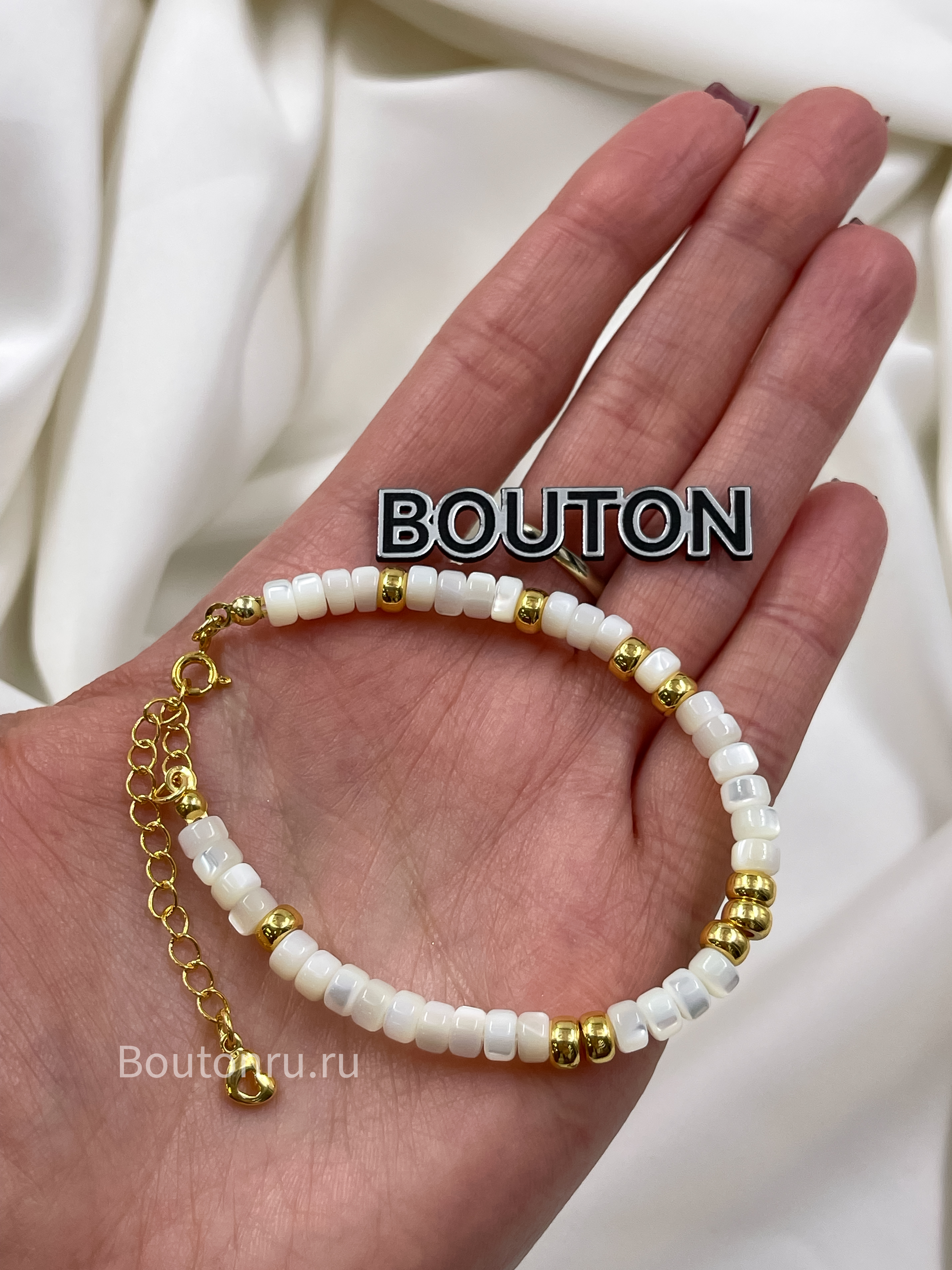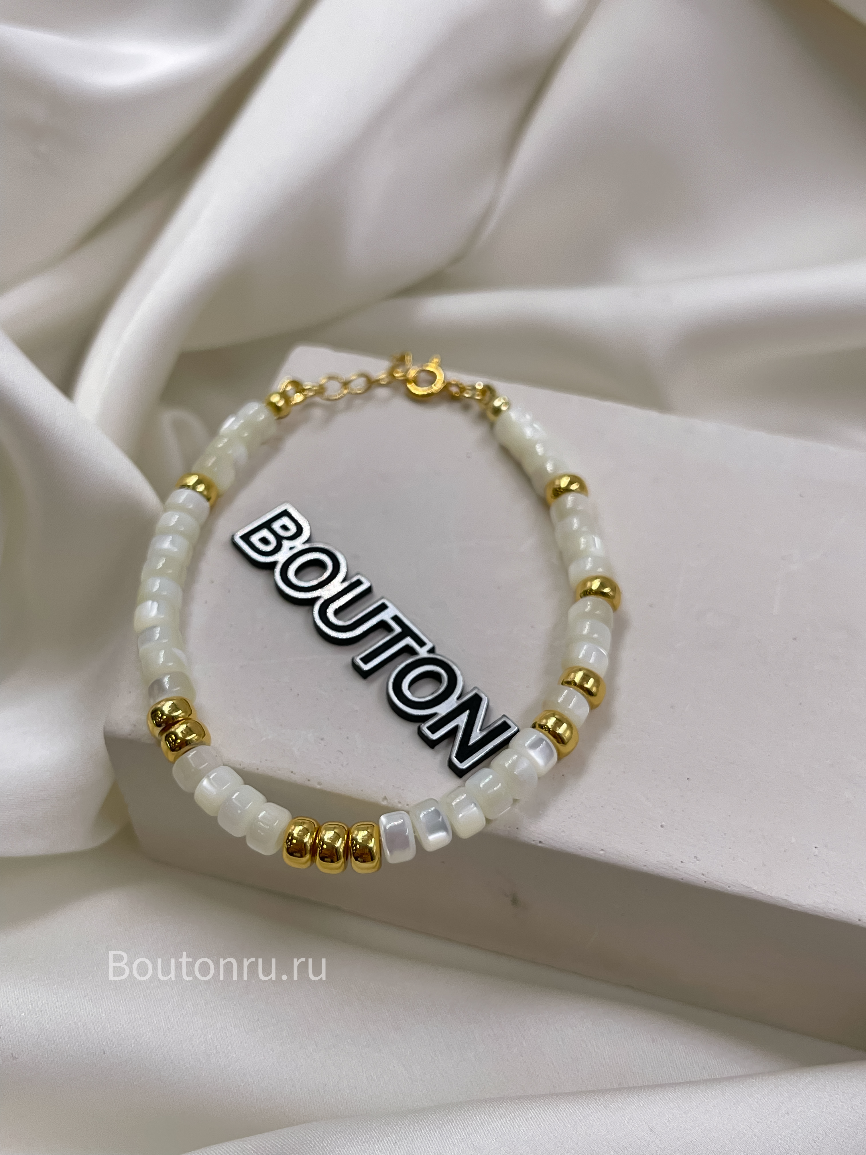 Браслет из натурального белого перламутра с золотистой фурнитурой