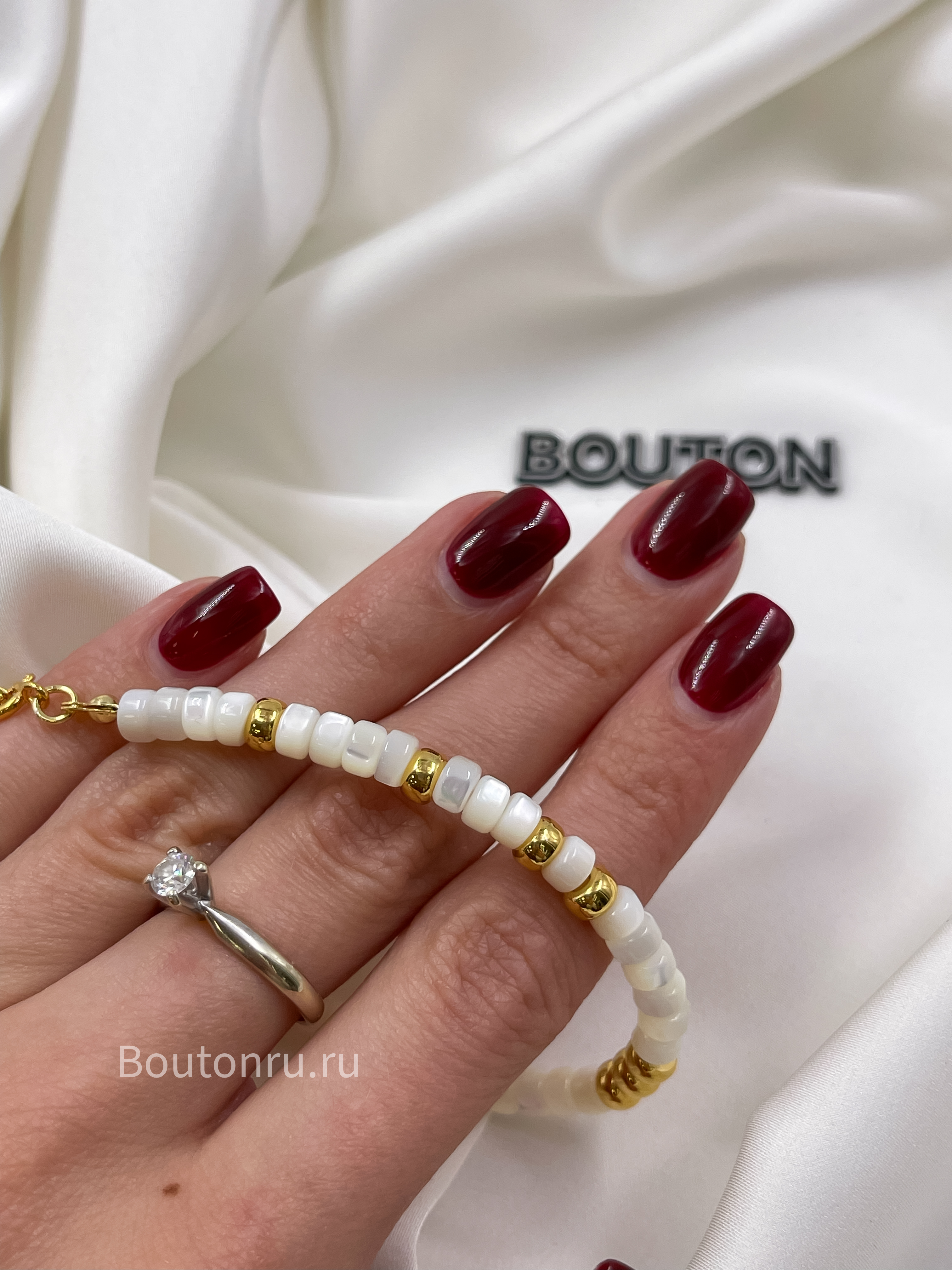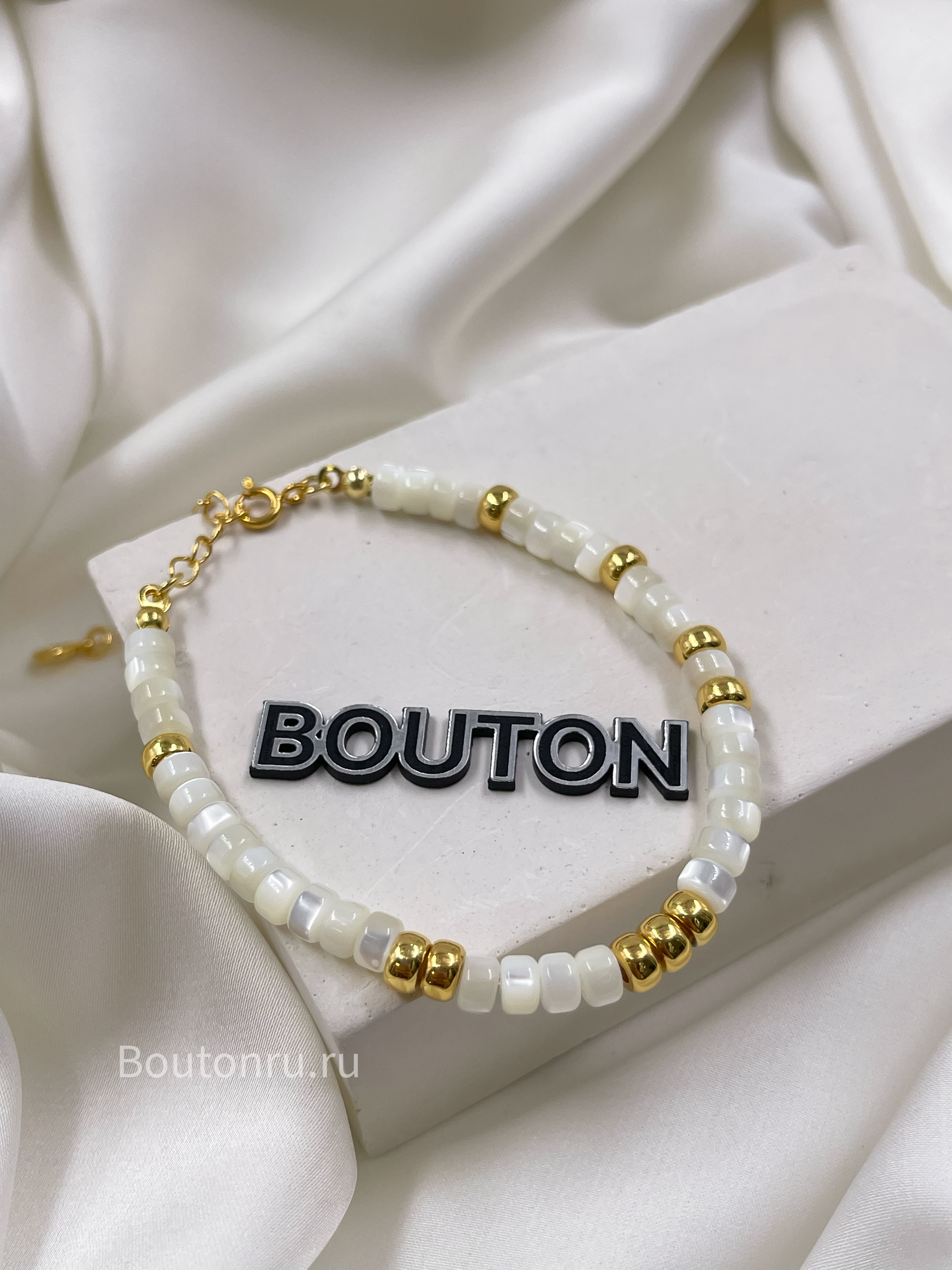 Золотистый браслет с натуральным перламутром