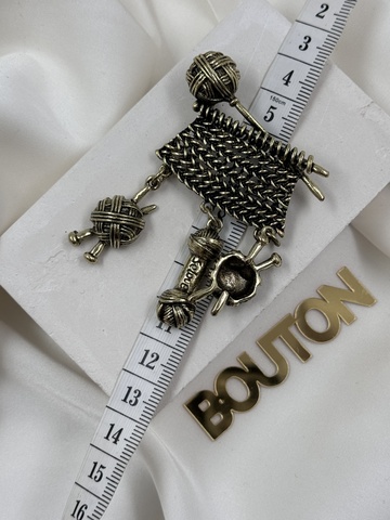 Невероятная брошь из бронзового металла с имитацией пряжи и спиц