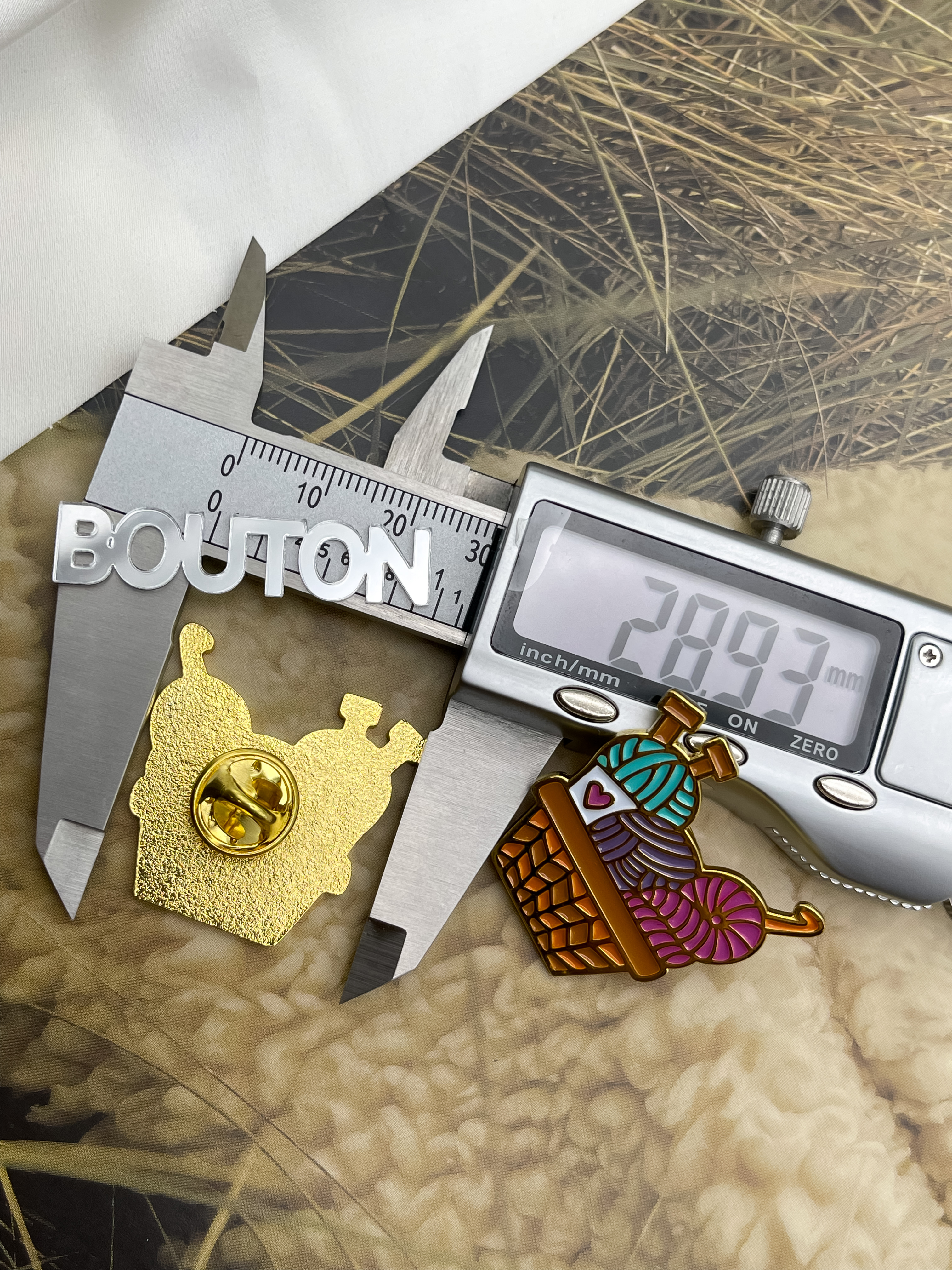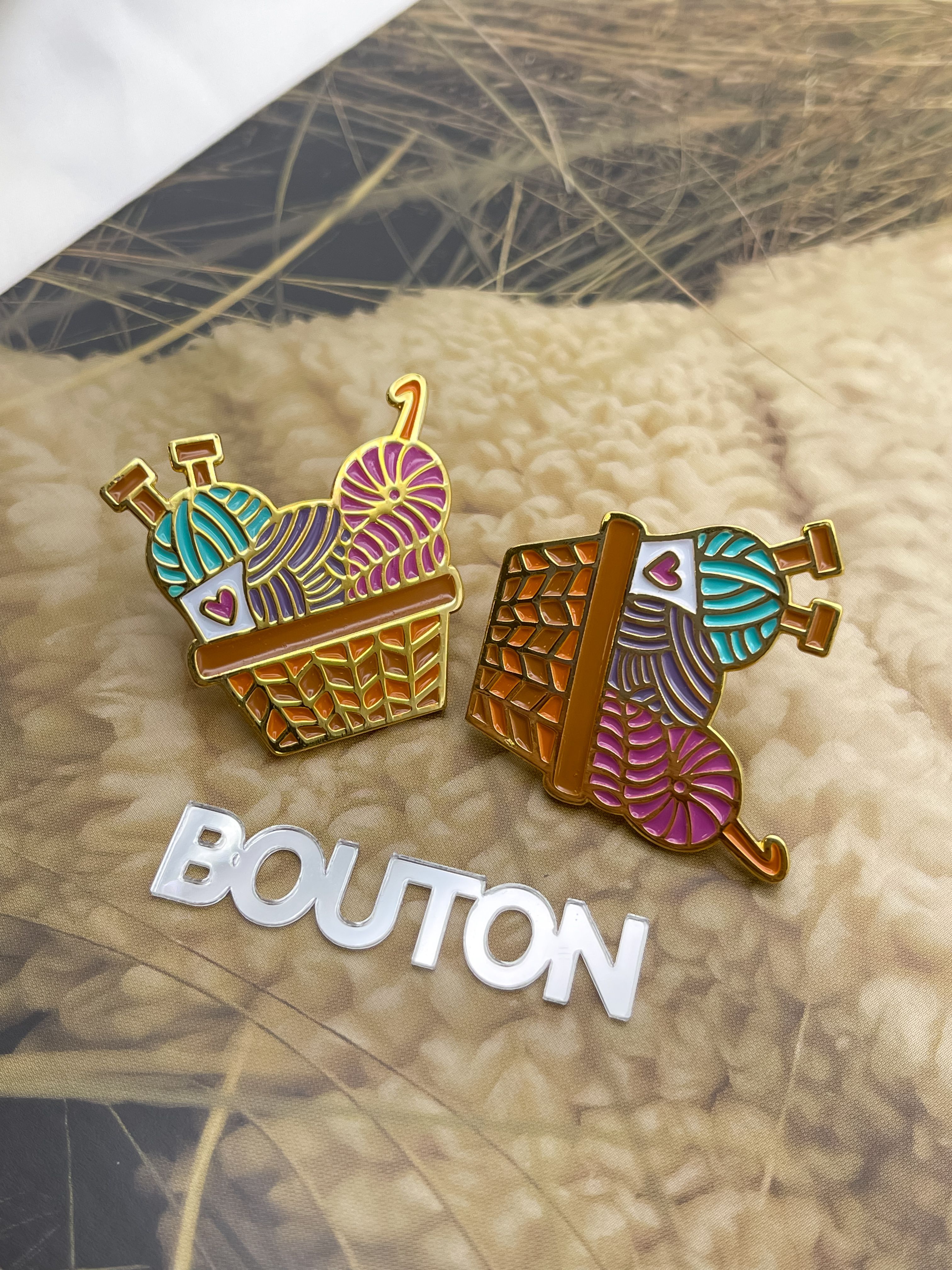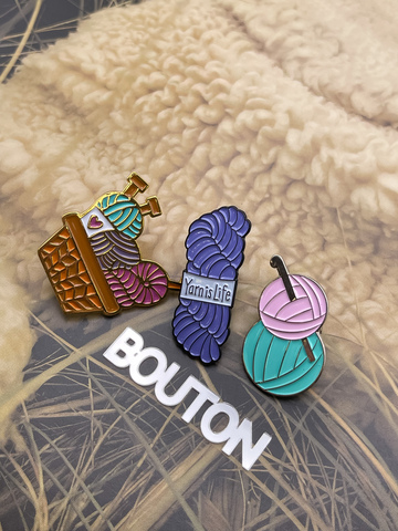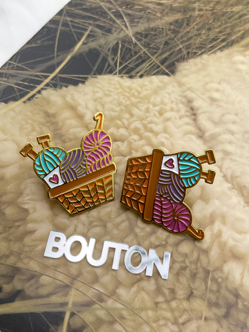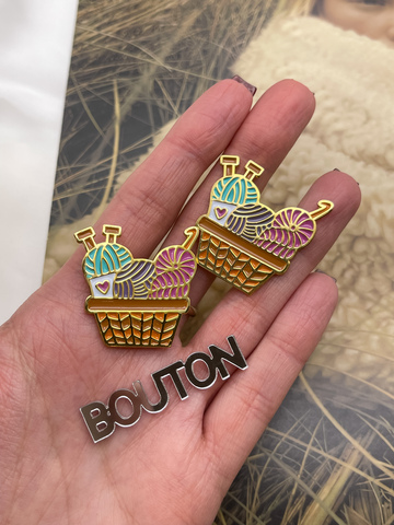 Брошь-Пин "Корзина с пряжей и спицами"