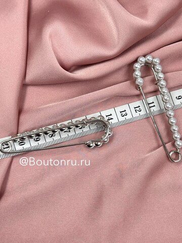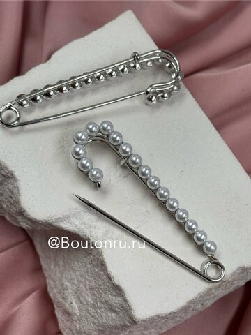 Брошь из серебристого  металла в форме крупной булавки, брошка дополнена жемчугом по краю. Достаточно яркое, но в тоже время базовое украшение для вашего образа