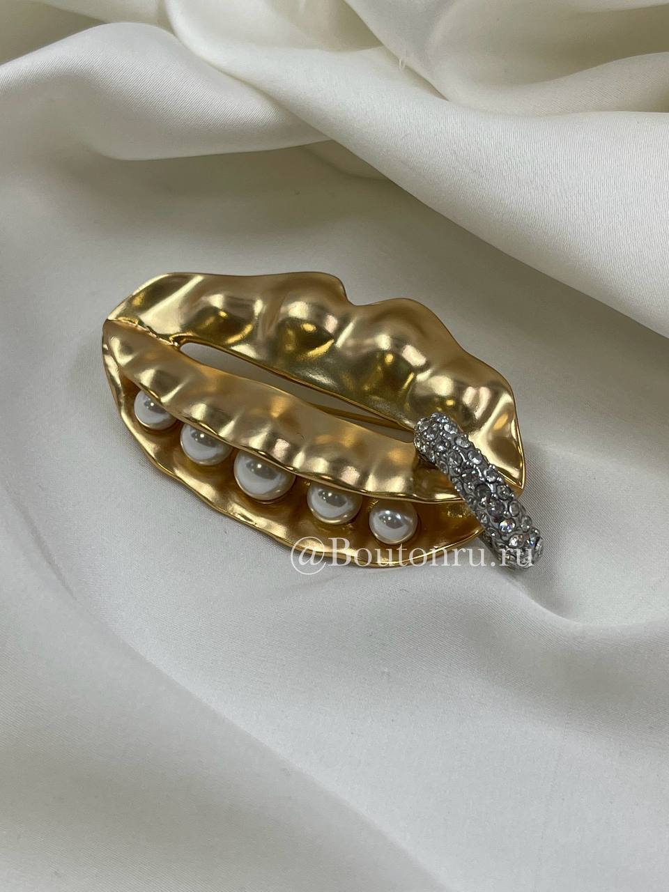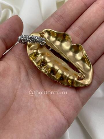 Роскошная золотистая основа в форме соблазнительных губ уже сама по себе приковывает взгляды. Но именно в деталях кроется настоящая магия. Нежный, девственный жемчуг, вправленный в губы, создает изысканный контраст с дерзким серебристым пирсингом, сверкающим яркими стразами. Этот диалог нежности и бунта, классики и авангарда – и есть суть высокой моды. Брошь обладает невероятной художественной ценностью и станет той самой культовой вещью в вашей коллекции, которая передается из поколения в поколение.