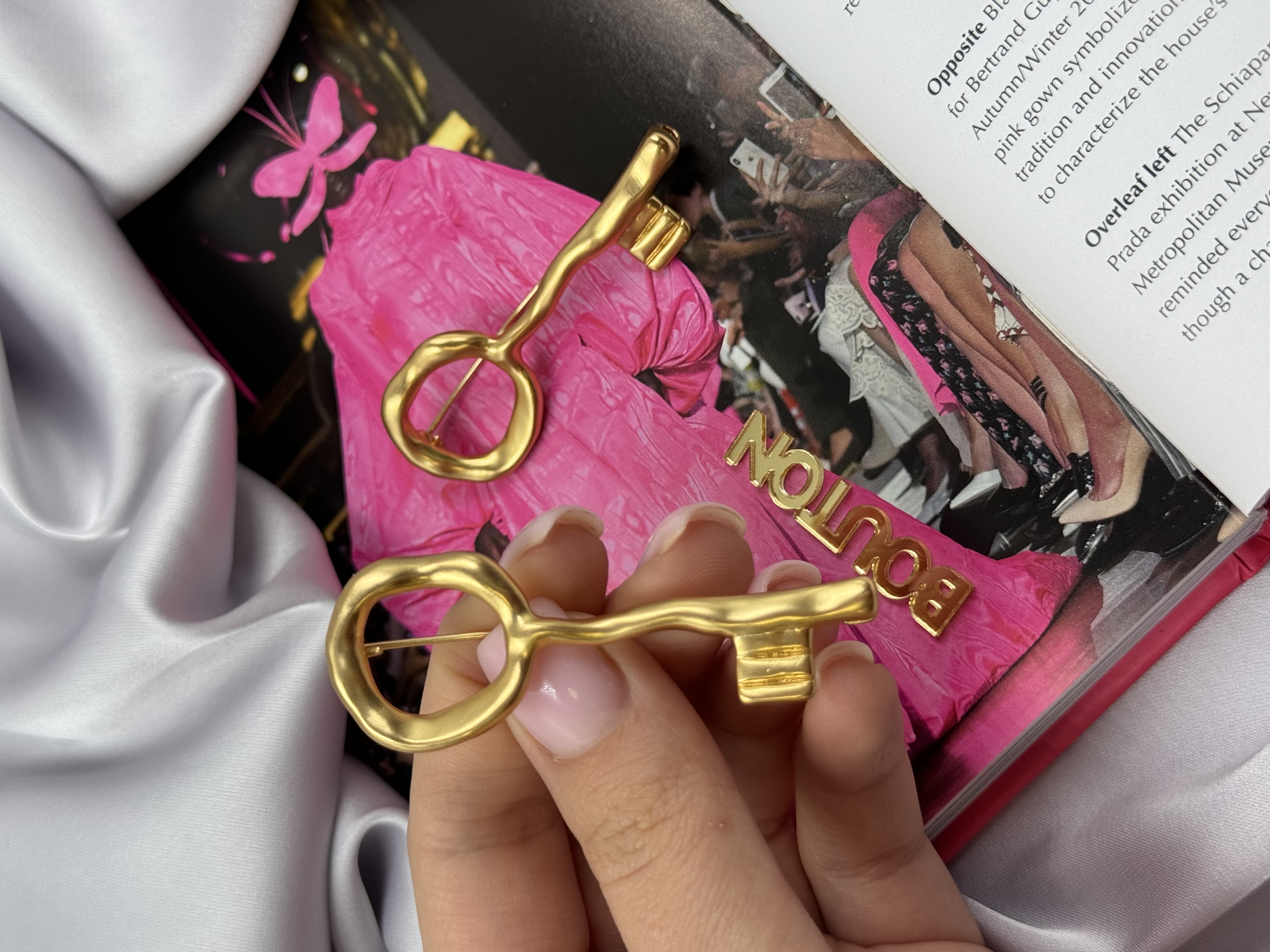 Брошь Скиап. золотистая квадратная с замочной скважиной