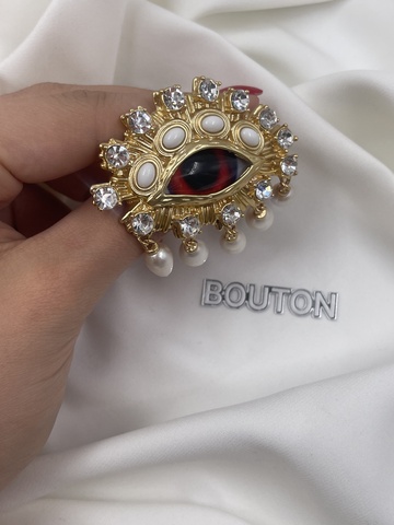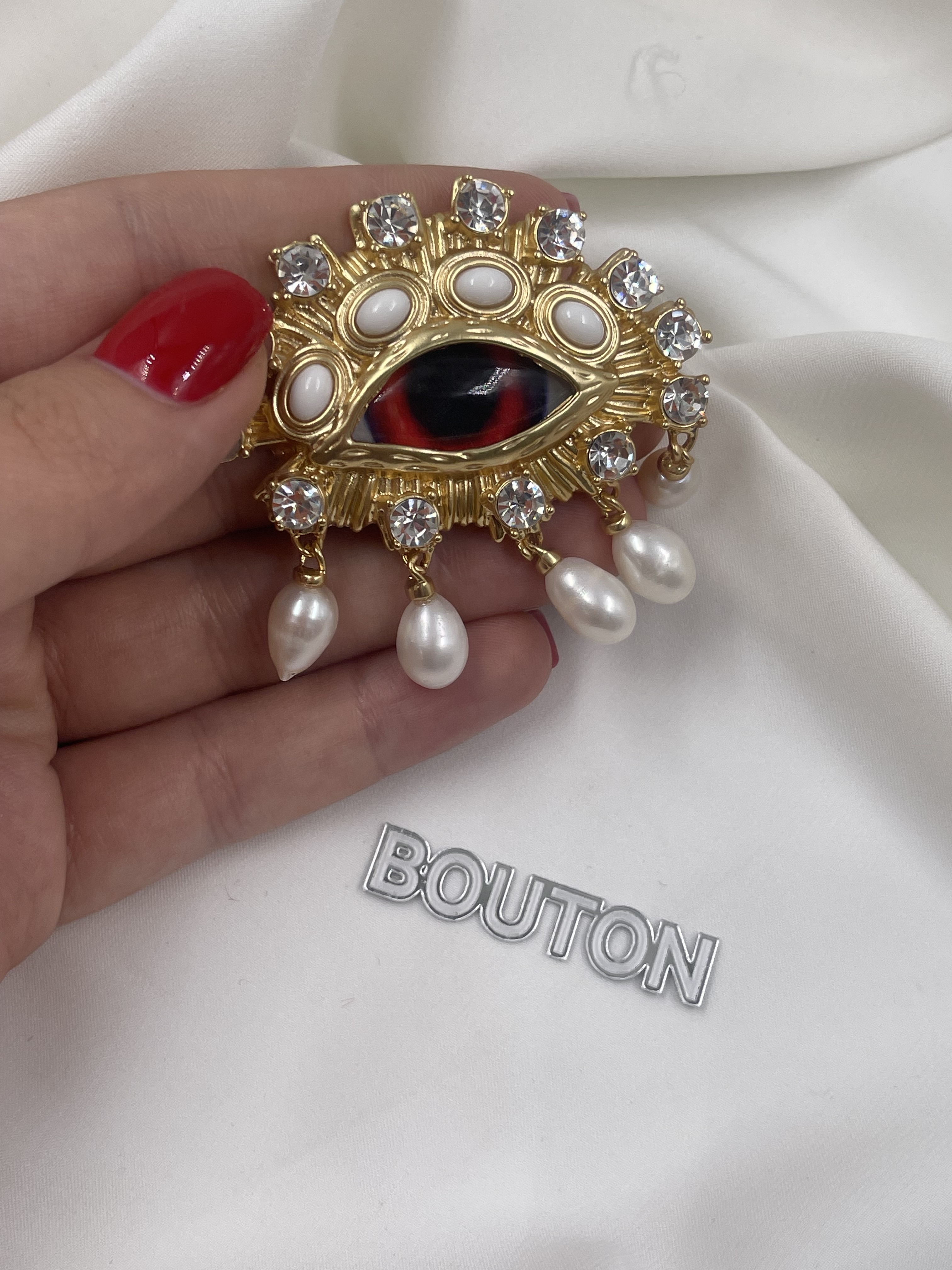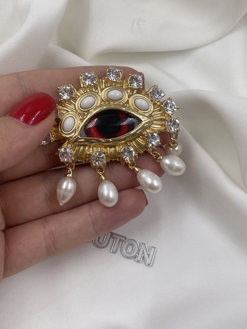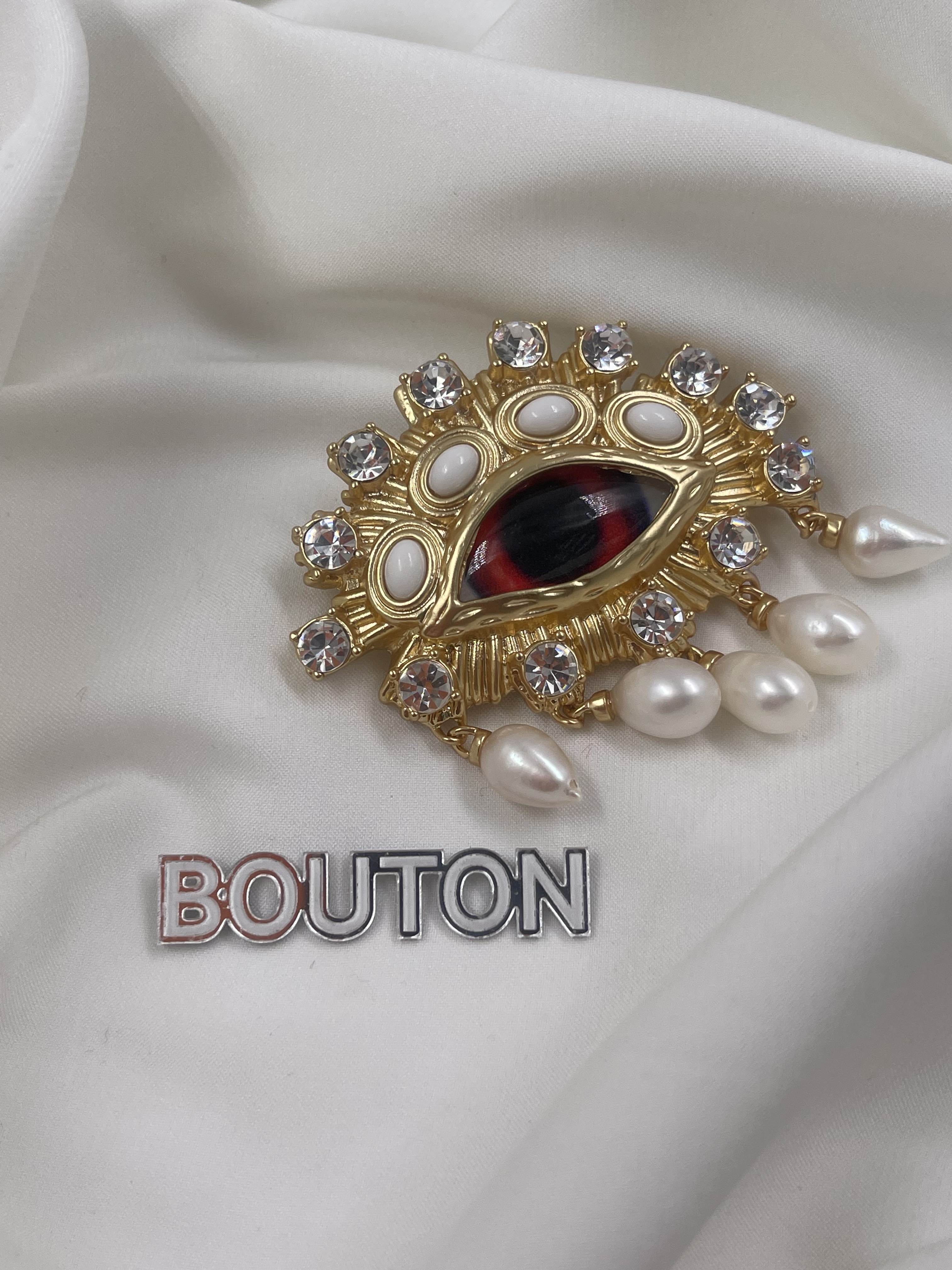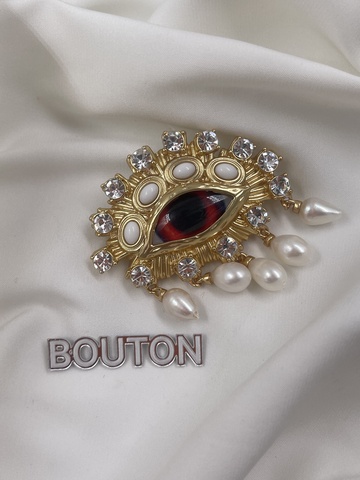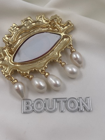 Брошь в золотистом обрамлении с подвязками жемчужинами