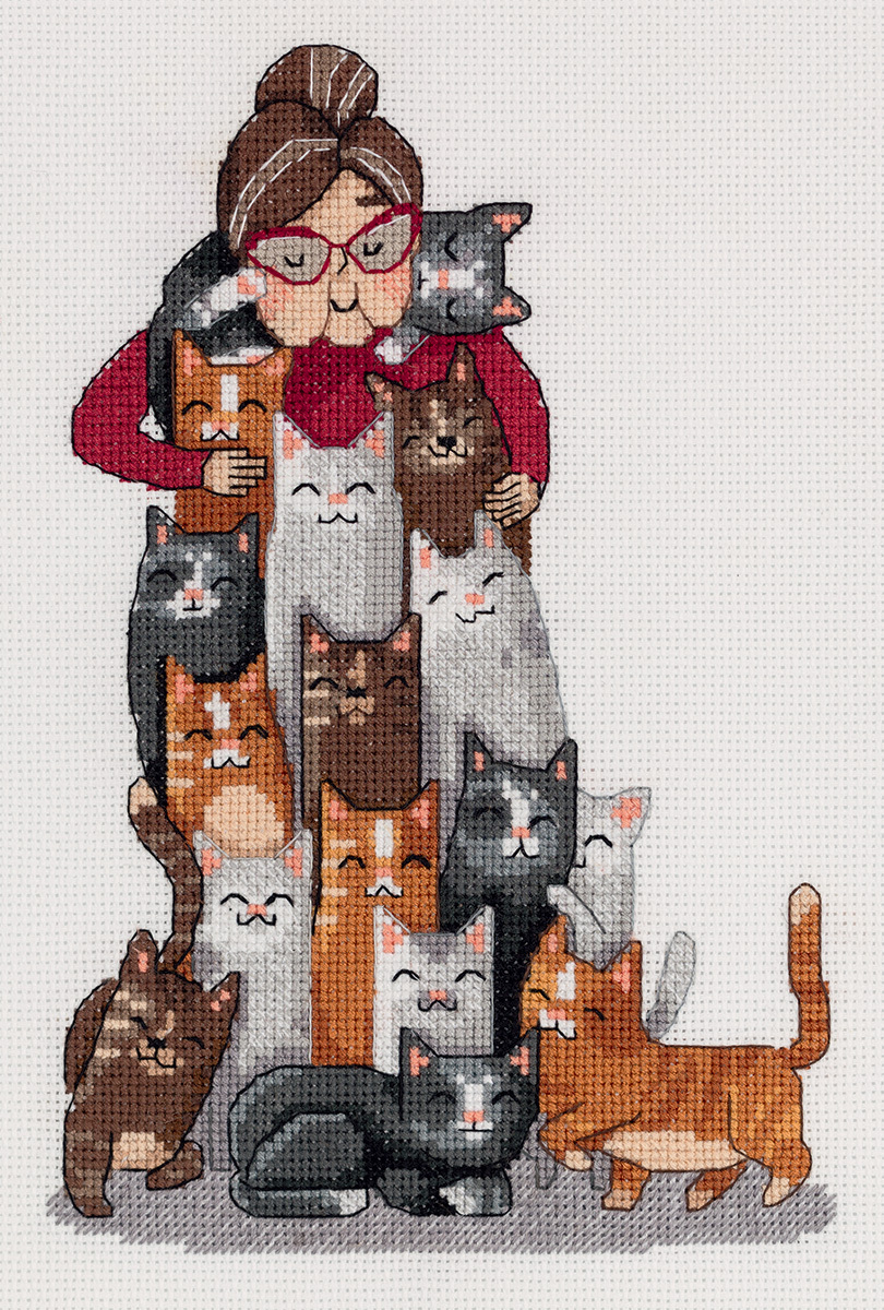 Вышивка с забавным сюжетом поднимет настроение и станет отличным украшением интерьера.