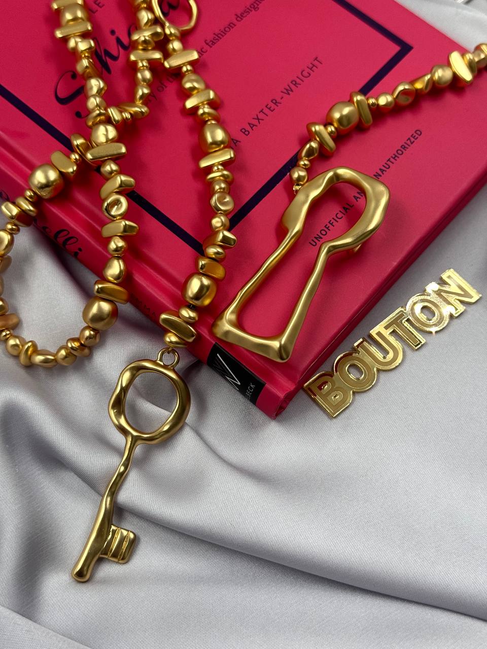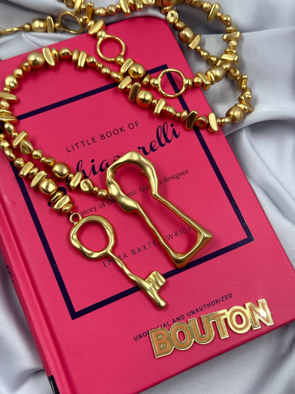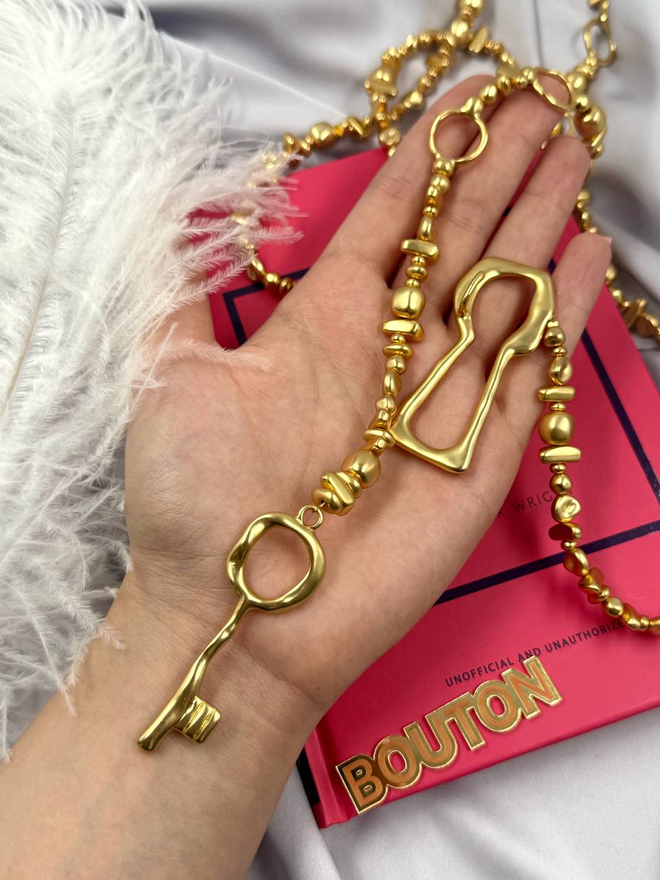 Колье-Пояс с неровными звеньями Скиап. матовое золото "Ключ с замочной скважиной"