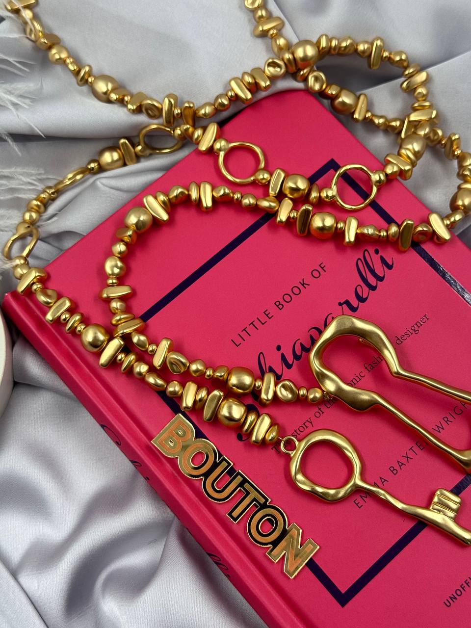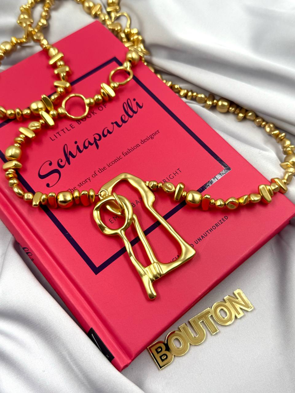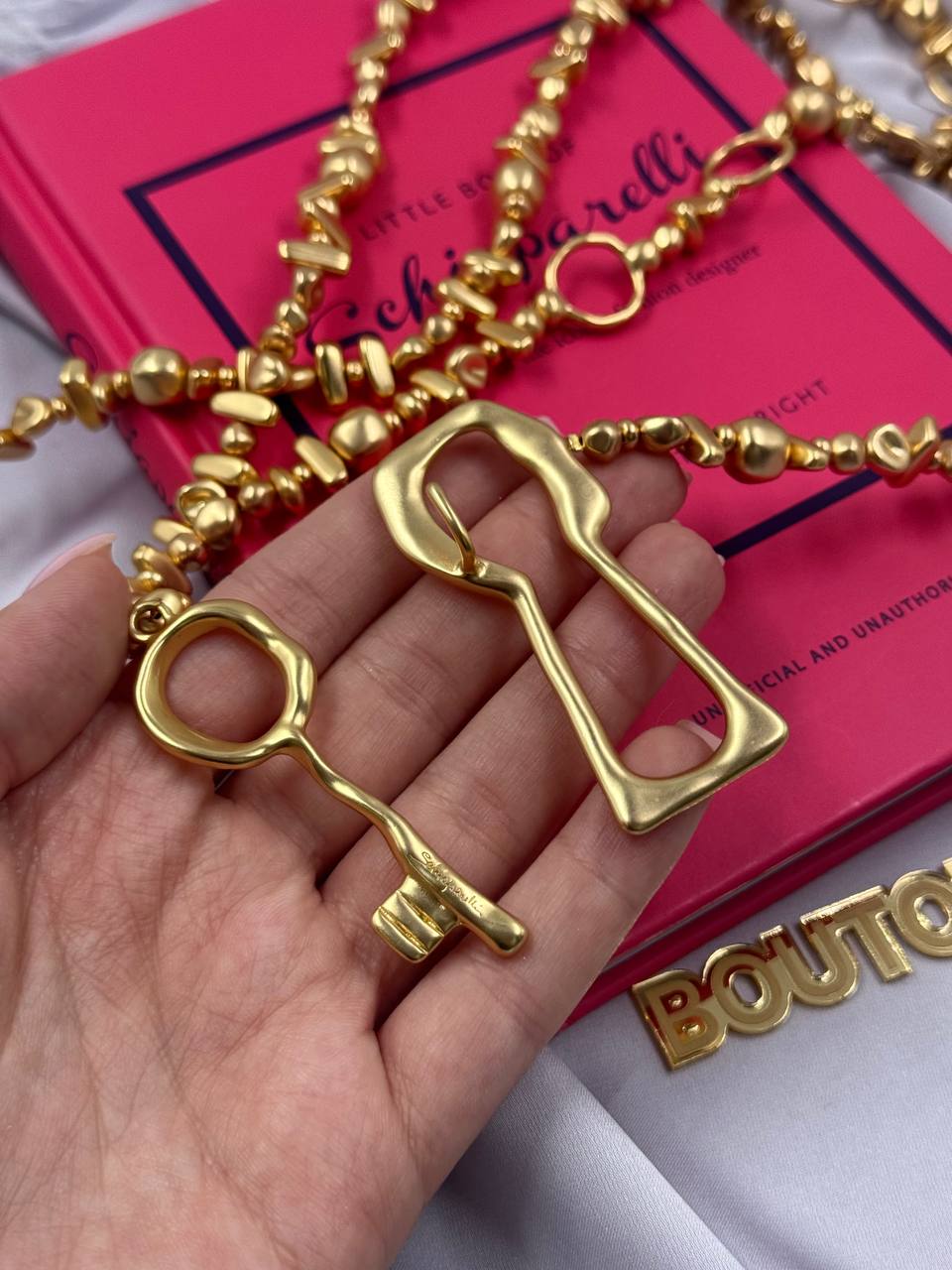Колье-Пояс с неровными звеньями Скиап. матовое золото "Ключ с замочной скважиной"