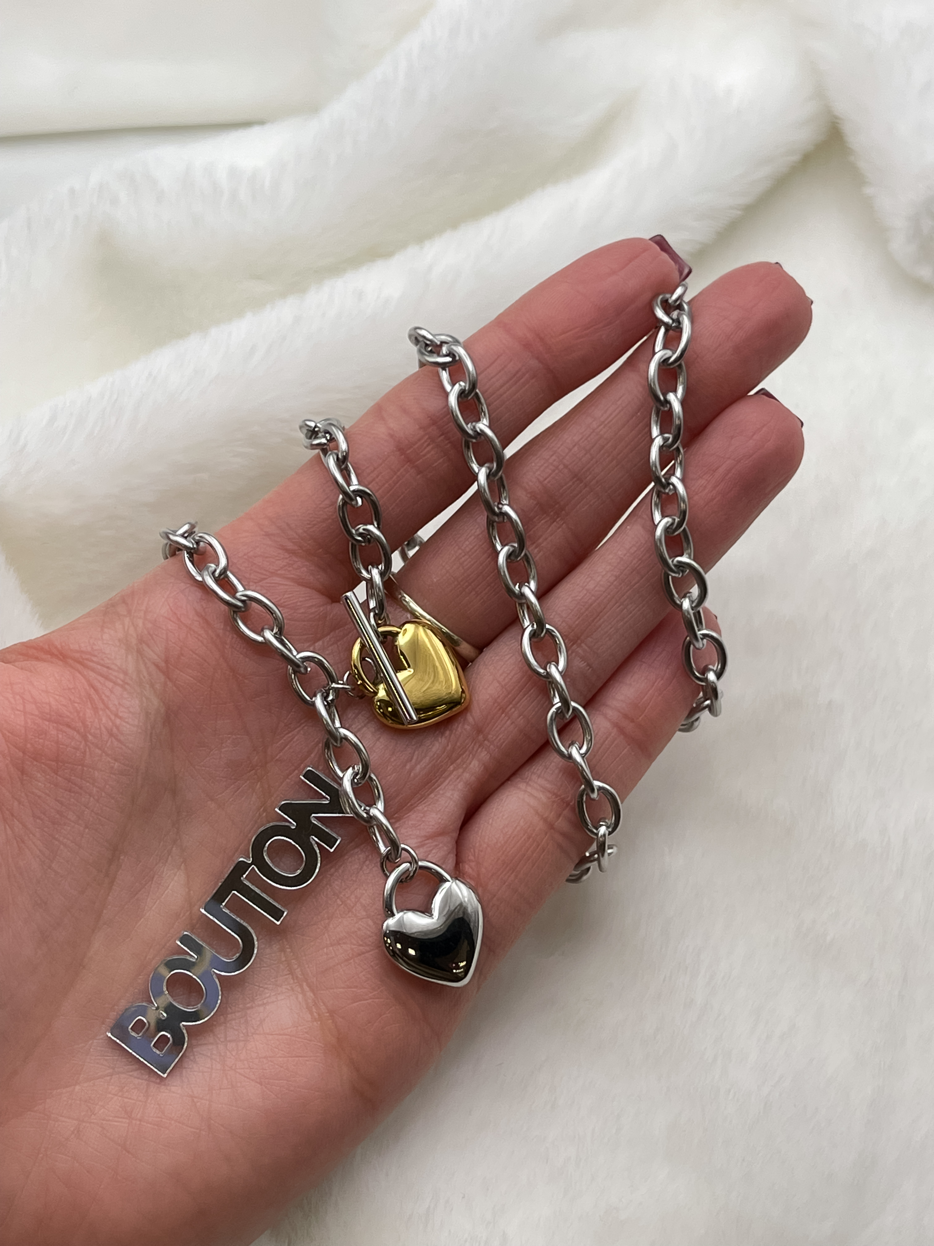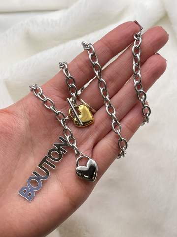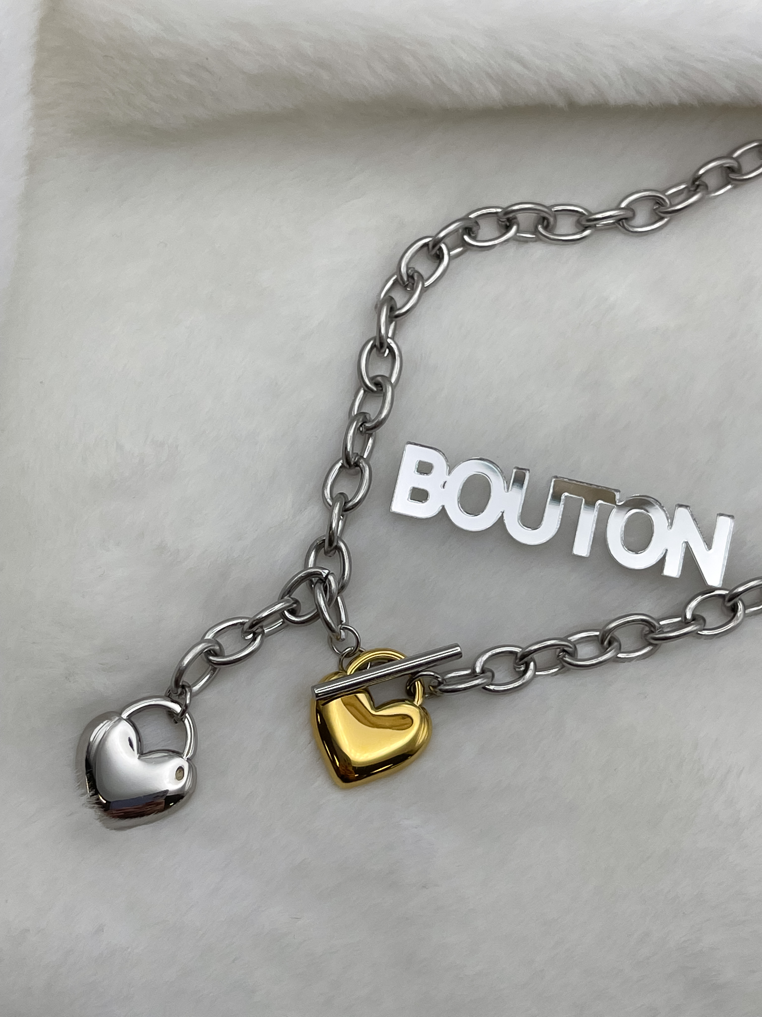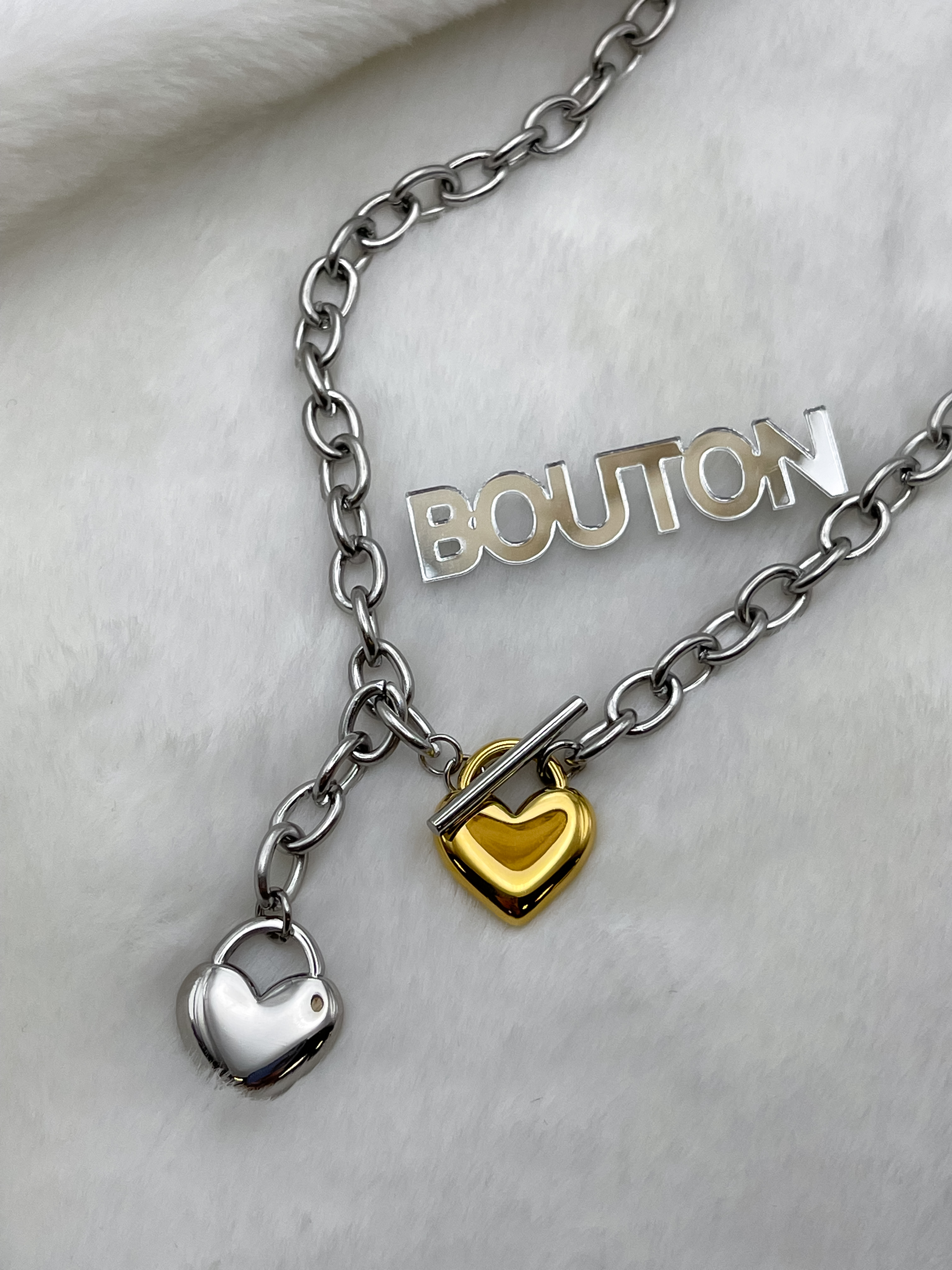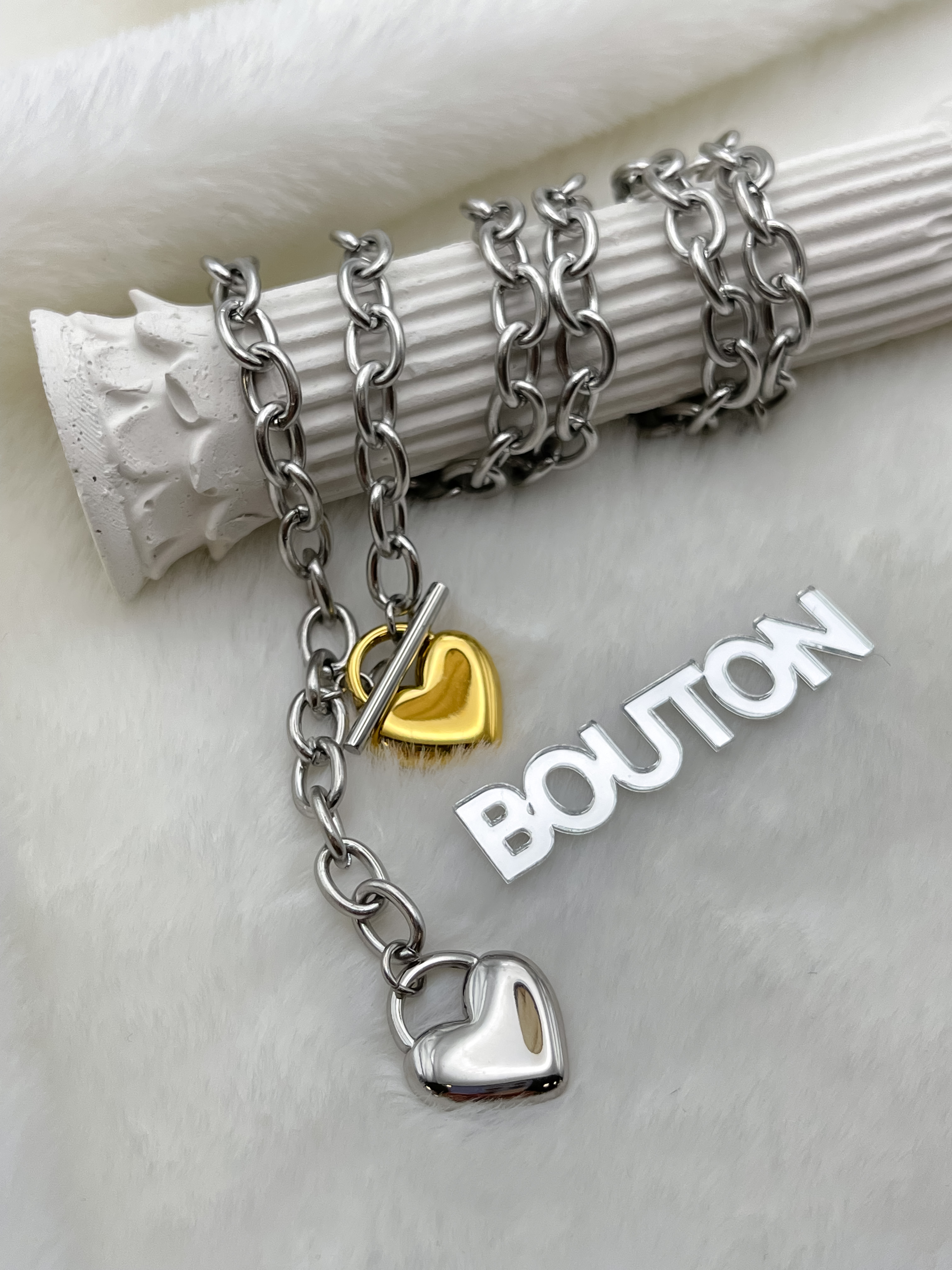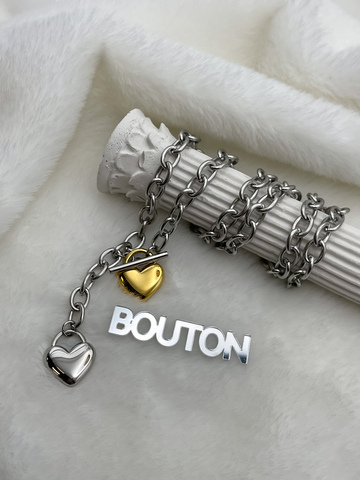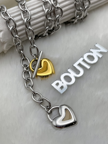 Колье-Тогл биколорное "Цепь с подвесками сердечки"