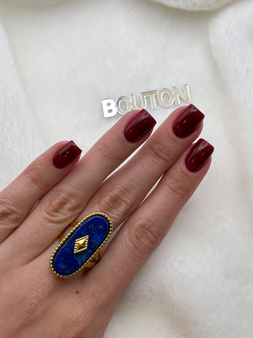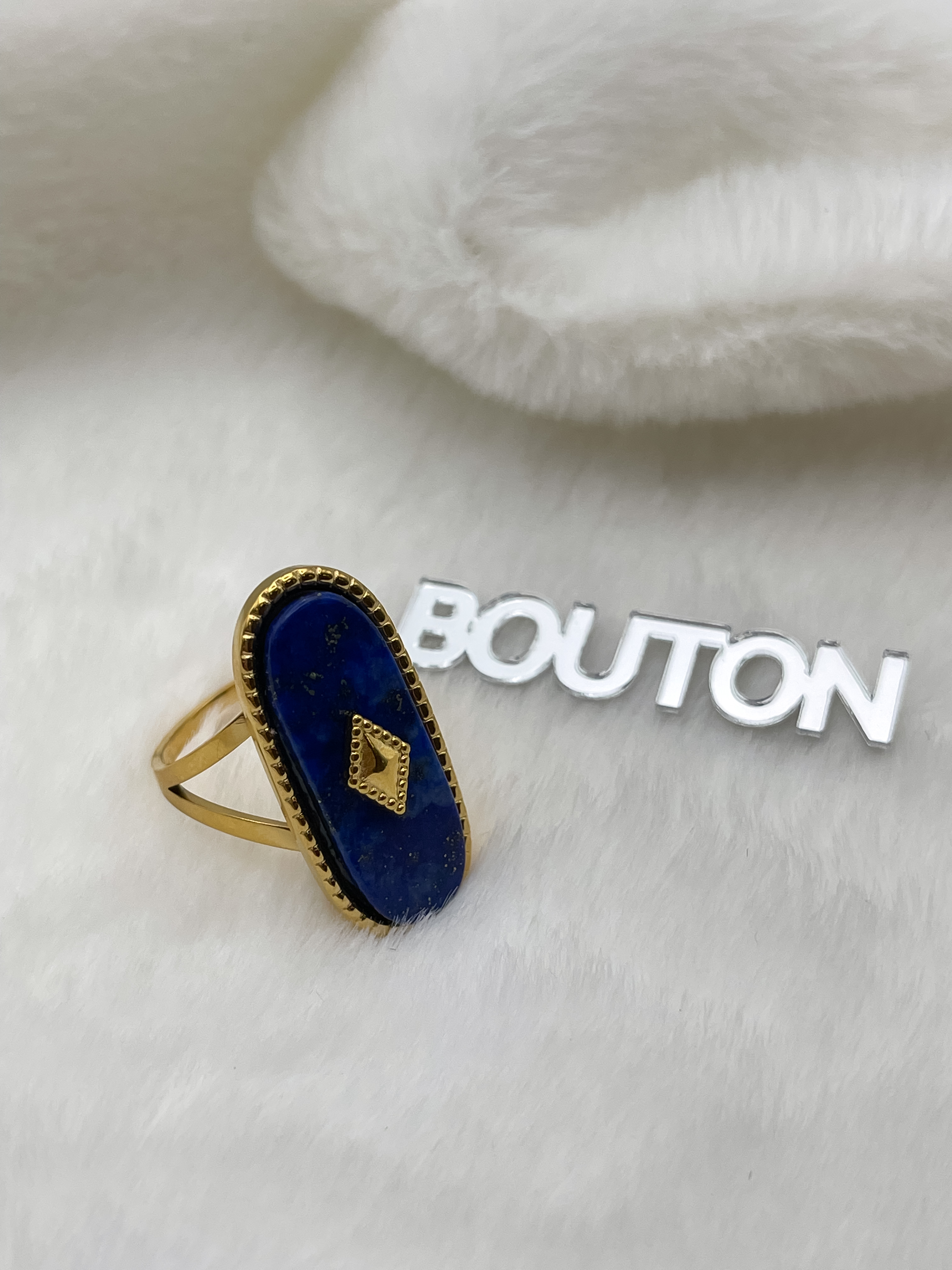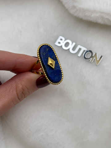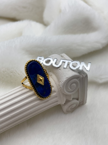 Кольцо золотистое с перламутровой синей овальной вставкой (безразмерное)