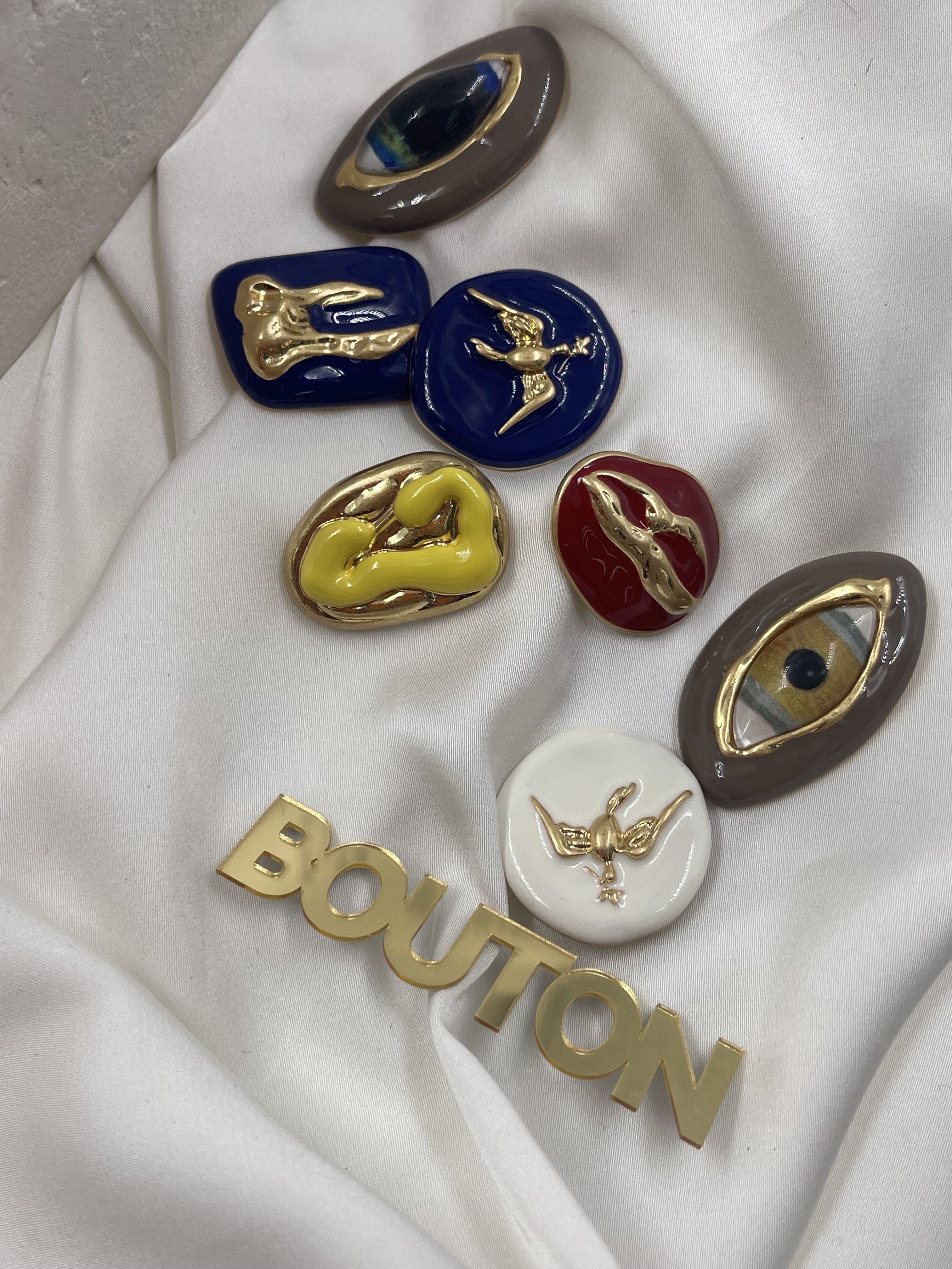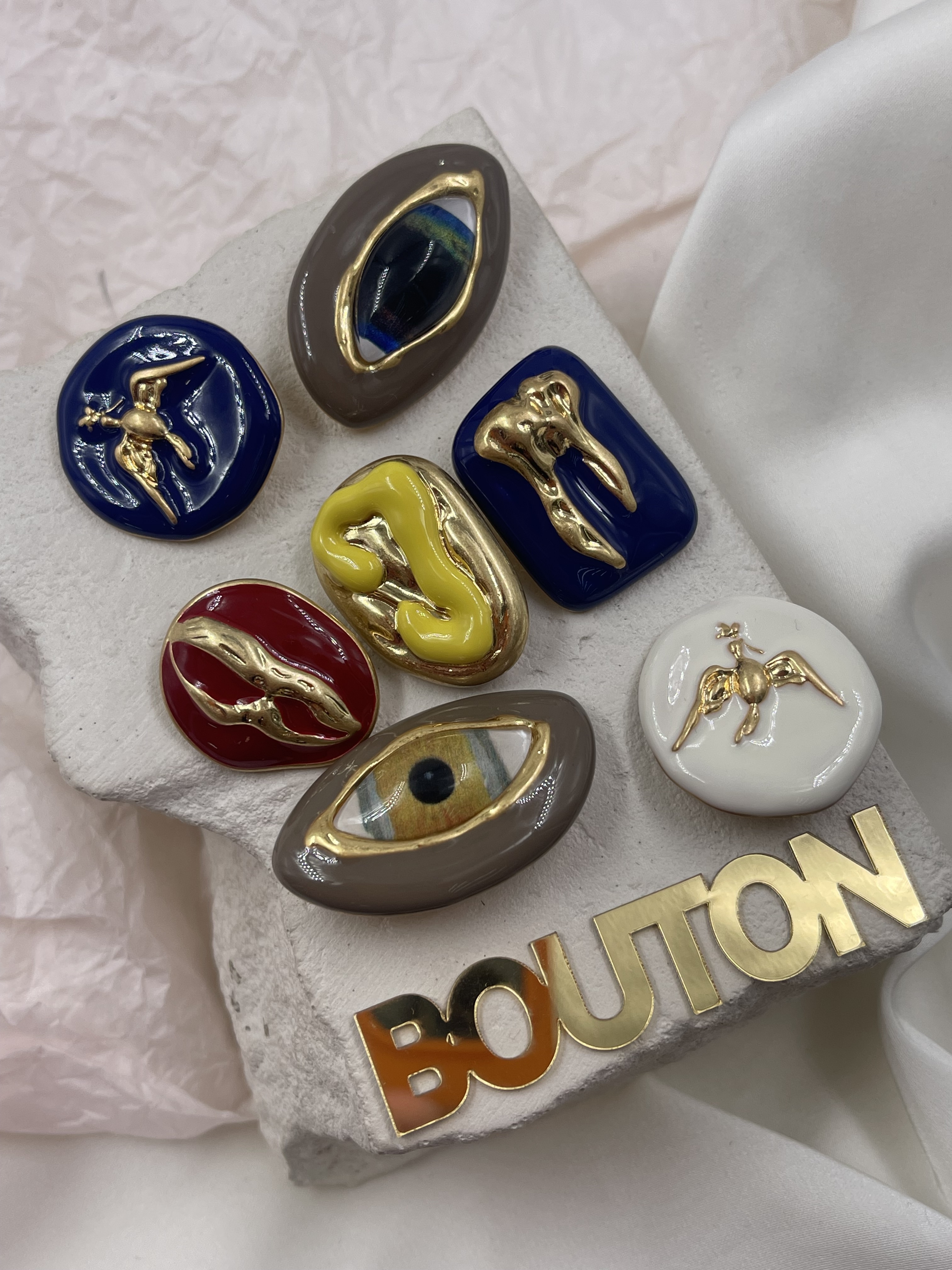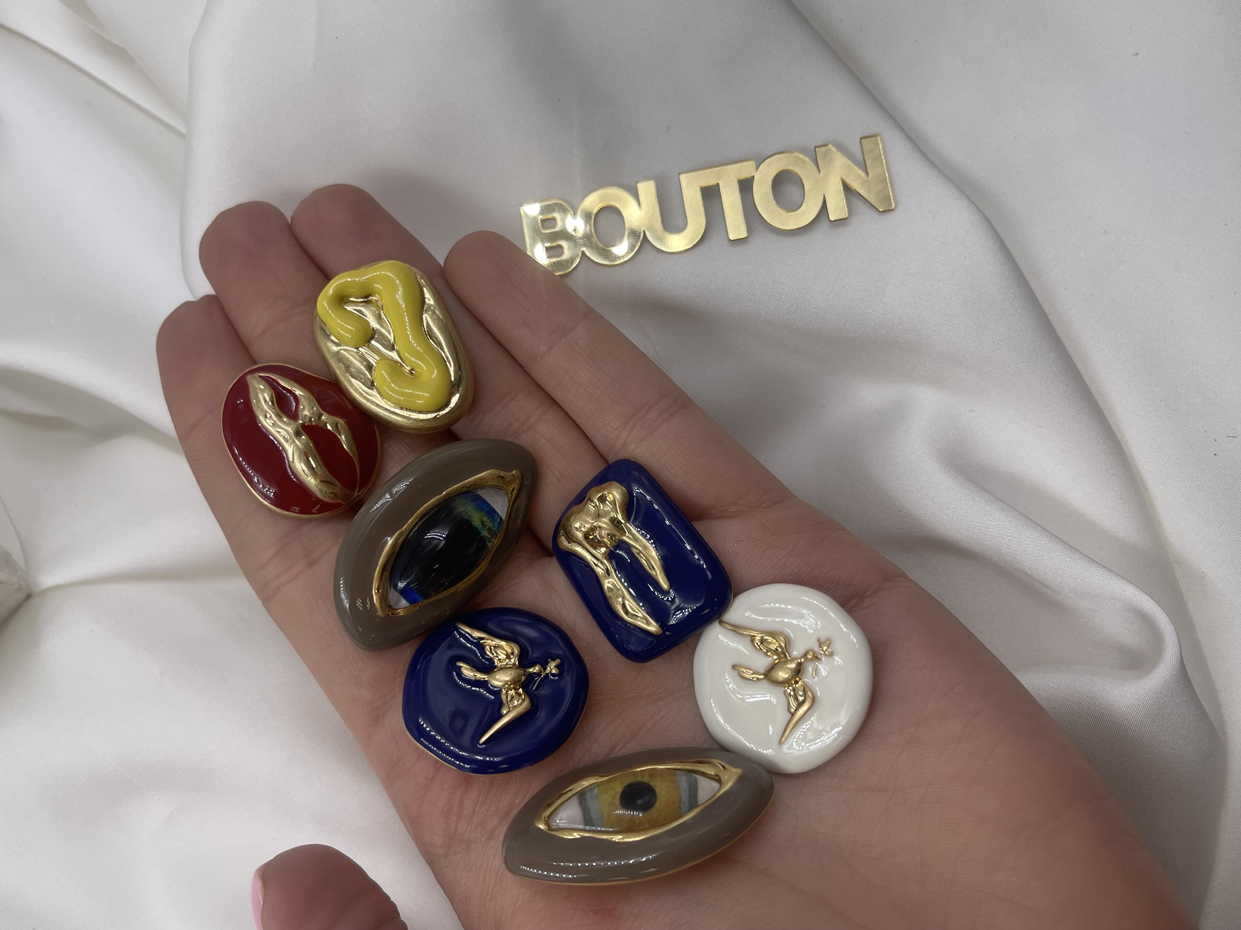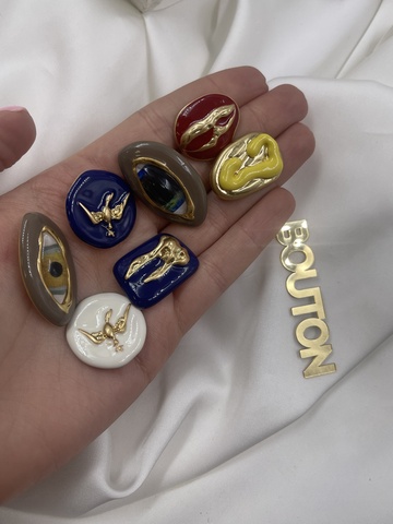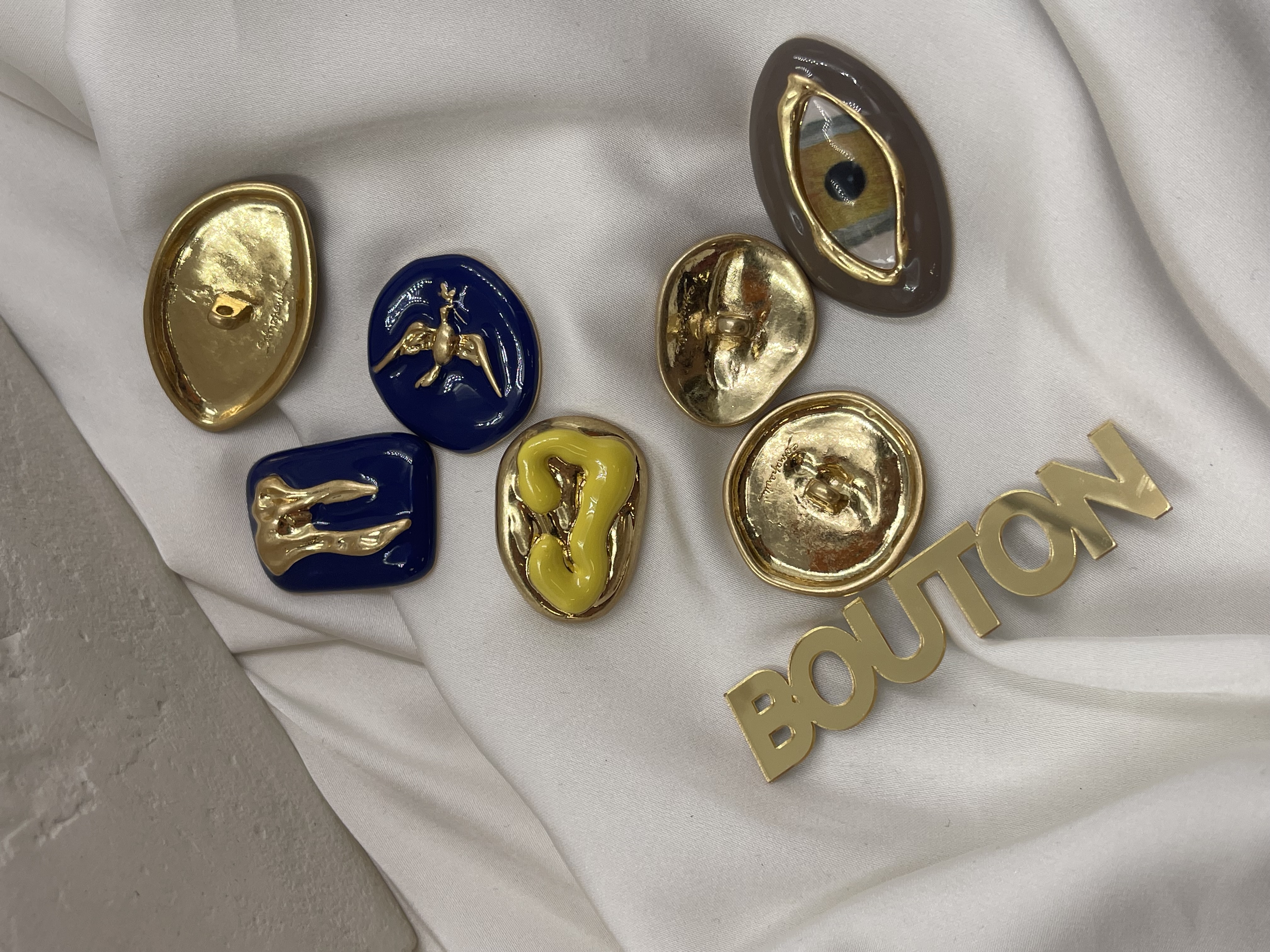 Невероятный комплект пуговиц разных форм и цветов. Количество пуговиц в комплекте 7 штук. Пуговицы выполнены из металла и дополнены эмалью
