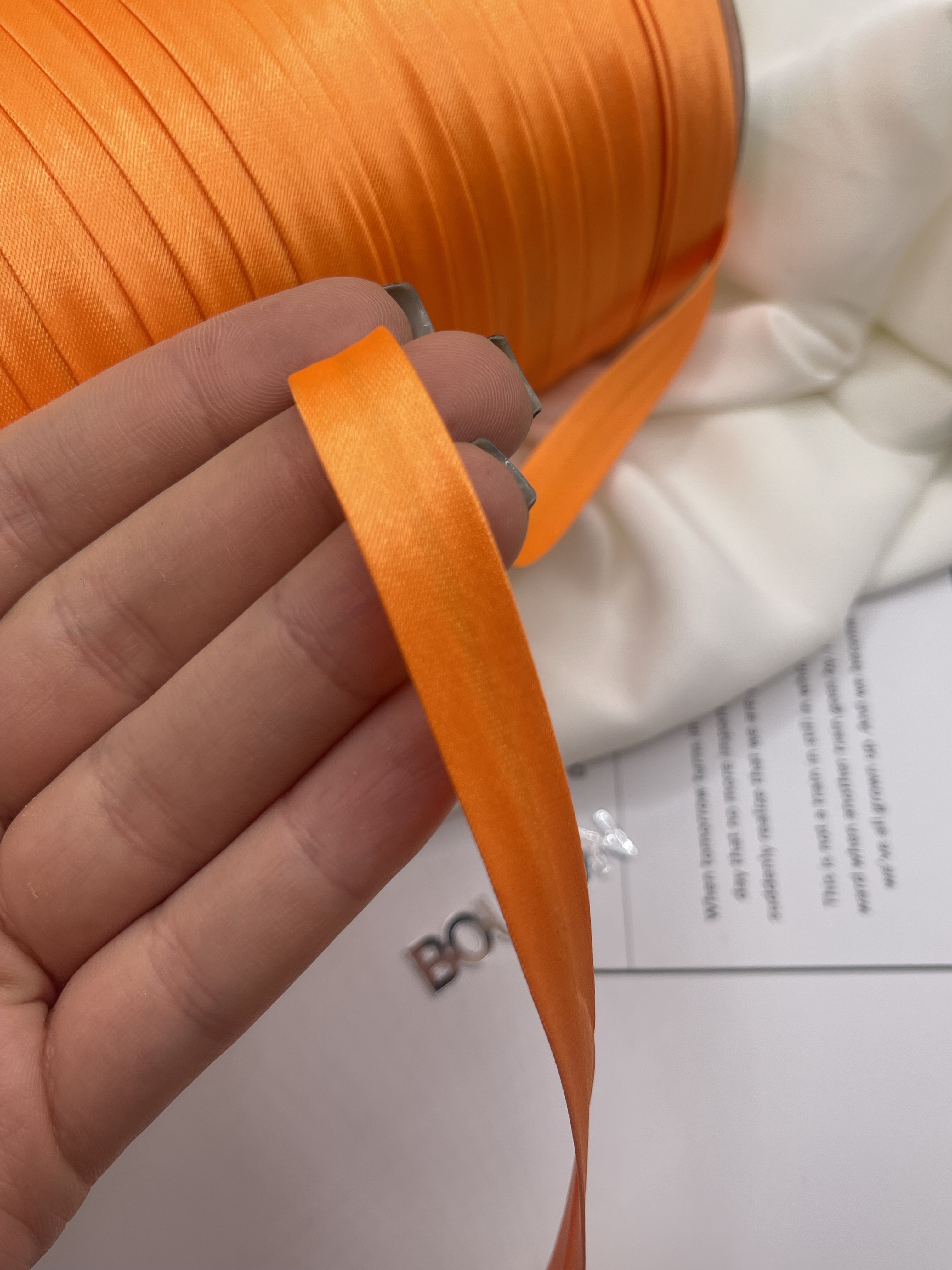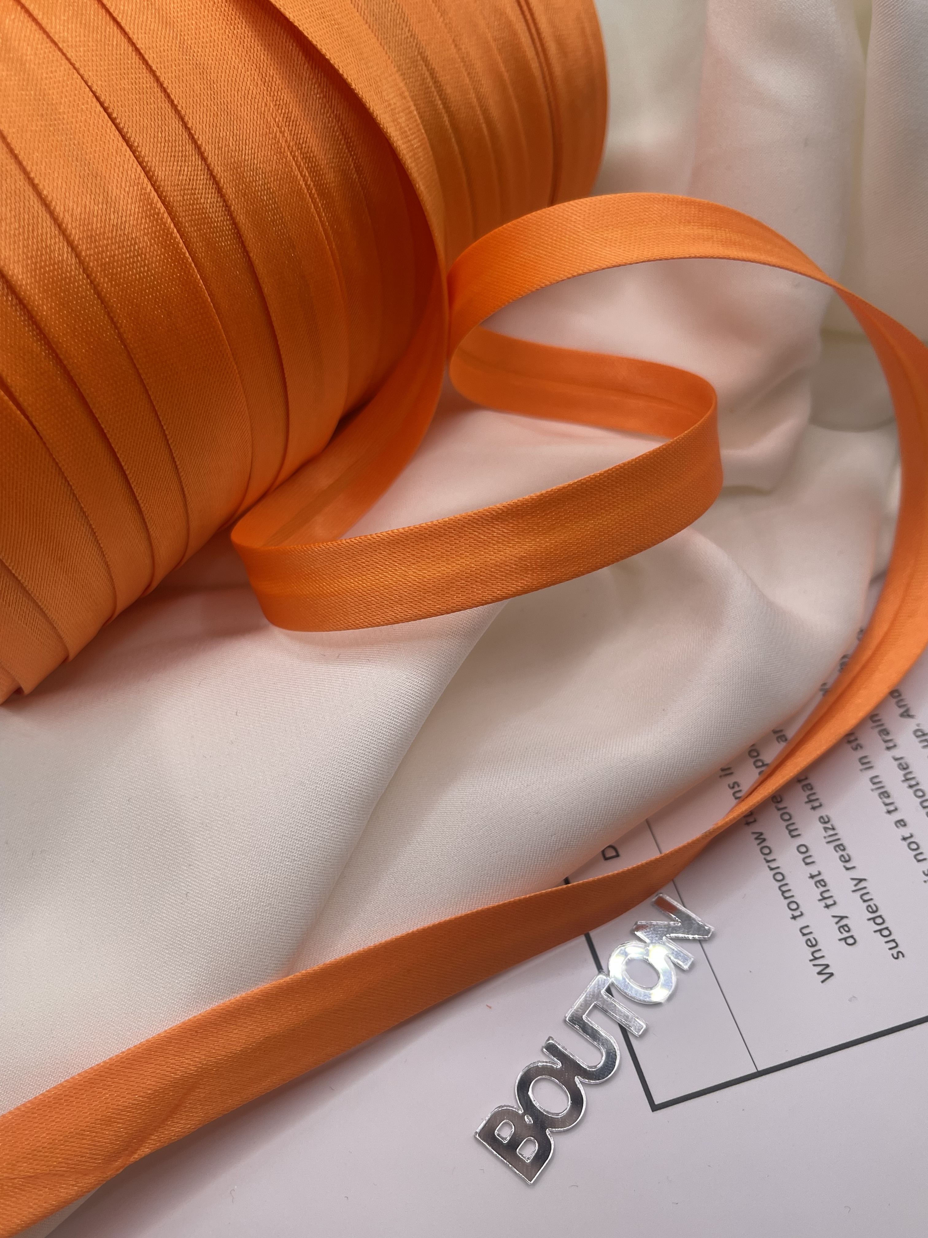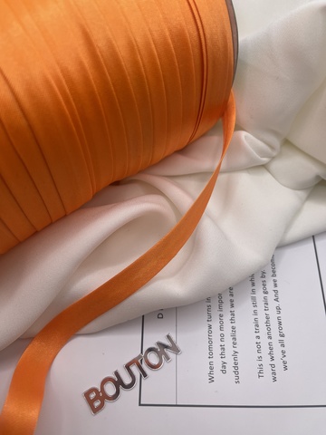 Полиэстеровая тесьма, выкроенная по косой, с заранее подогнутыми припусками. Она достаточно мягкая, легко укладывается на неровные срезы без складок и без смещения, образуя ровный красивый борт. Применяется для обработки срезов бортов, для горловины, при шитье рукава одежды. Также ее применяют при изготовлении мебели, отделки предметов интерьера включая шторы.