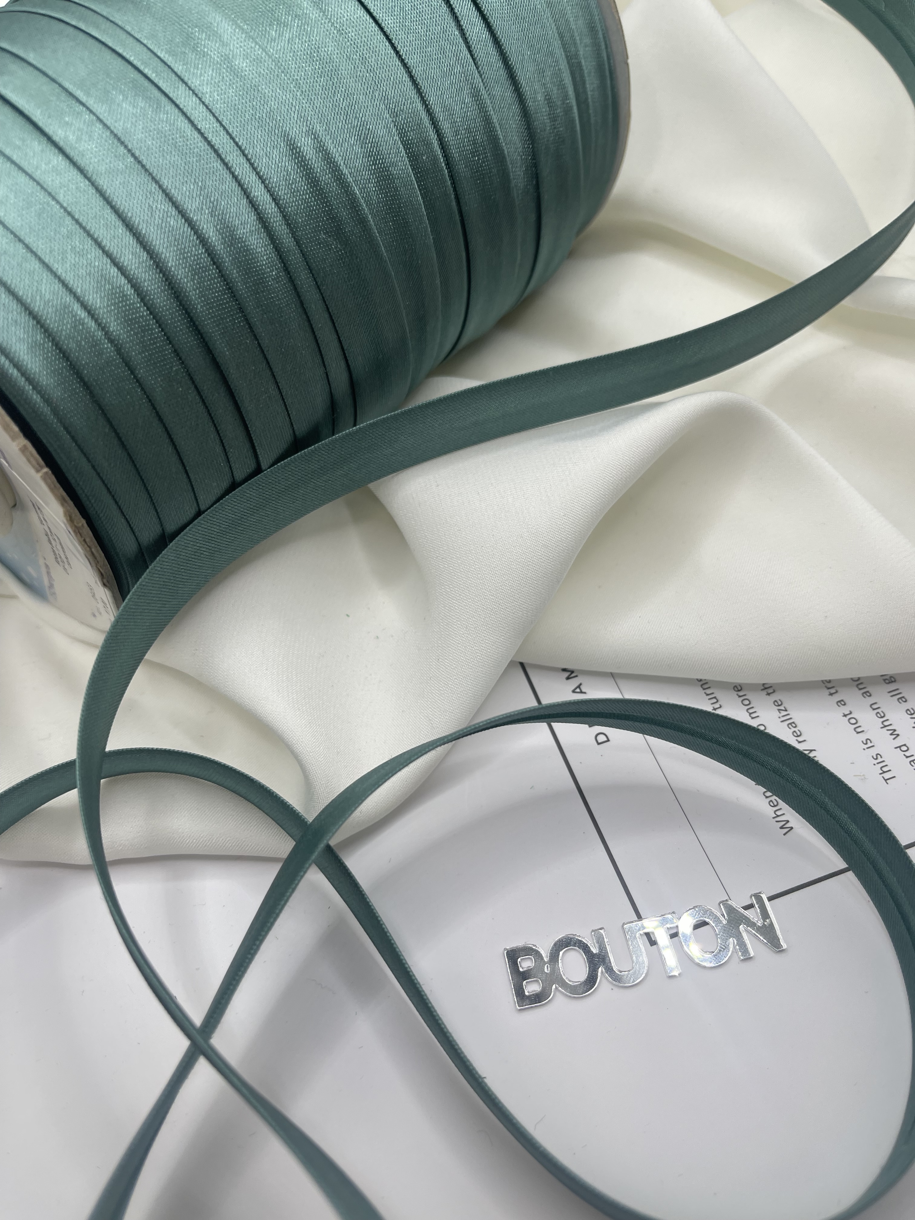 Полиэстеровая тесьма, выкроенная по косой, с заранее подогнутыми припусками. Она достаточно мягкая, легко укладывается на неровные срезы без складок и без смещения, образуя ровный красивый борт. Применяется для обработки срезов бортов, для горловины, при шитье рукава одежды. Также ее применяют при изготовлении мебели, отделки предметов интерьера включая шторы.