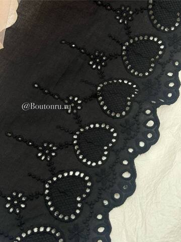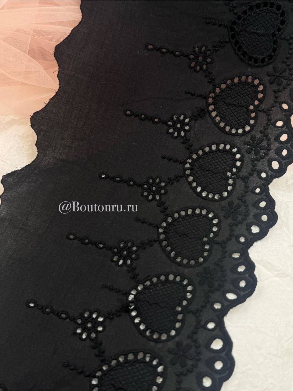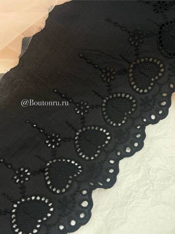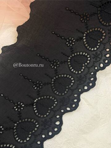Нежная структура и безупречный дизайн делают это кружево универсальным материалом для украшения одежды, аксессуаров, предметов интерьера и создания оригинальных подарков. Подходит для ручной вышивки, вязания, декорирования рамок для фото, подушек, штор и других творческих решений. Черное кружево легко сочетается с различными цветами, придавая изделиям элегантность и выразительность.