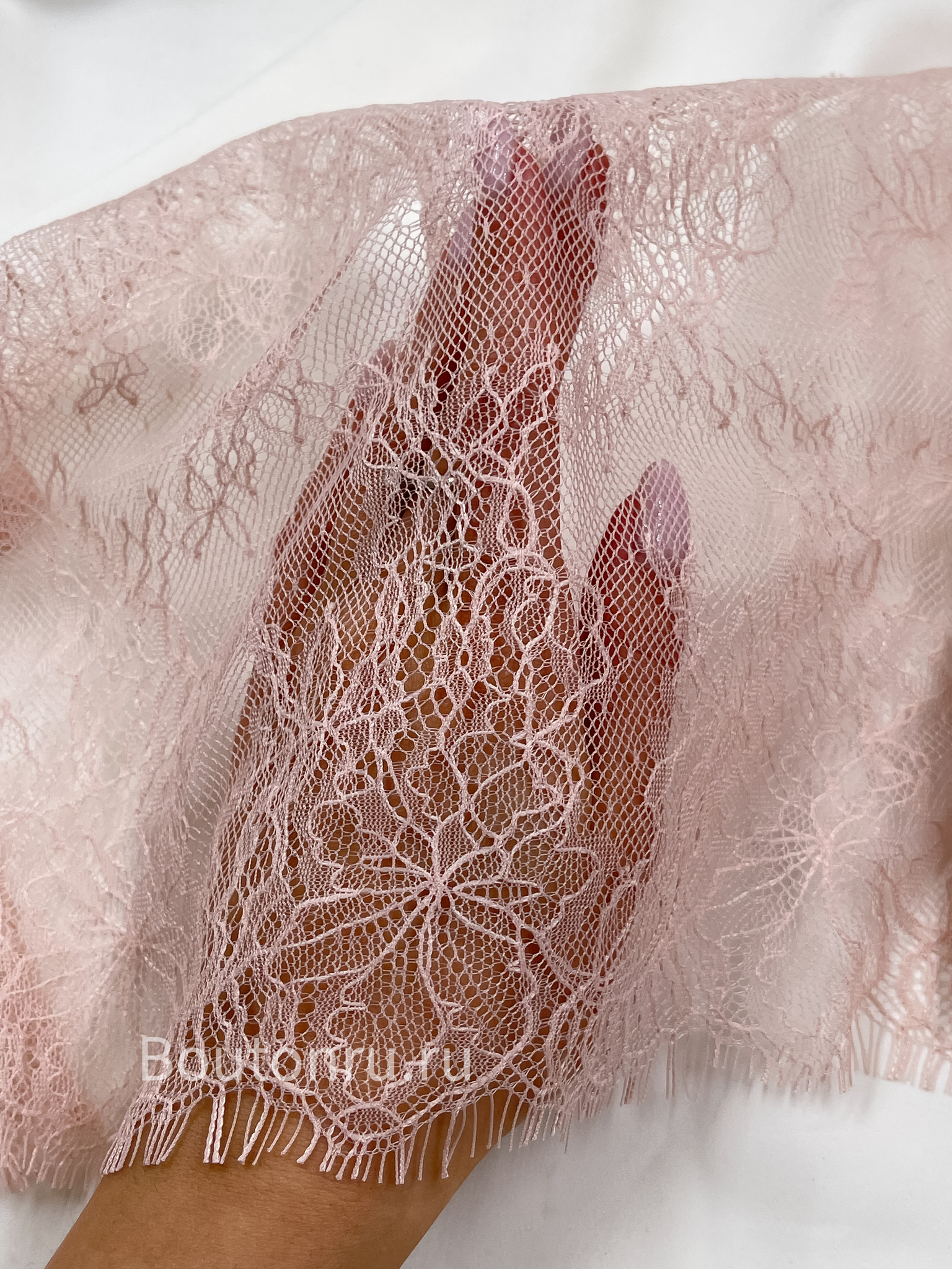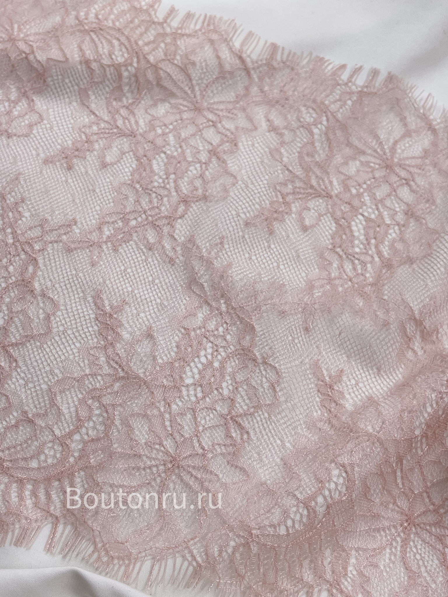 Мягкое и нежное кружево светло розового цвета. Продается купоном. Ширина купона примерно 240мм, длина купона 3 метра.