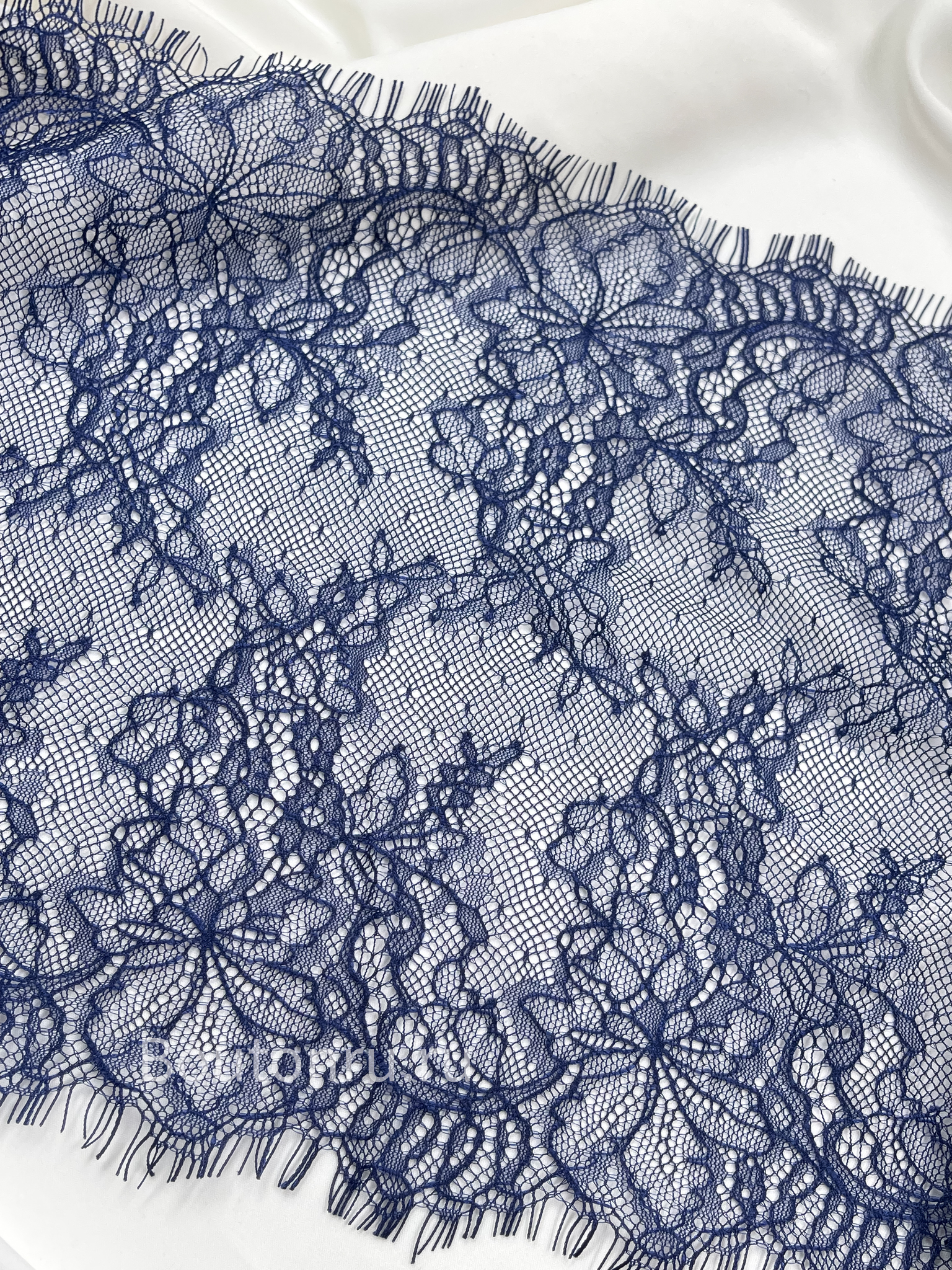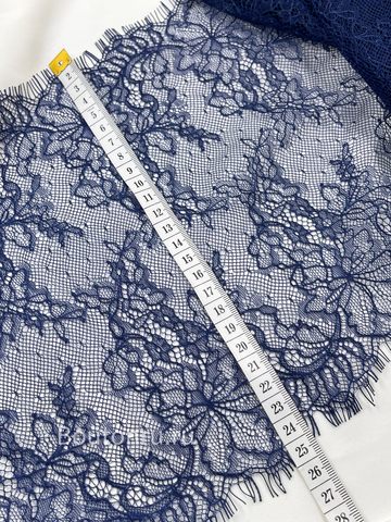 Мягкое и нежное кружево синего цвета. Продается купоном. Ширина купона примерно 240мм, длина купона 3 метра.