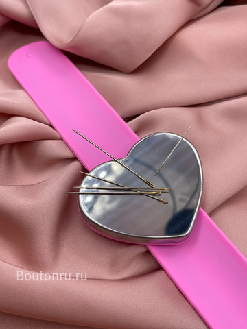 Магнитная игольница в виде браслета в форме сердечка с пластиной из нержавеющей стали. Очень удобна в работе при раскрое ткани, примерке изделия, а также позволяет быстро собрать со стола булавки, швейные иглы и другие мелкие металлические предметы. Браслет изготовлен из силикона, он очень гибкий и надежно обхватывает запястье любого размера. Магнитная основа пластины не позволит булавкам рассыпаться. Рукоделие с магнитным браслетом станет легким и приятным
