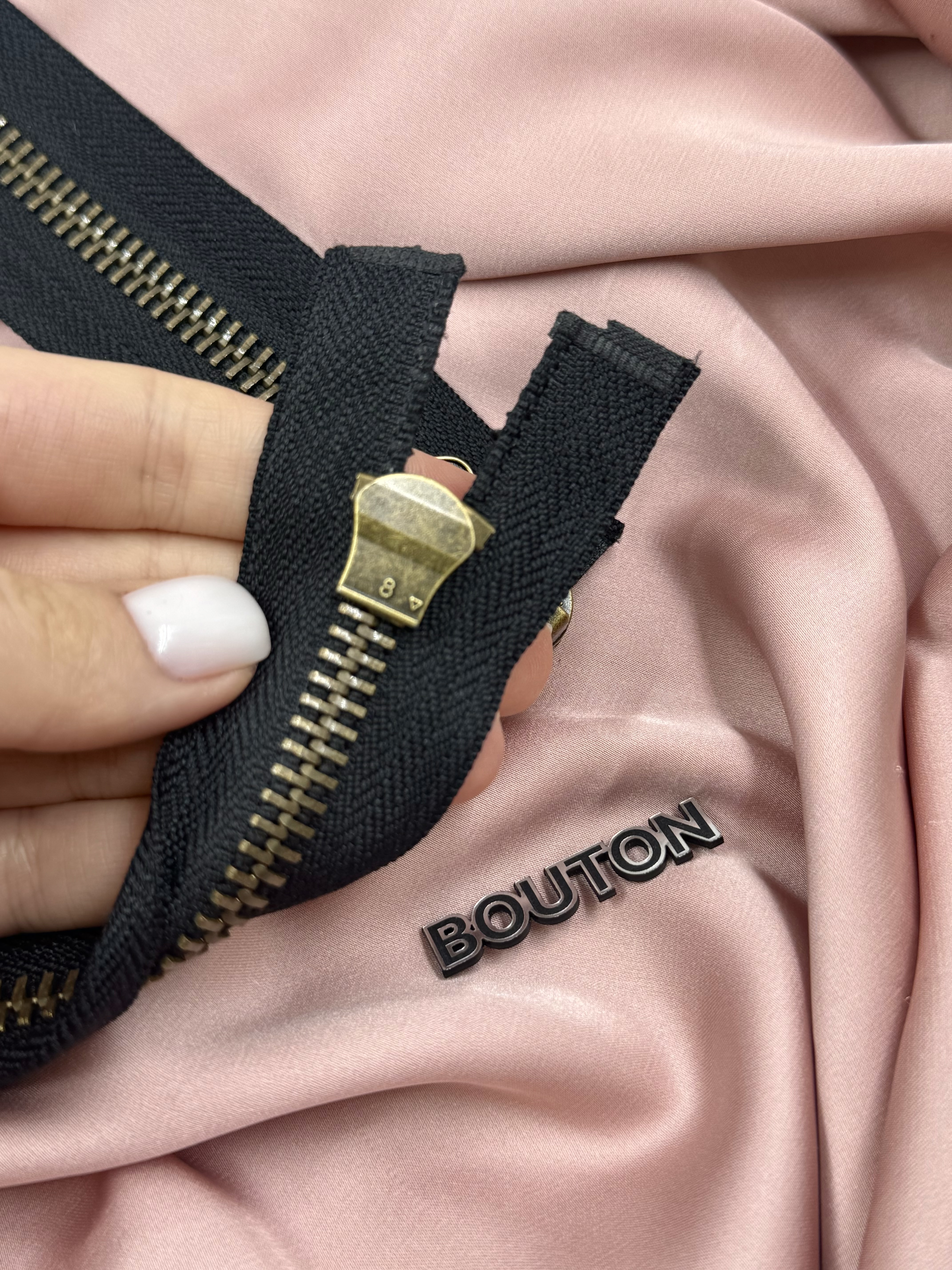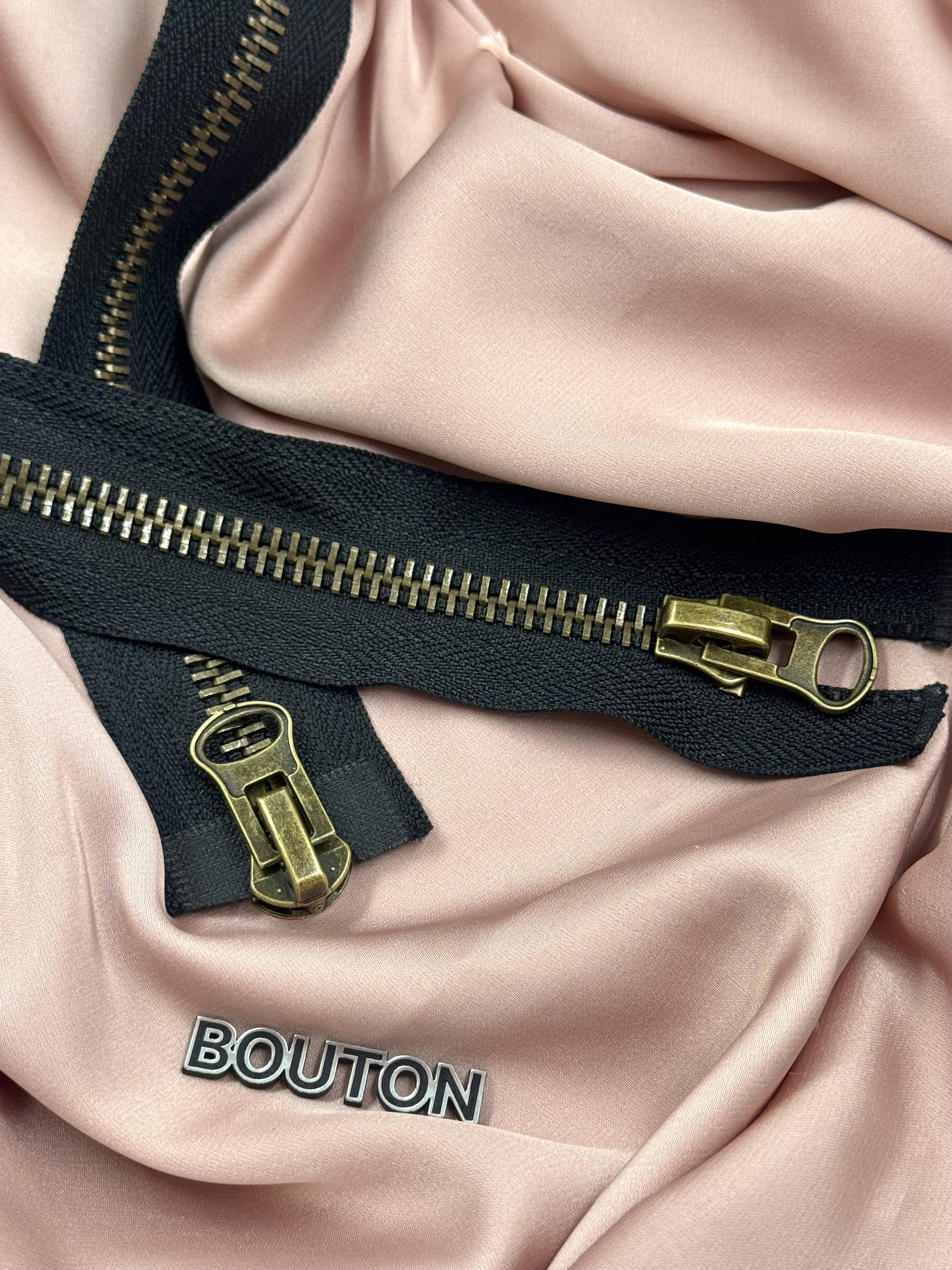 Молния черная двухзамковая с бронзовым массивным бегунком