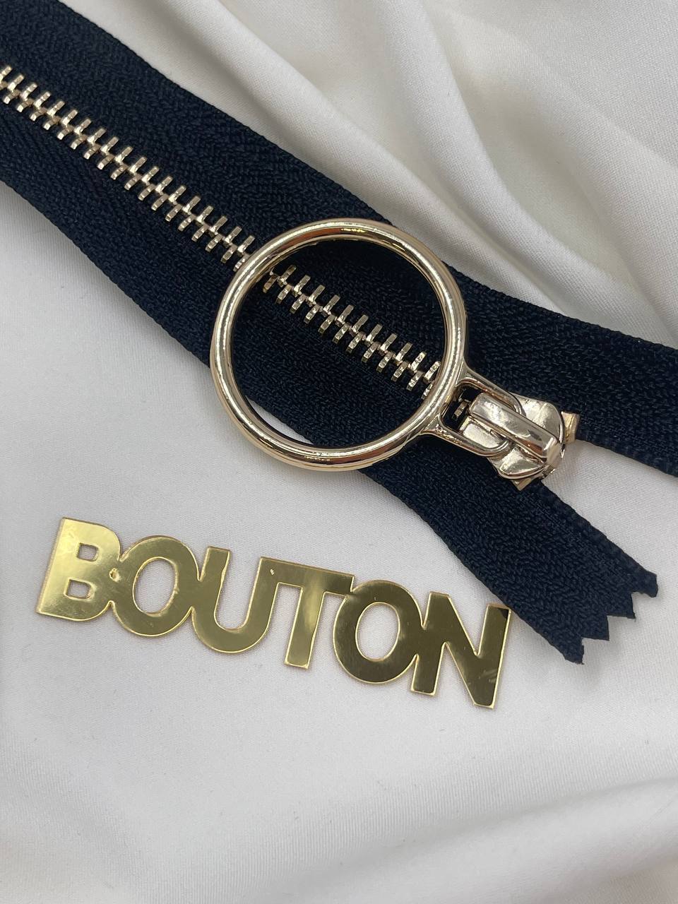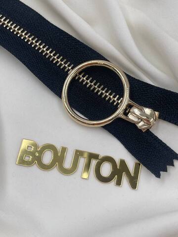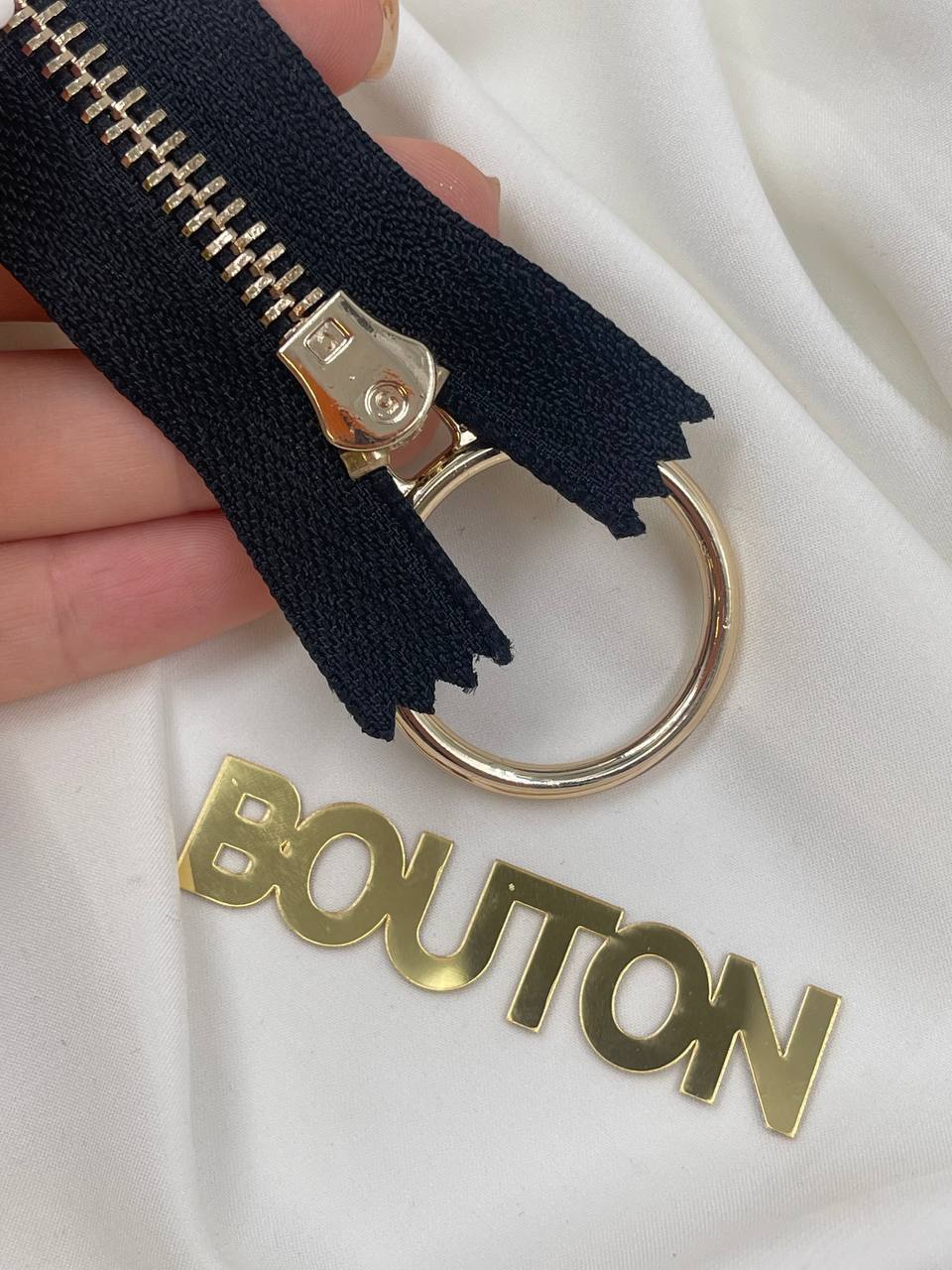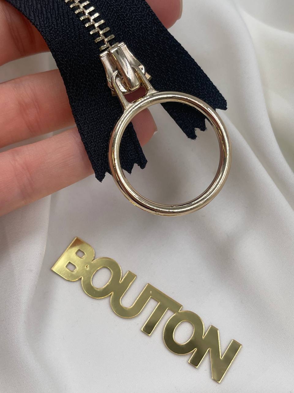 Молния черного цвета с золотистой фурнитурой и бегунком в форме массивного кольца