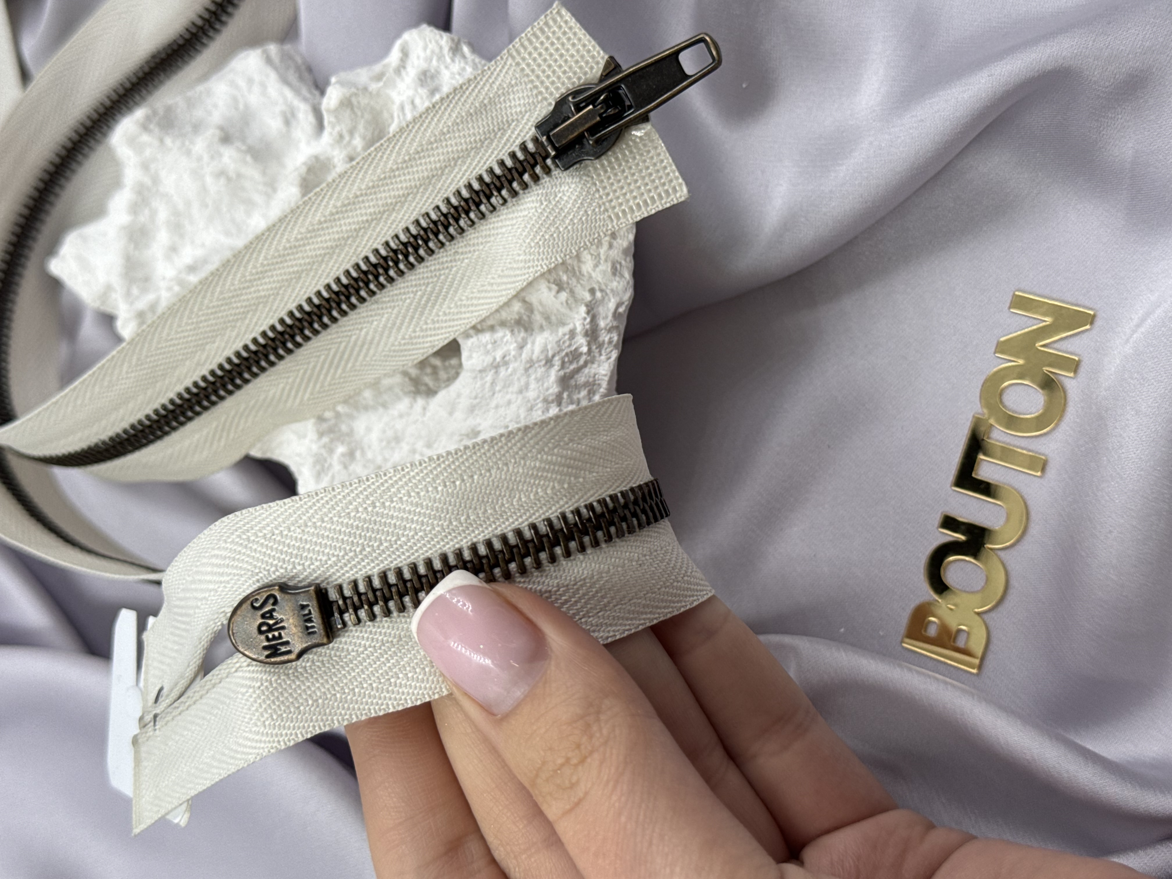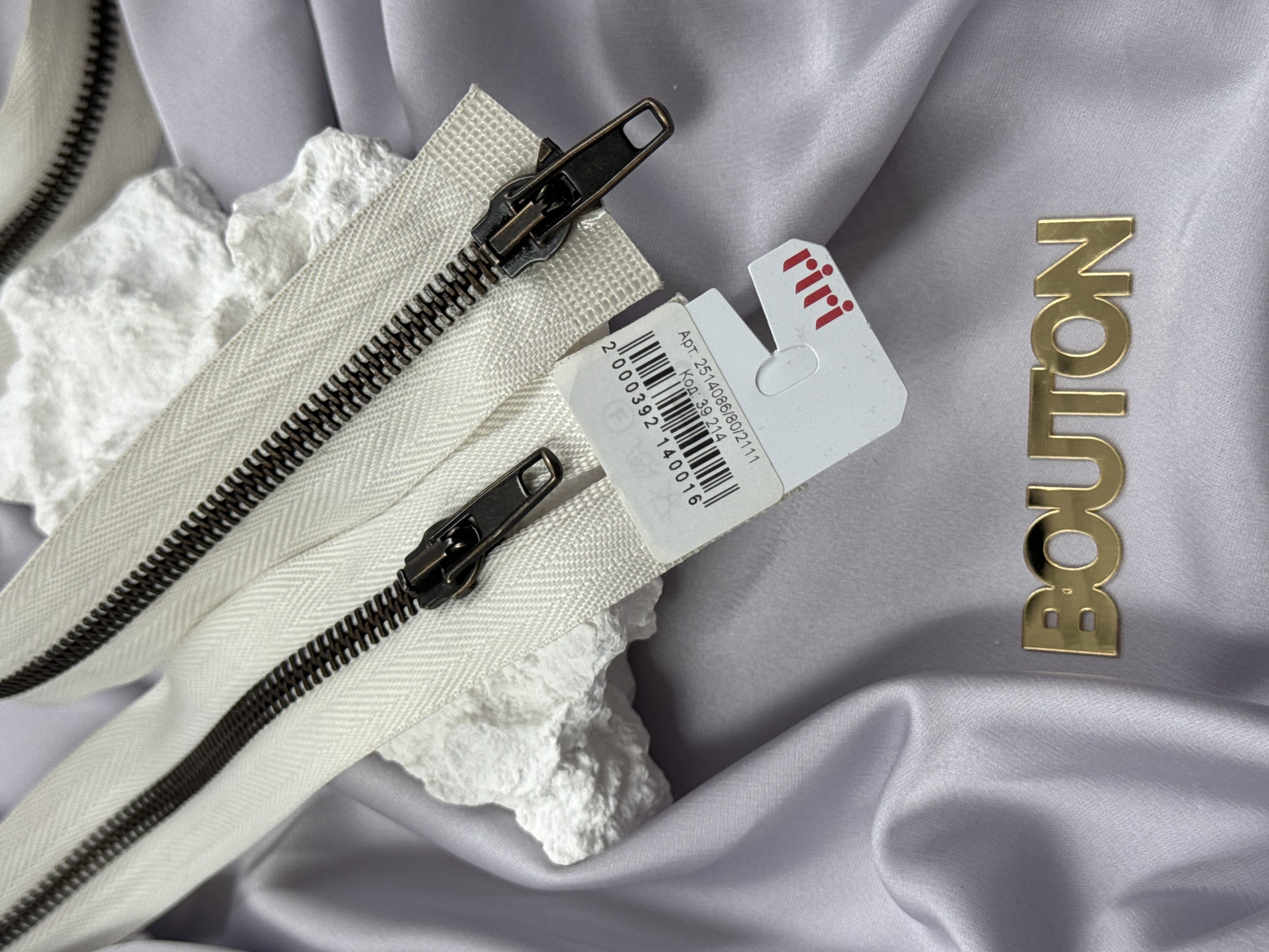 Молния Riri 2 замка бронзовая 5 мм 80 см цвет тесьмы 2111 бело-бежевый светлый