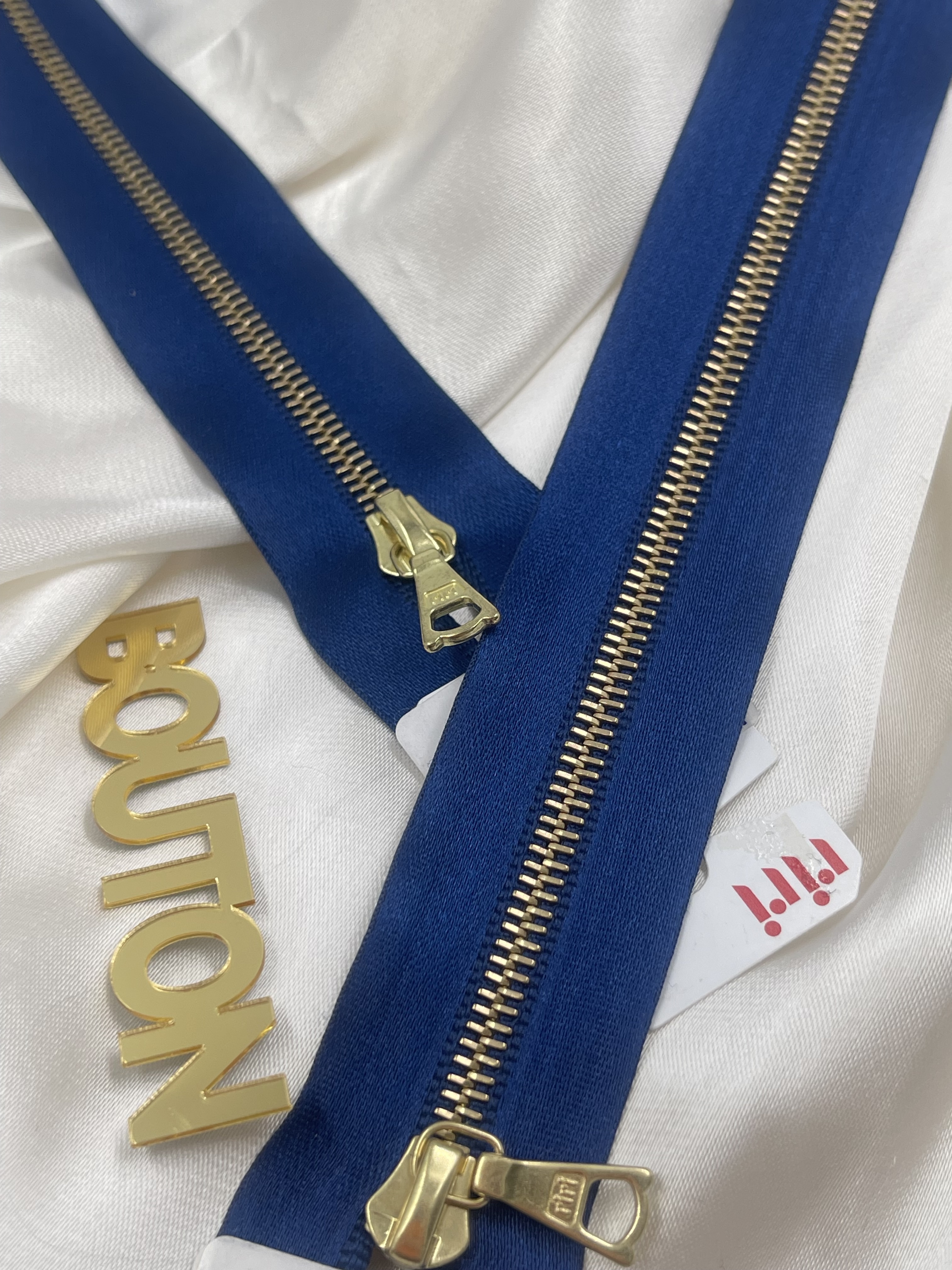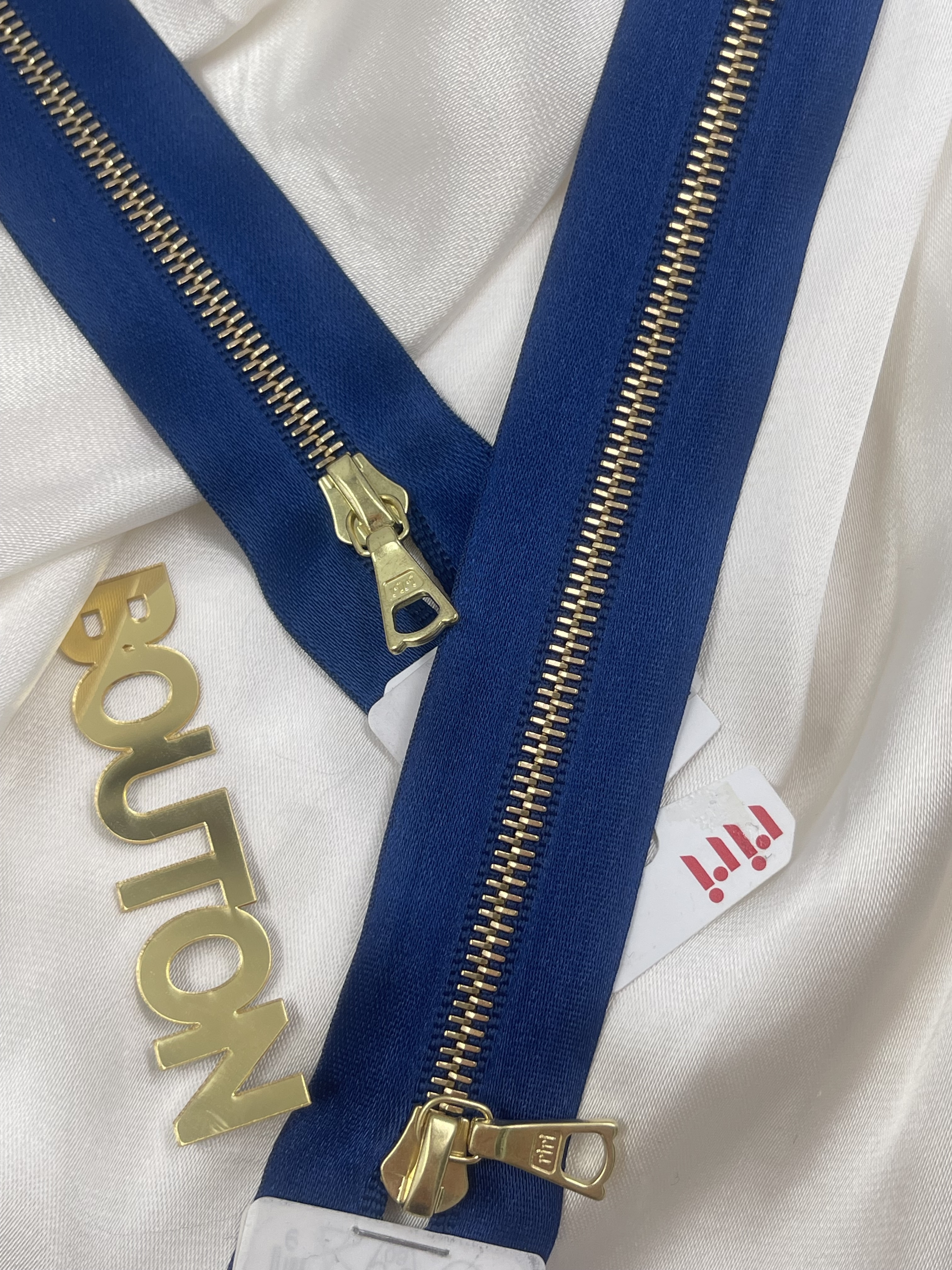 Молния Riri, на атласной тесьме, золотистая, 4мм, цвет 9603 синий