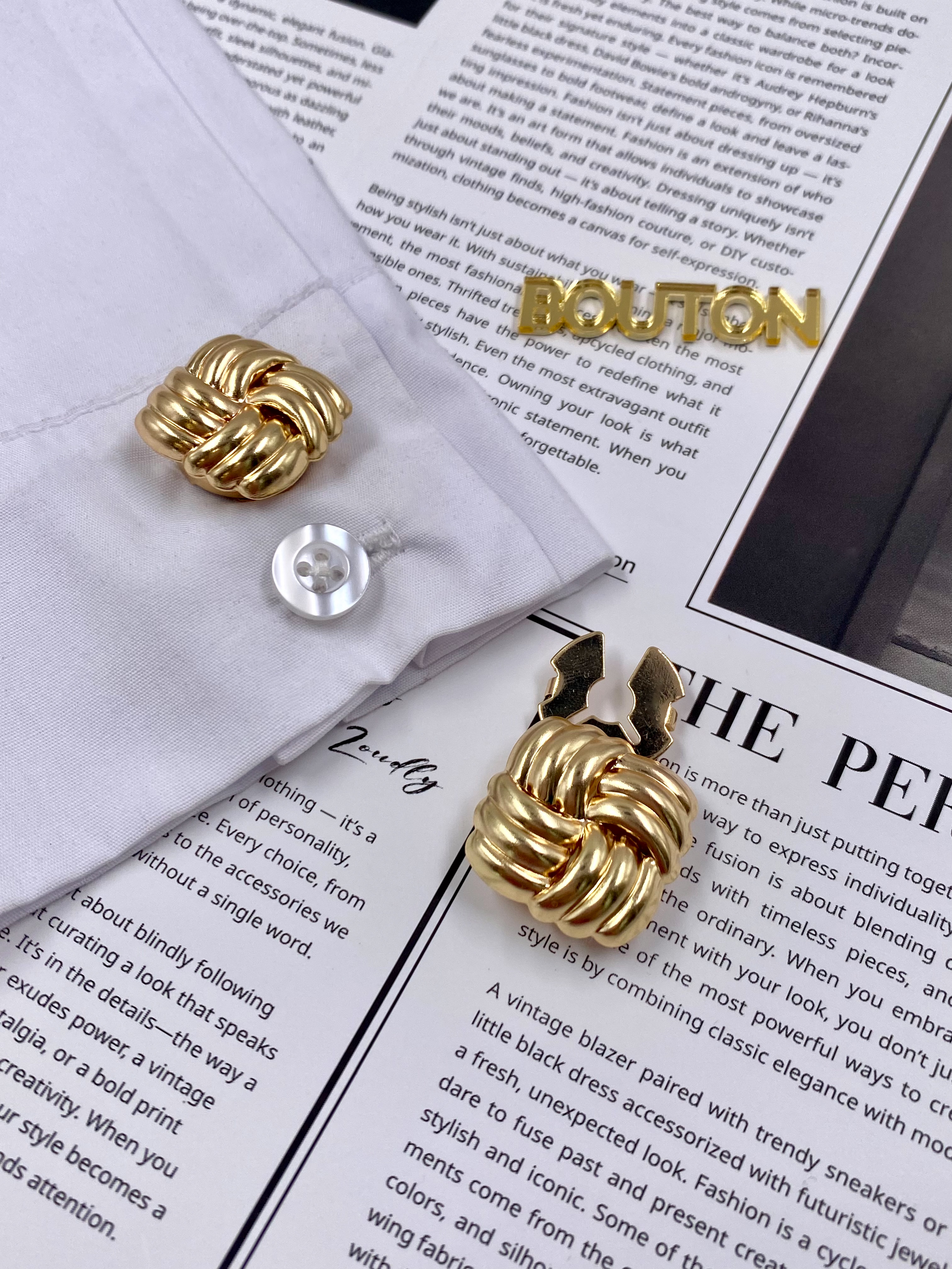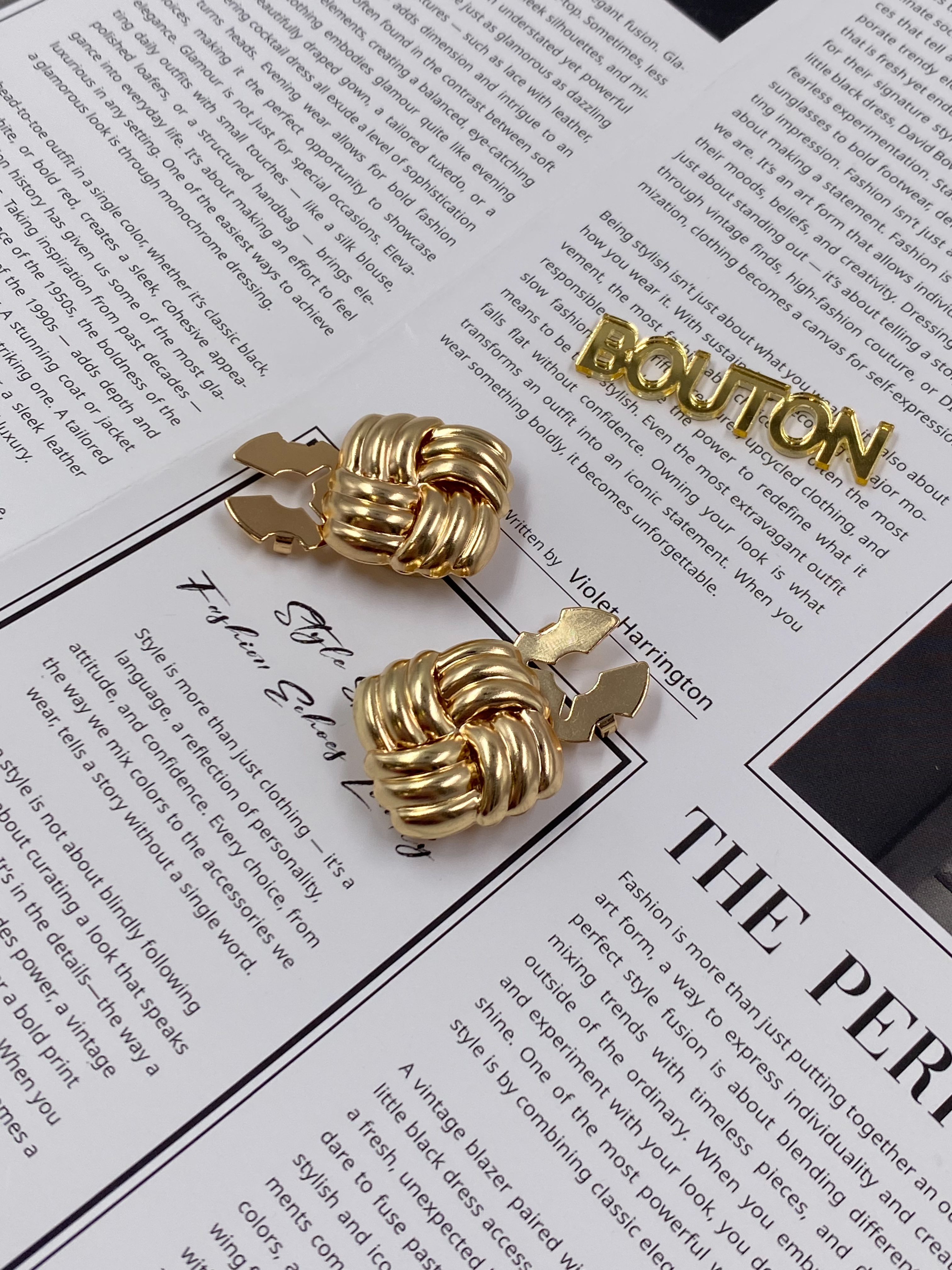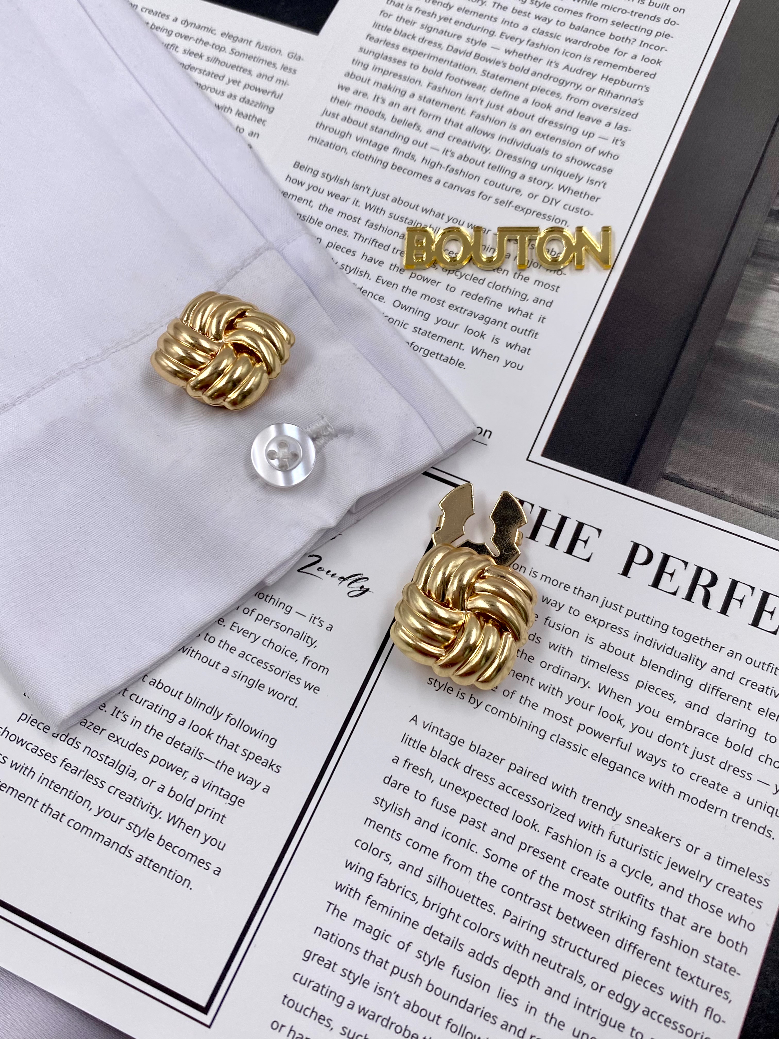 Накладки на пуговицы золотистые с жемчугом (клипсы)