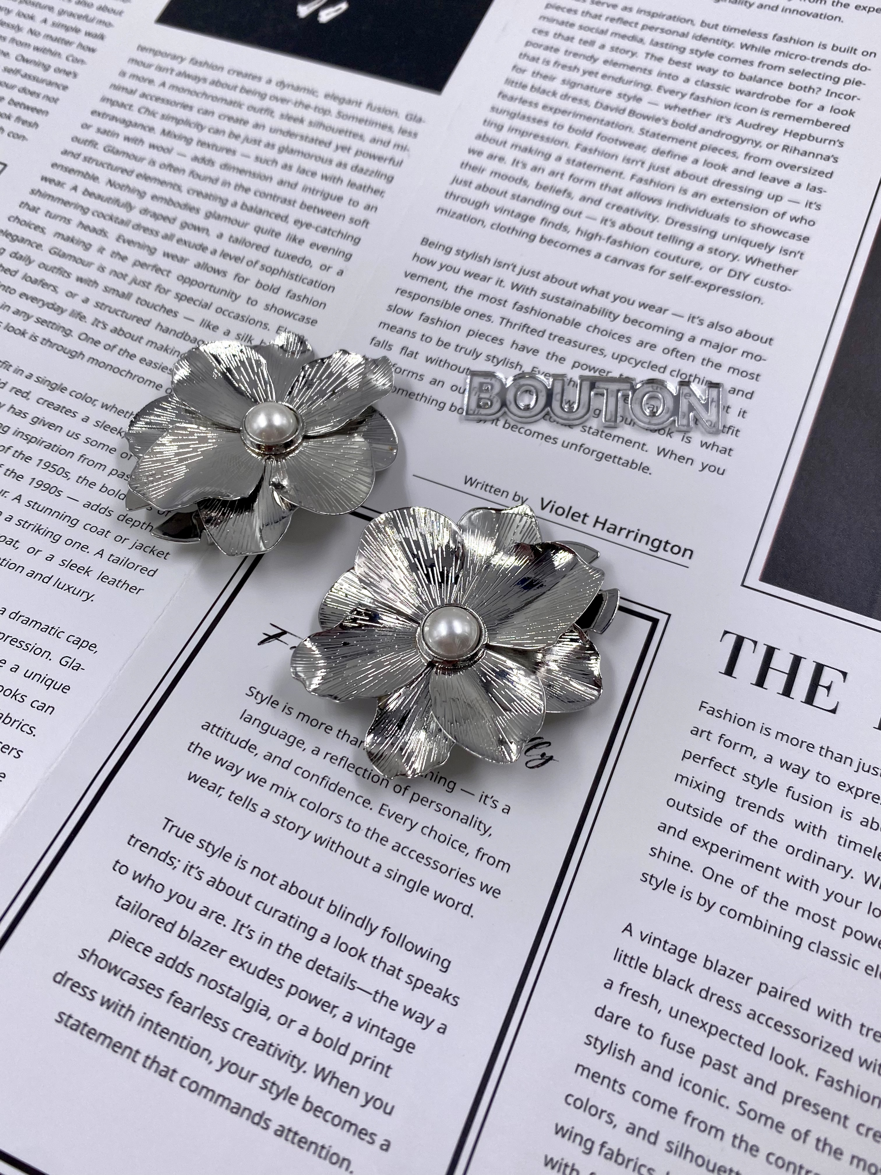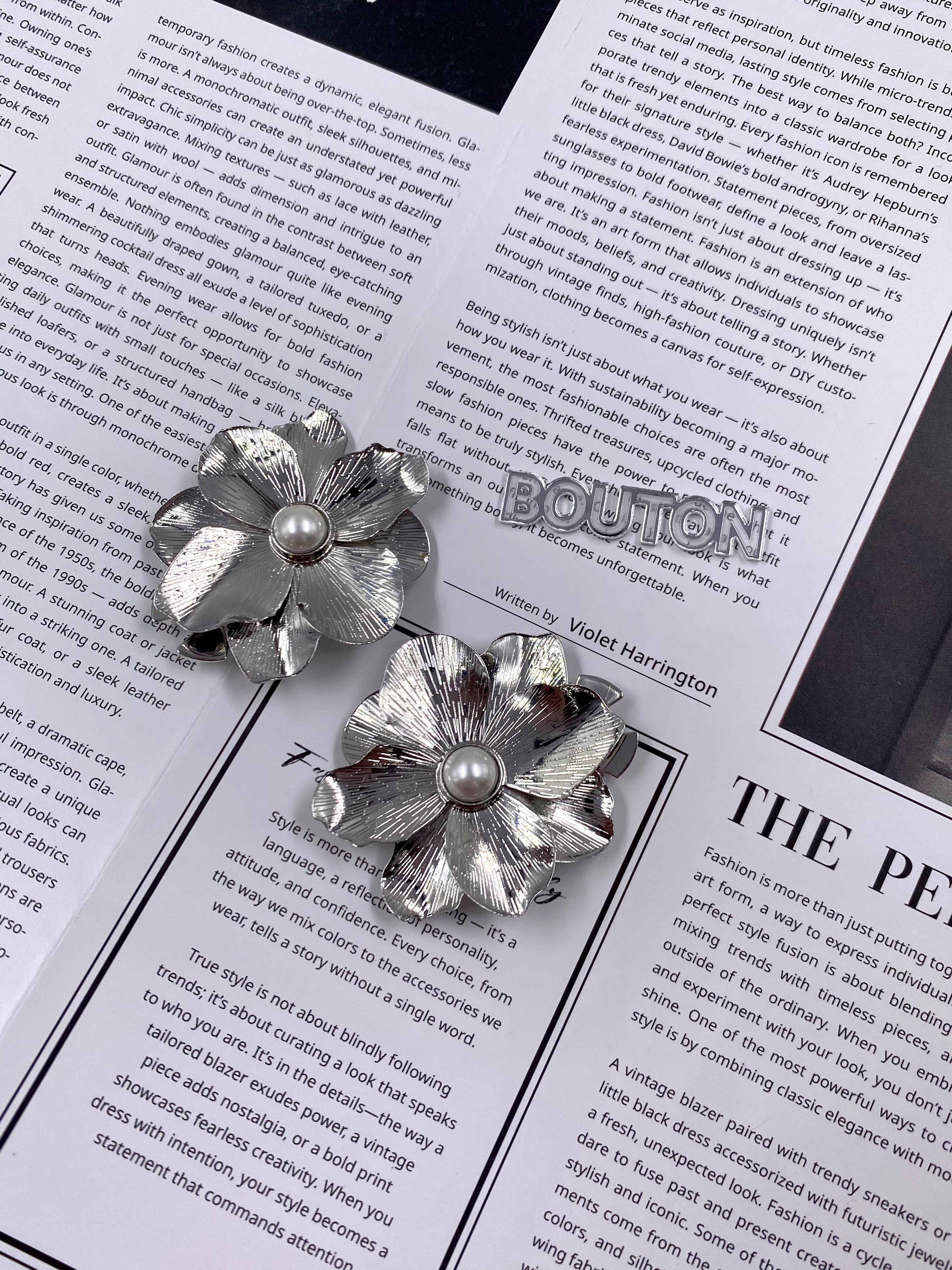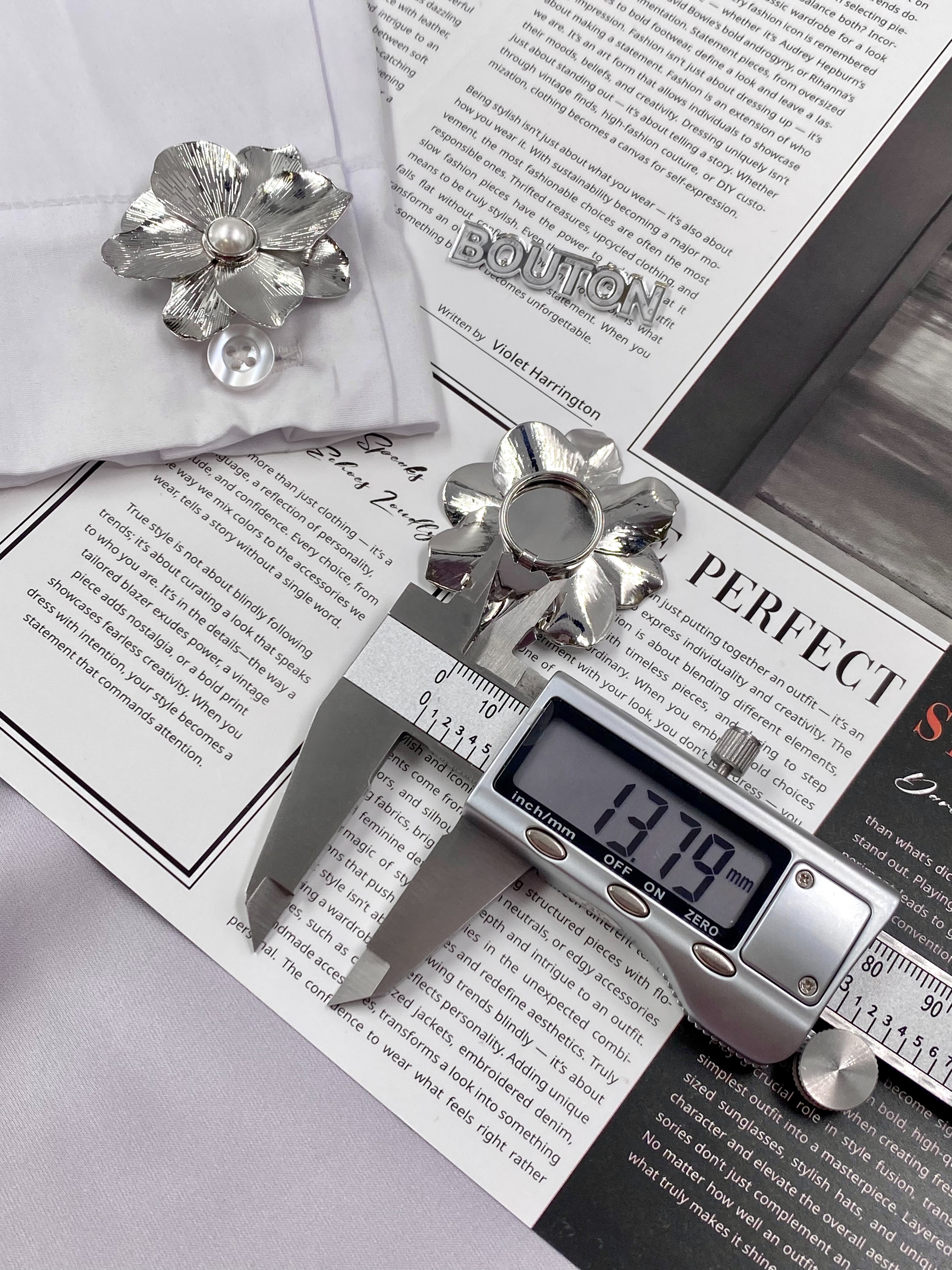 Накладка на пуговицу серебристая с жемчугом и стразами