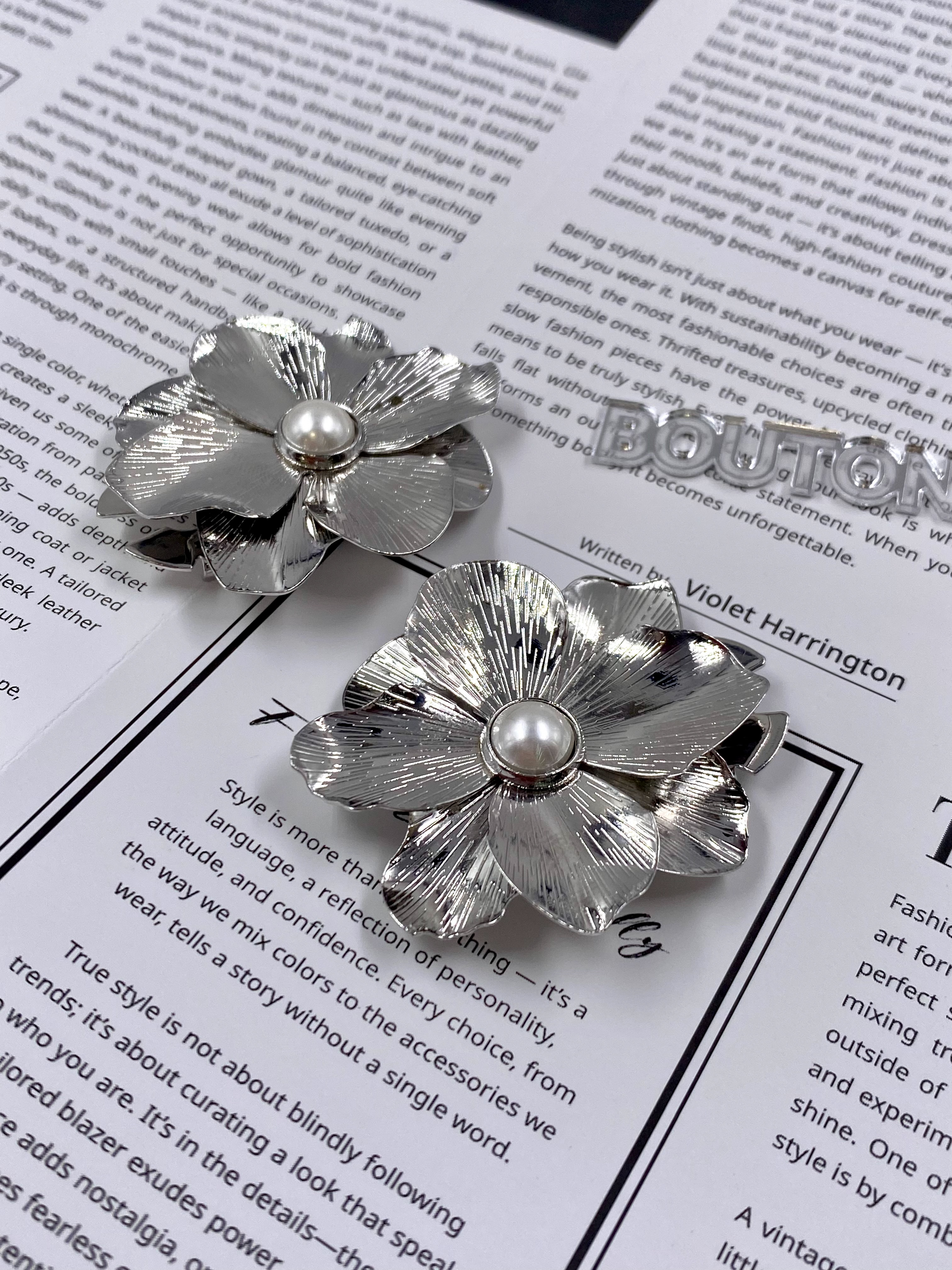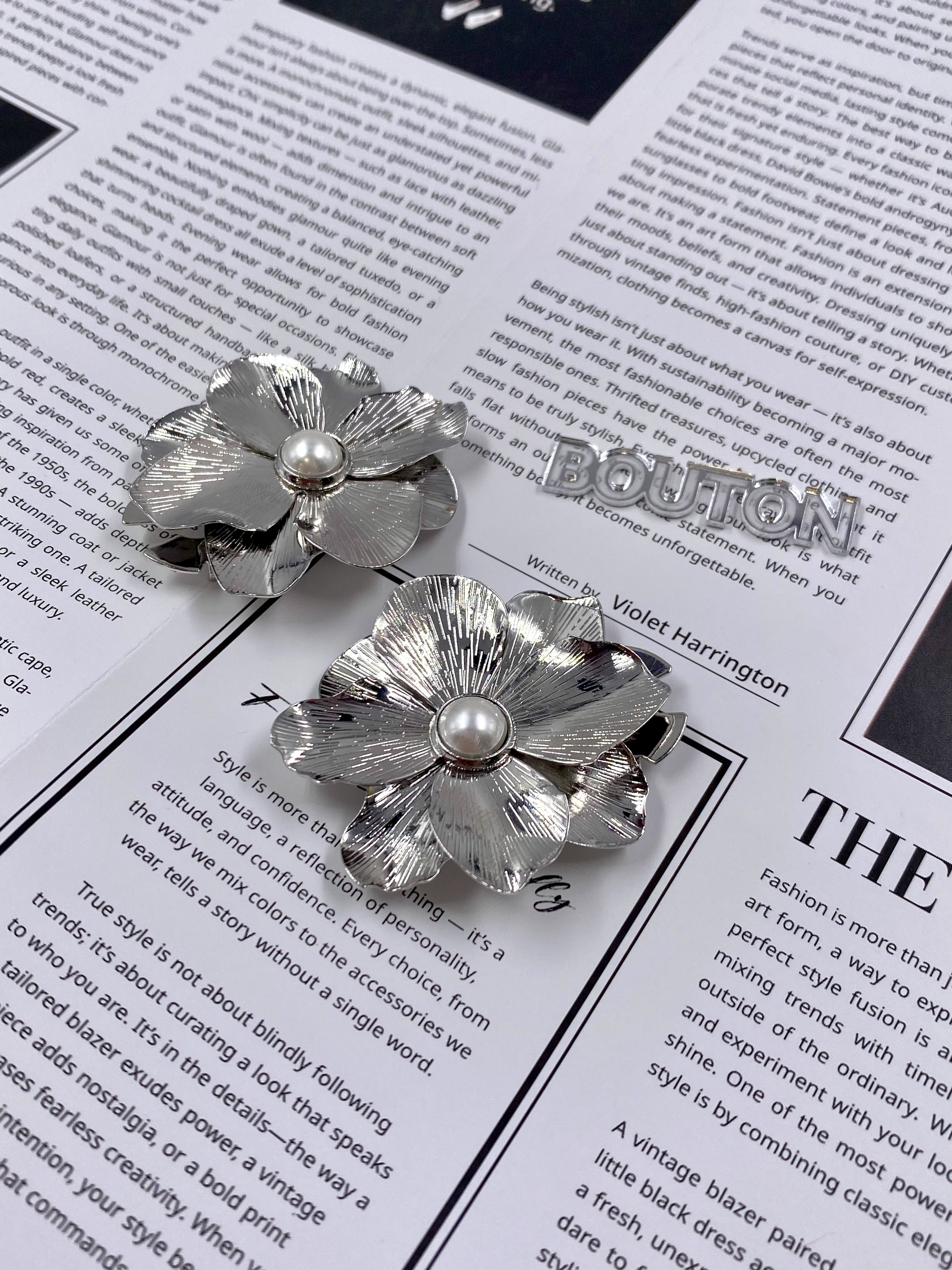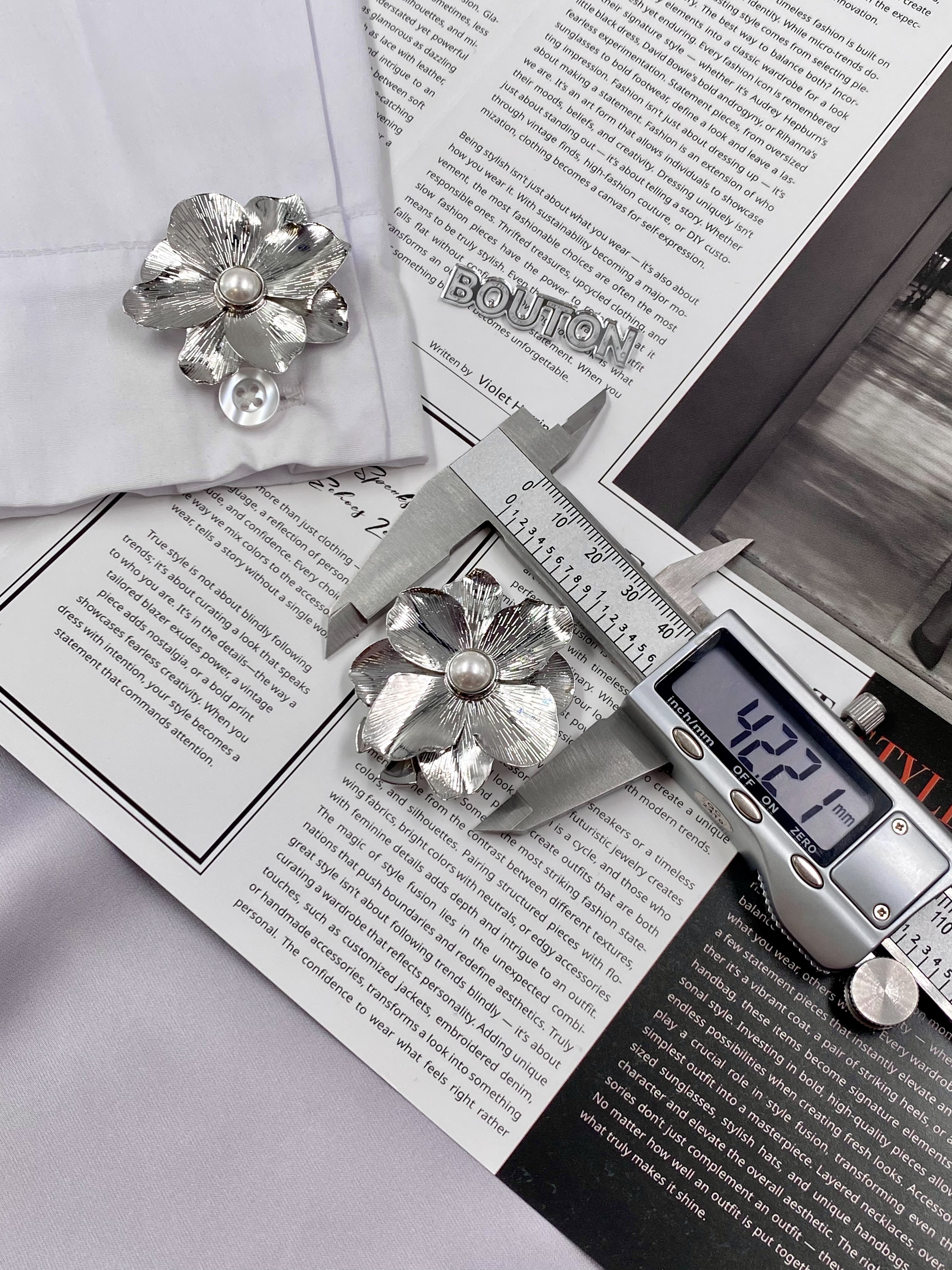 Накладка на пуговицу серебристая с жемчугом и стразами