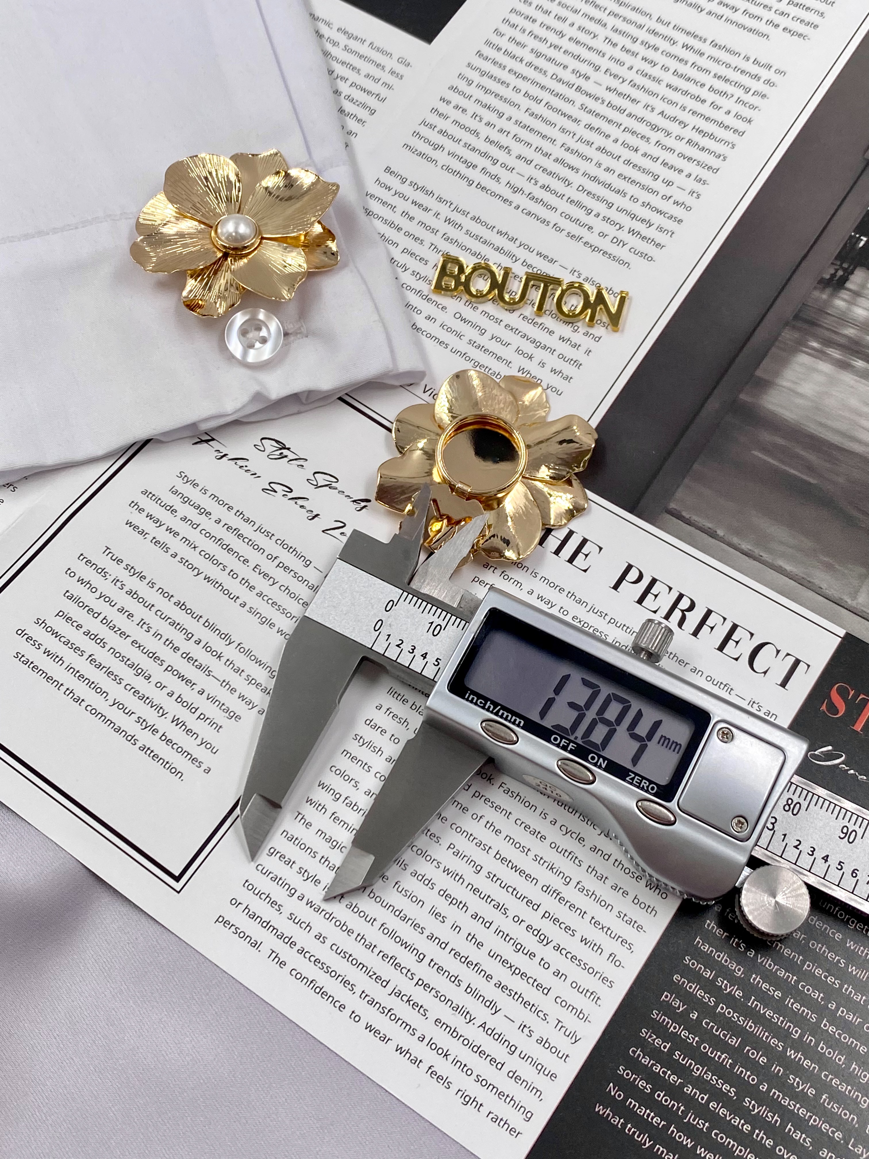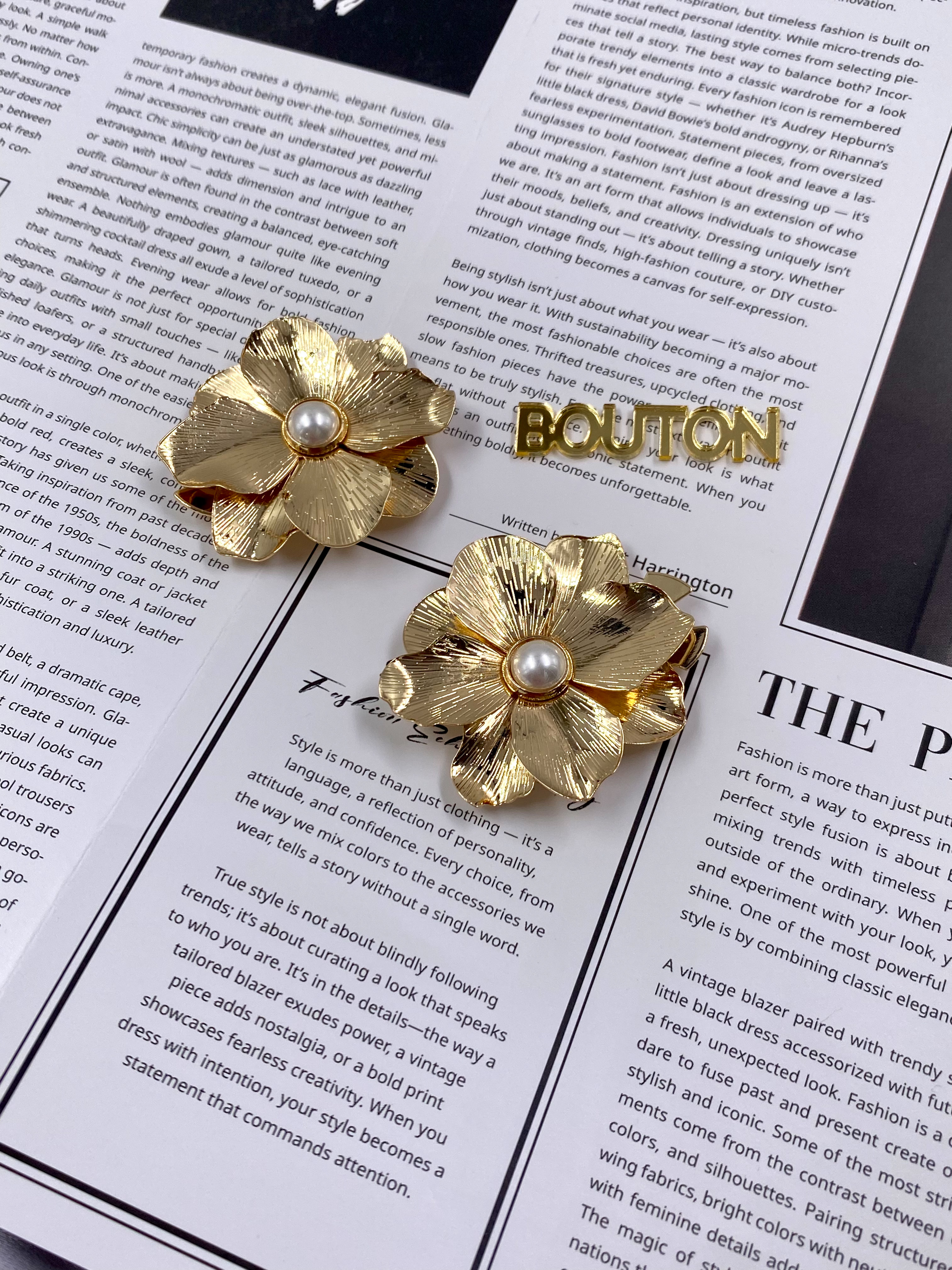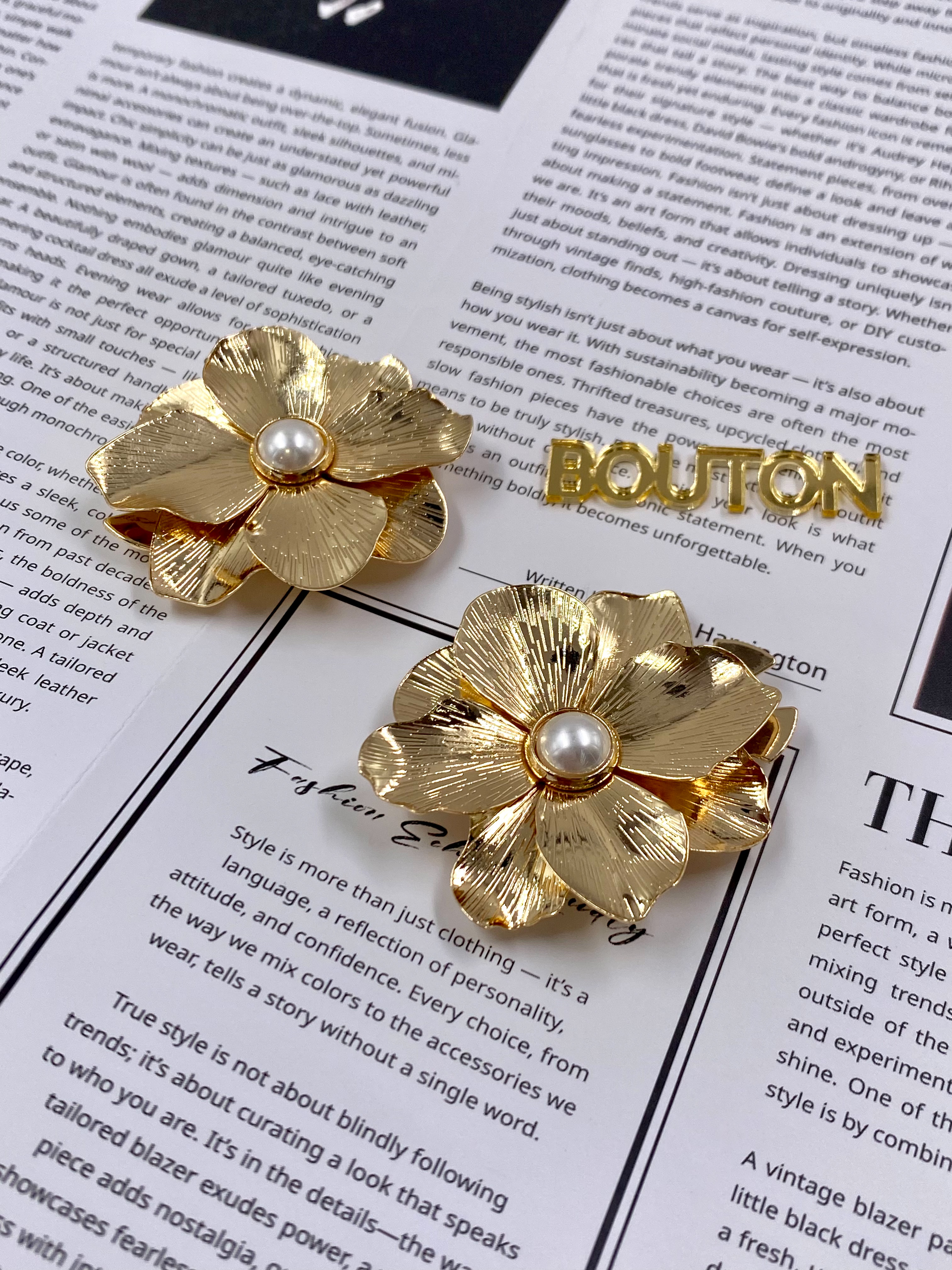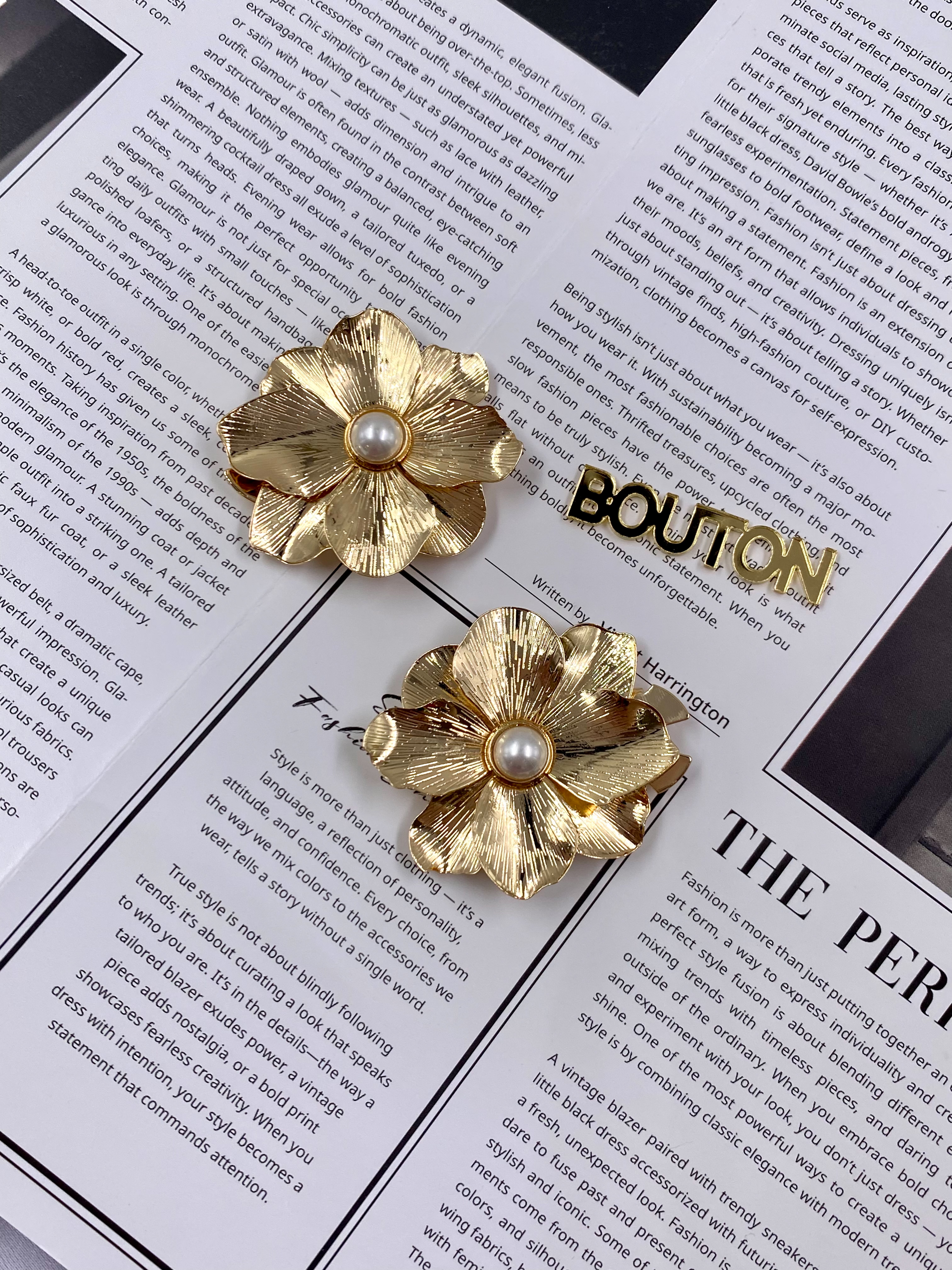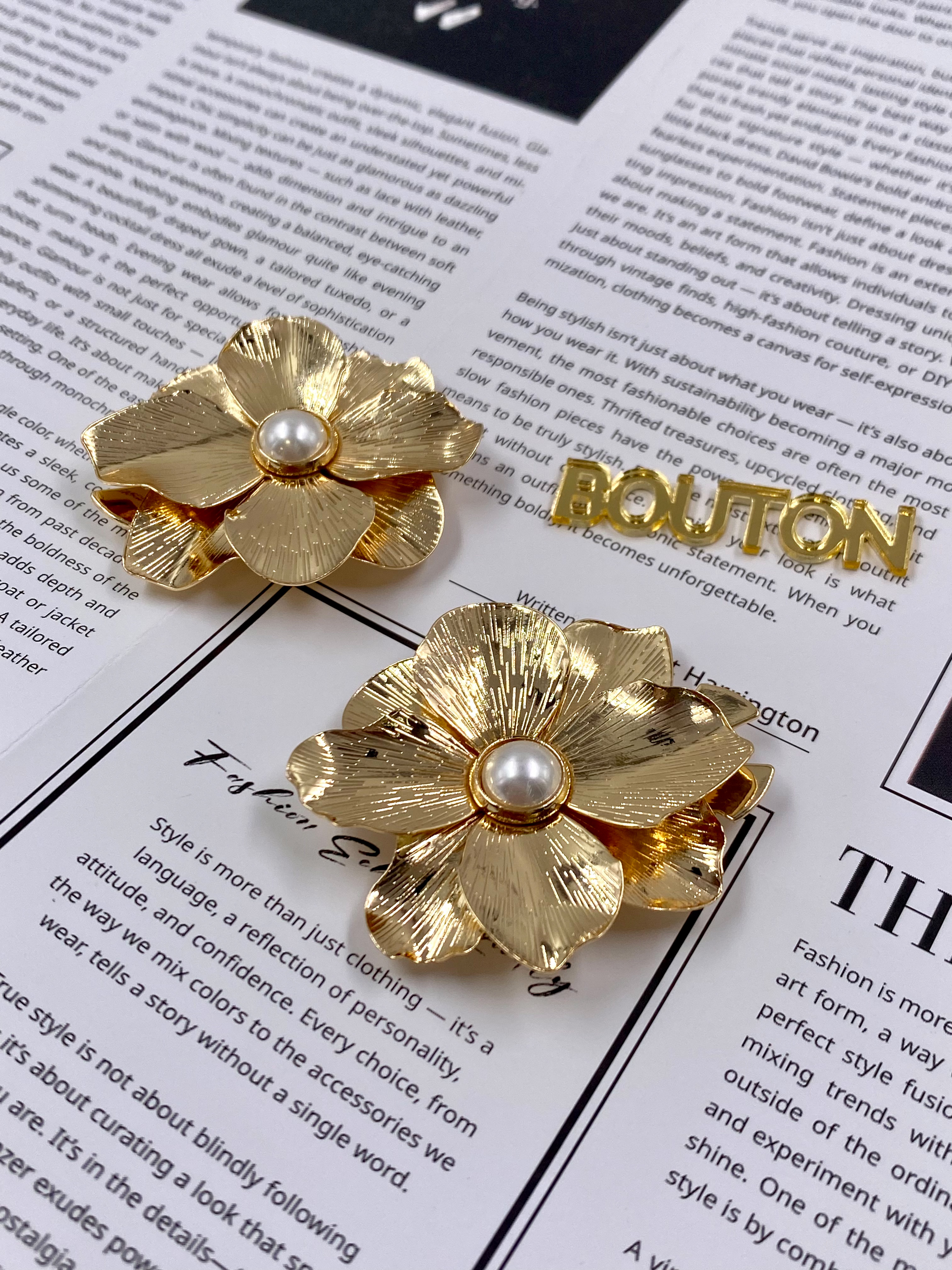Накладка на пуговицу золотистая в форме цветка с жемчугом