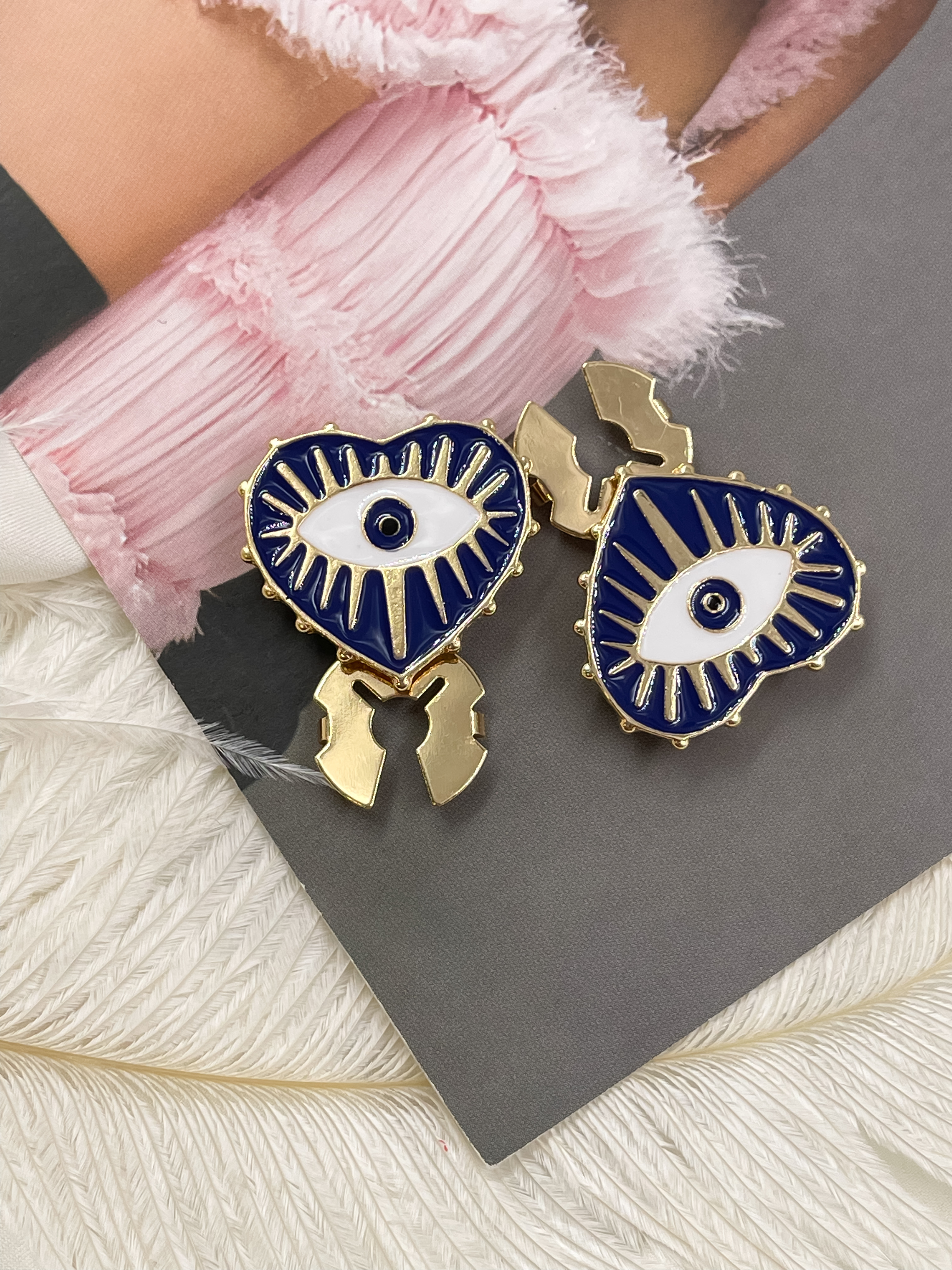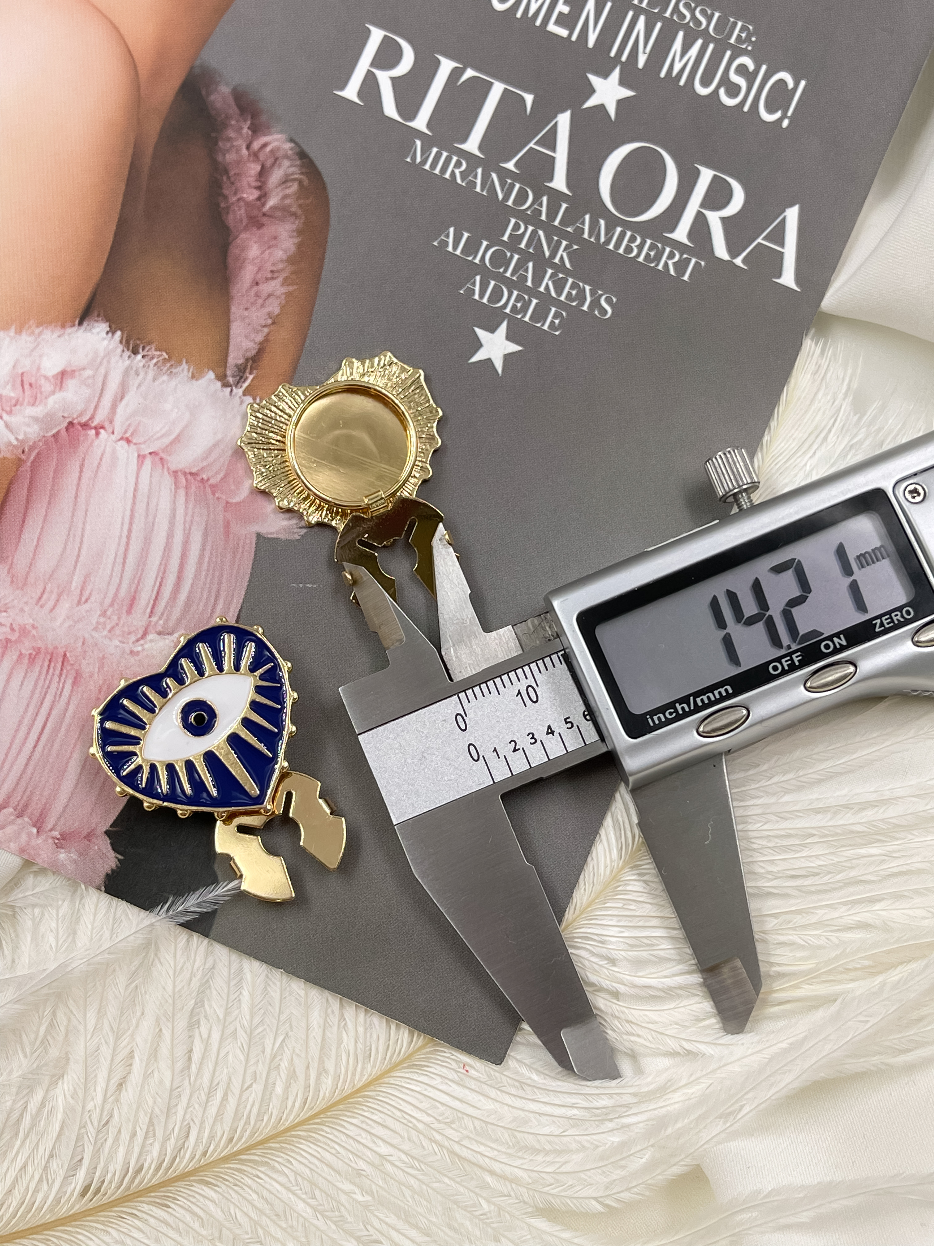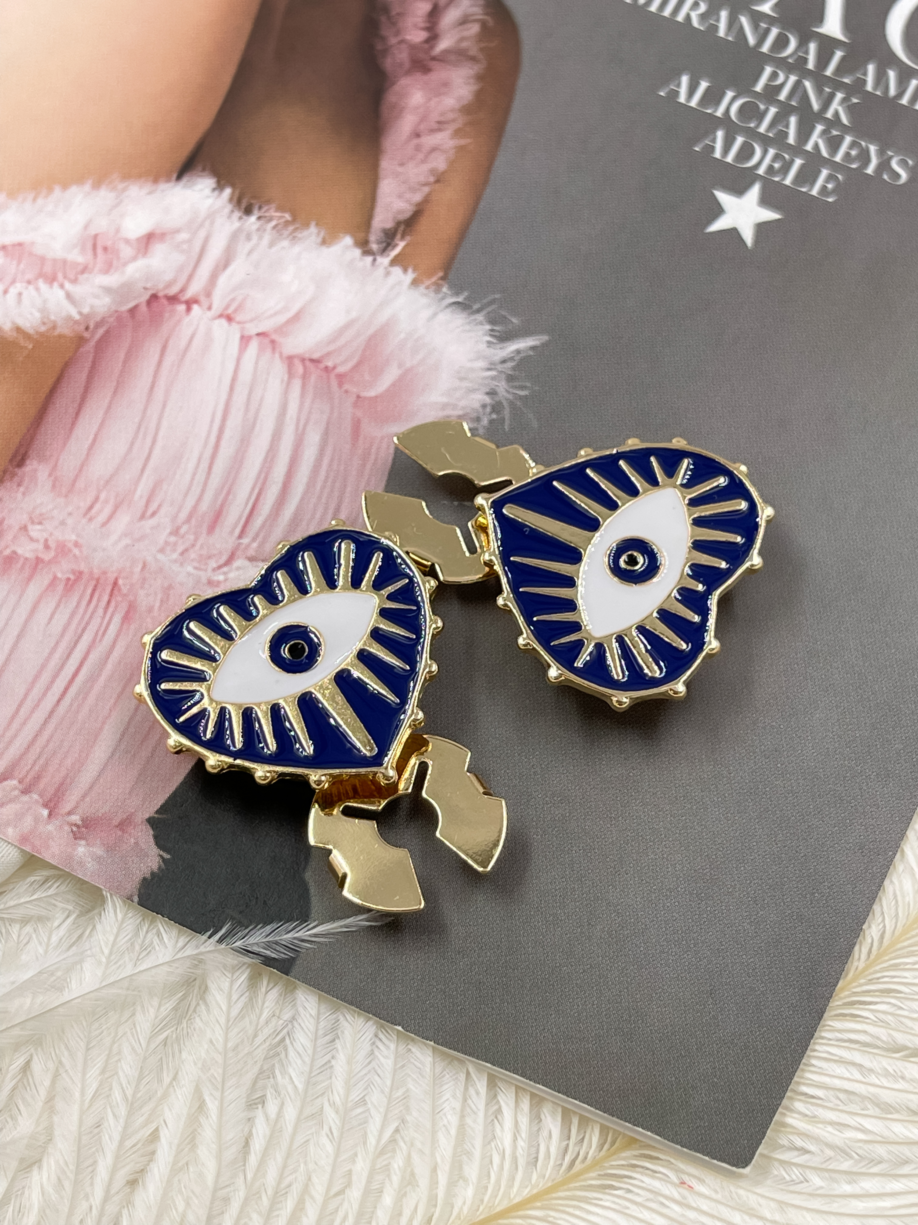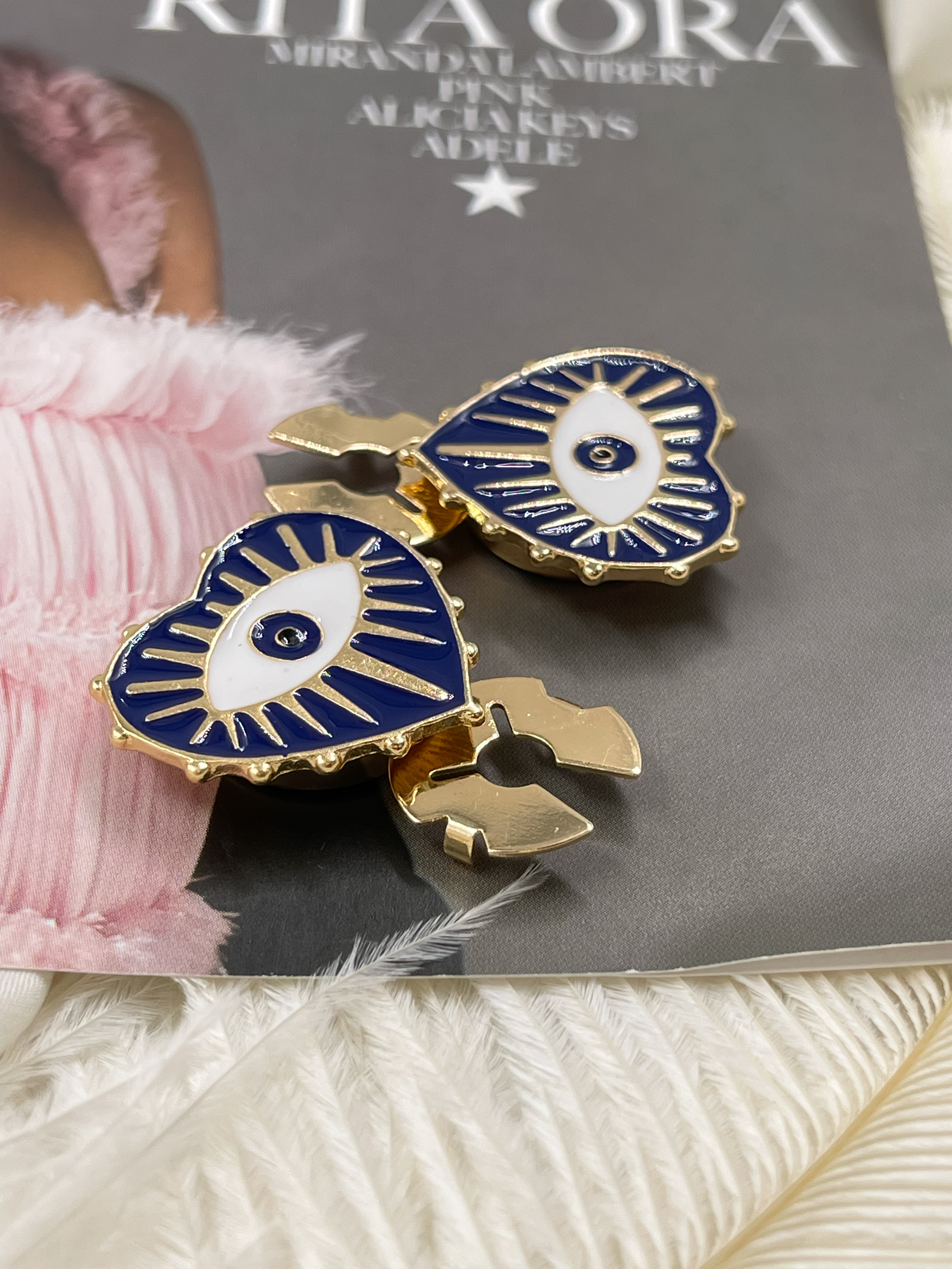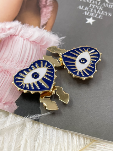 Накладка на пуговицу в форме сердца с глазом золотистая с синей эмалью
