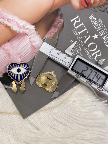 Накладочка на пуговки на золотистой металлической основе с дизайном в форме сердечка с глазом