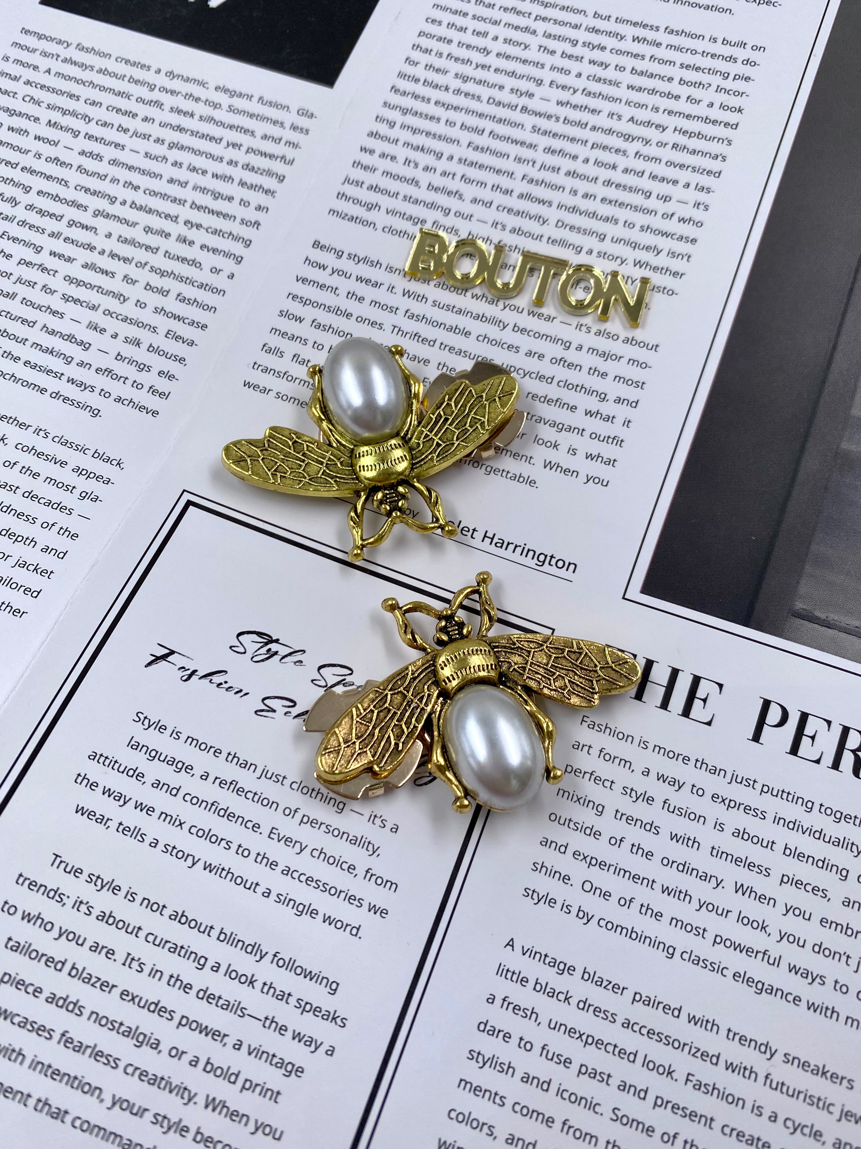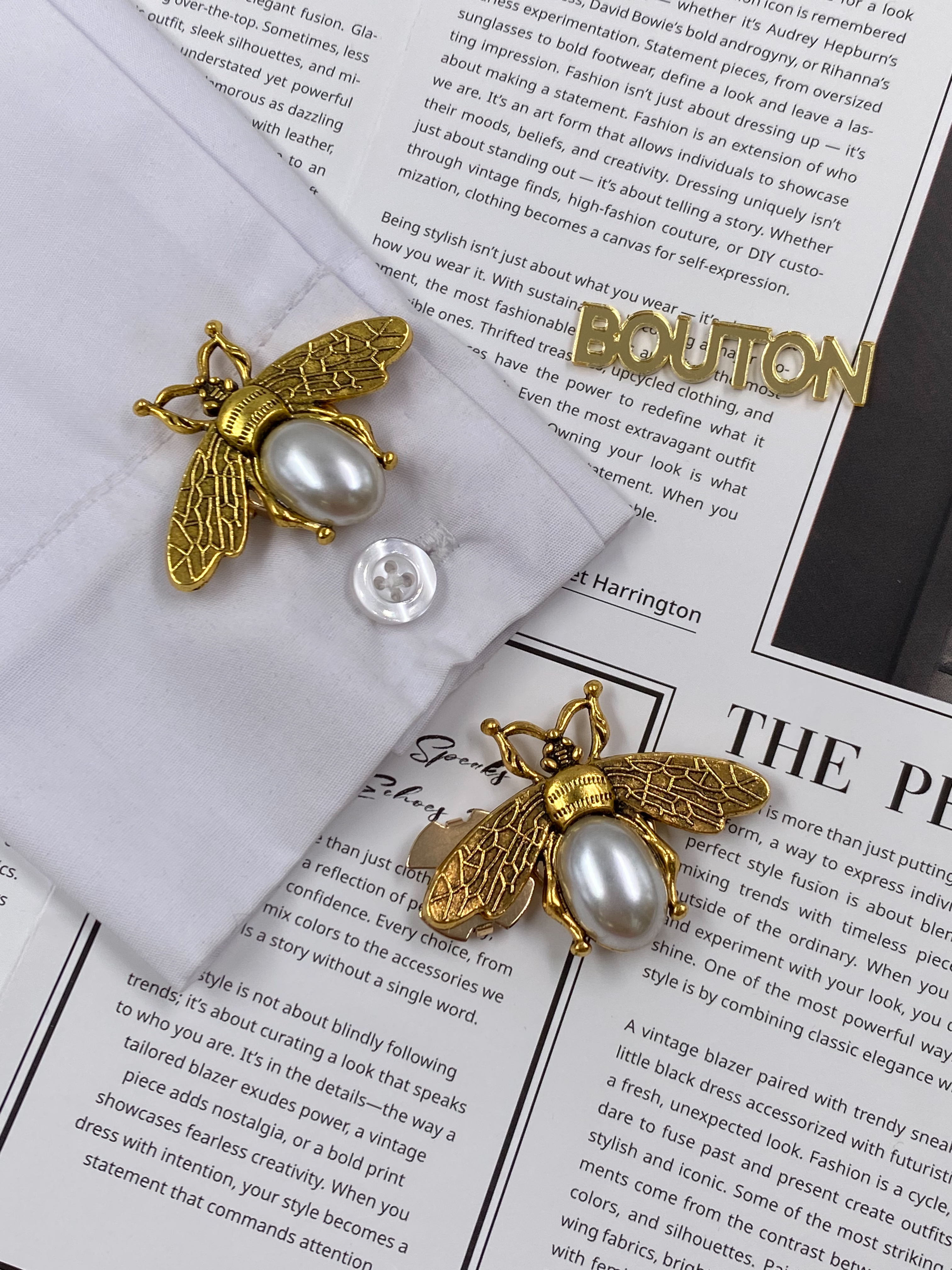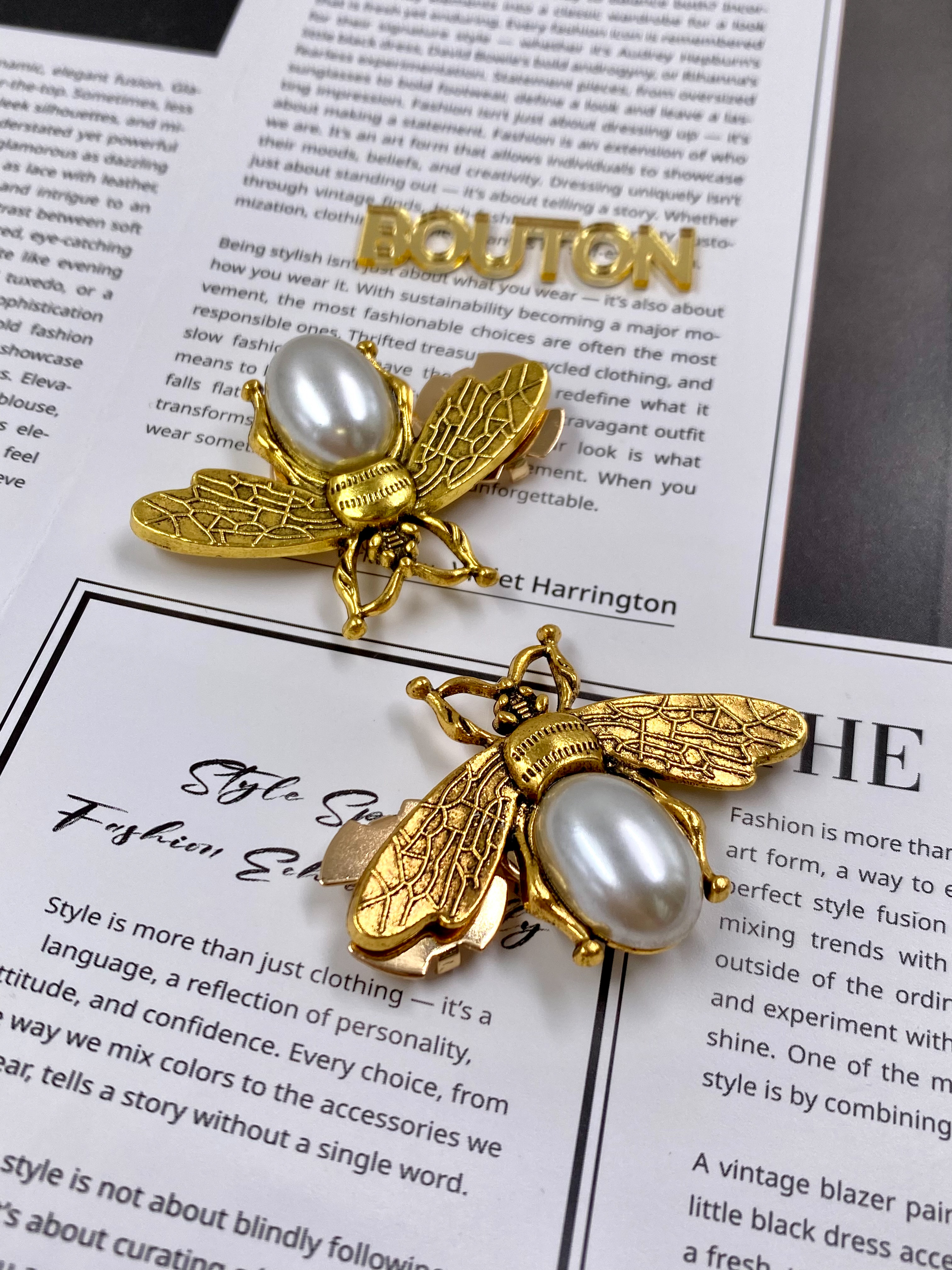 Накладки на пуговицы золотистые с жемчугом (клипсы)