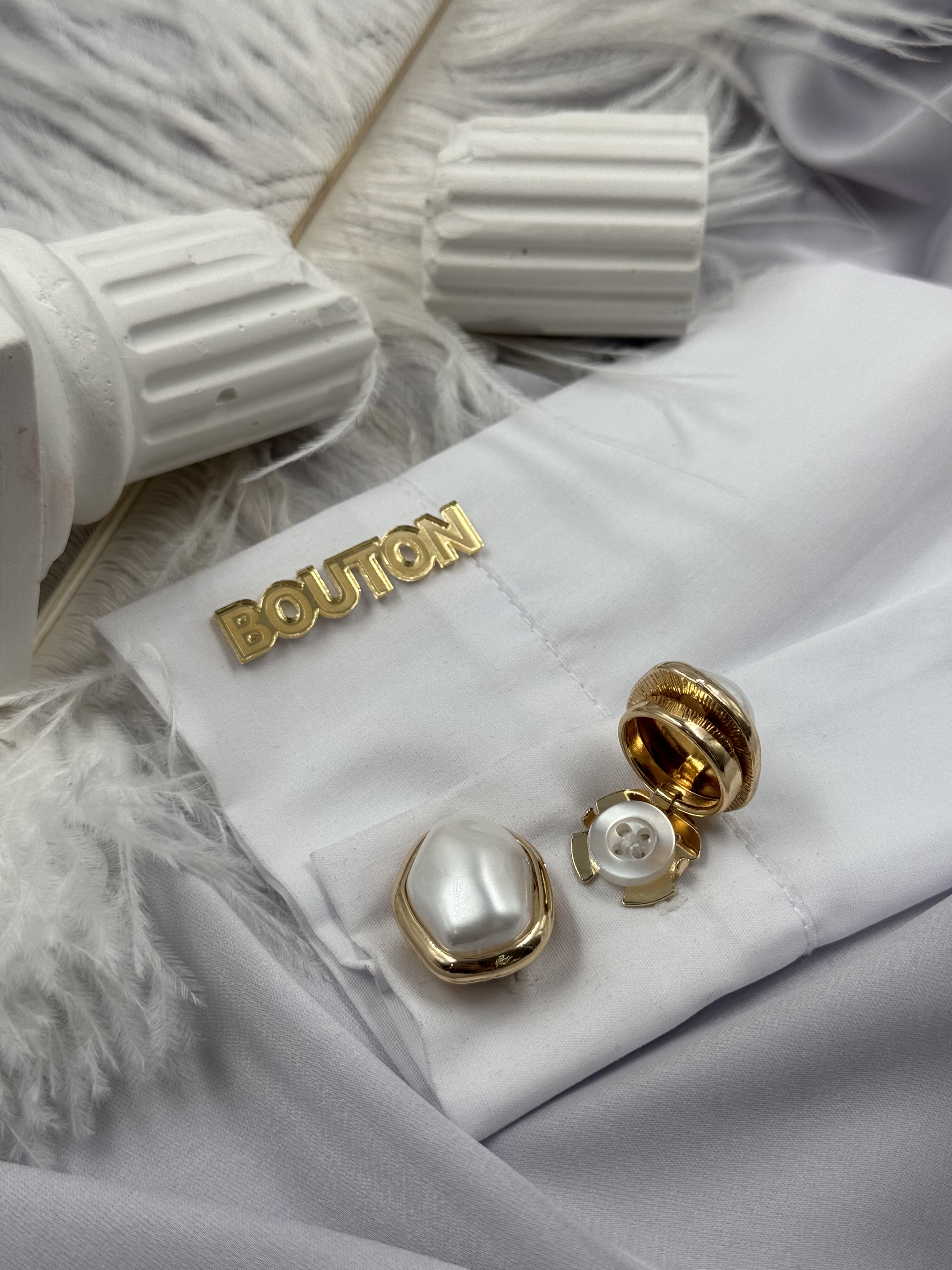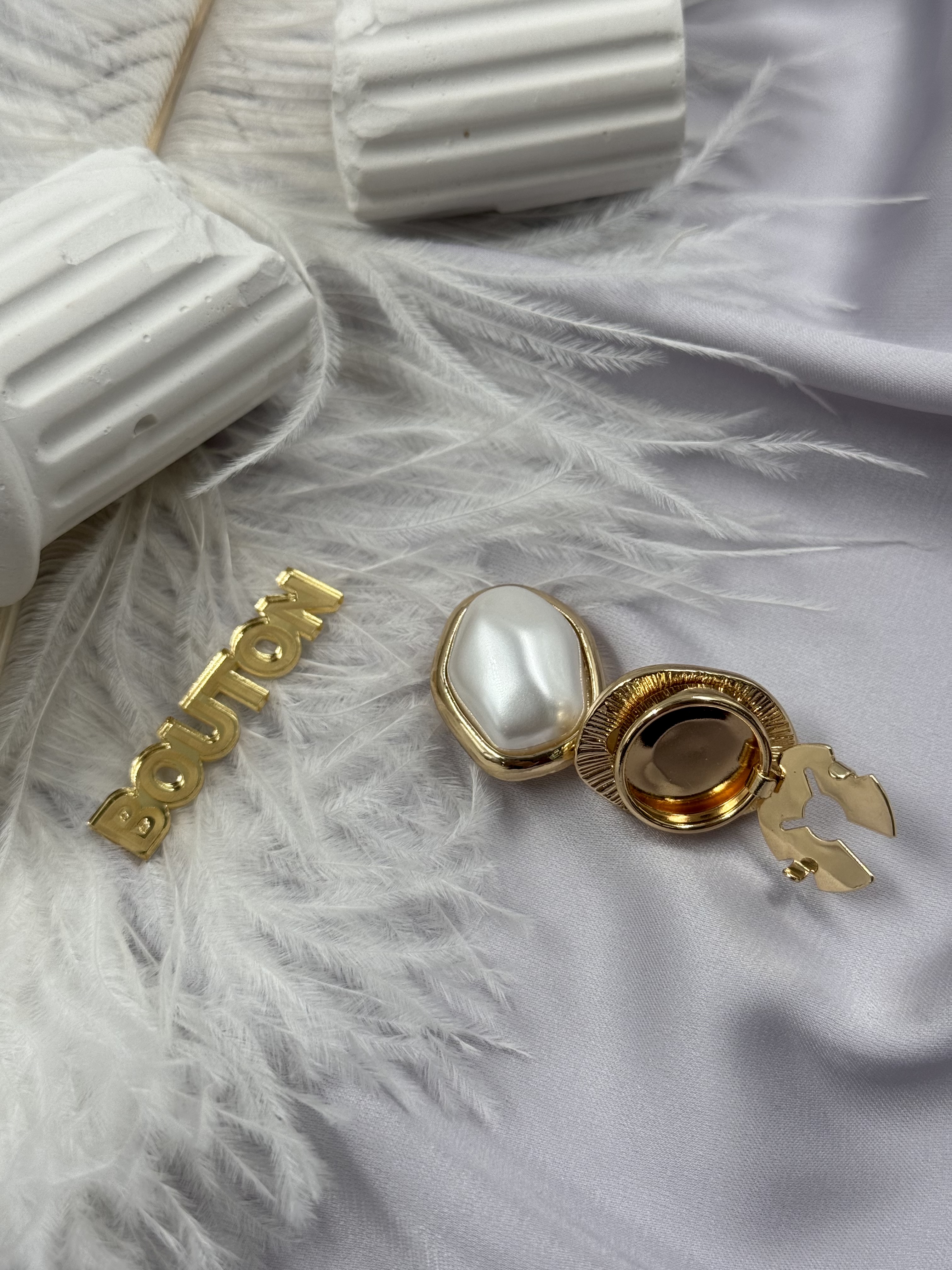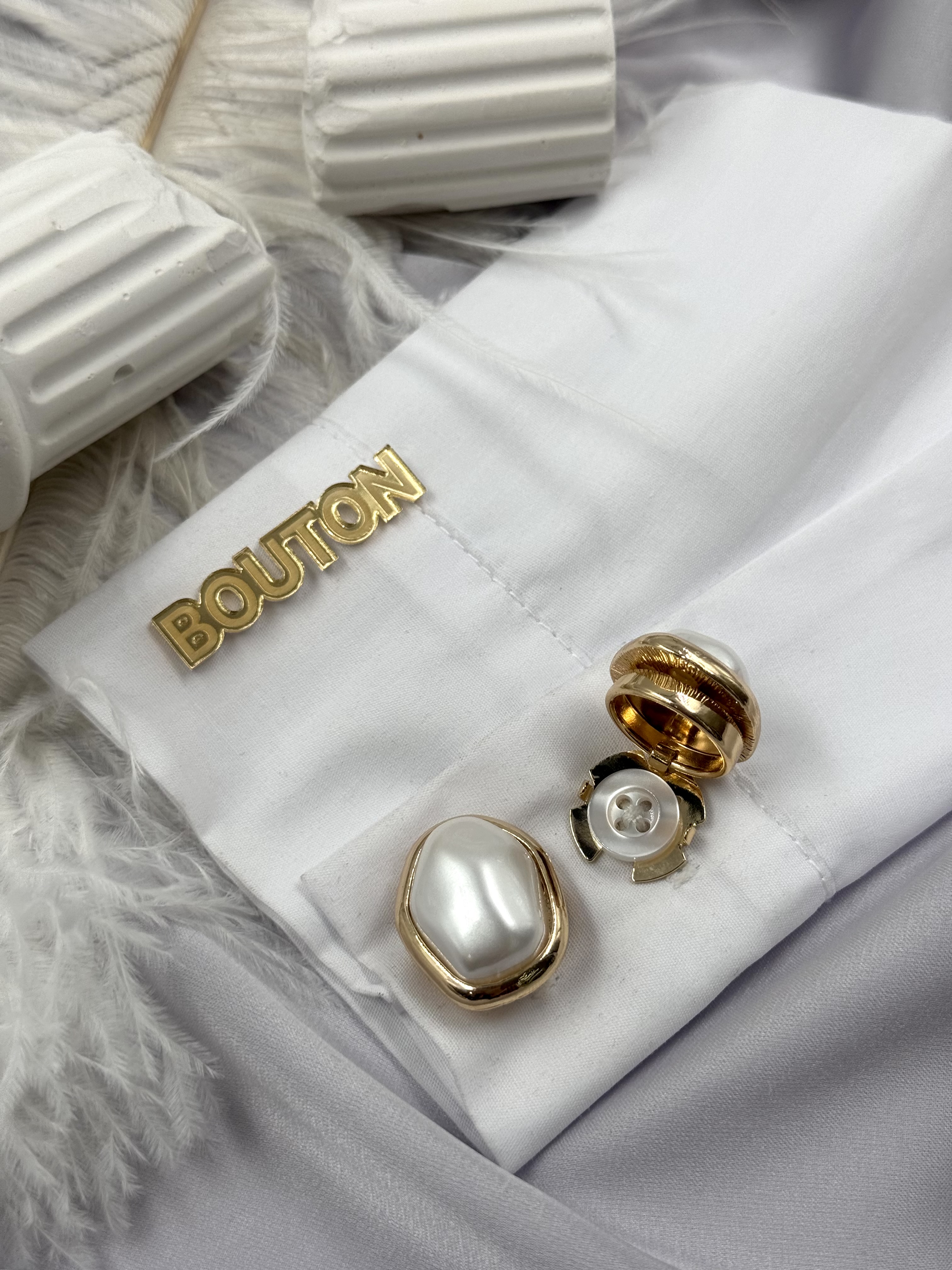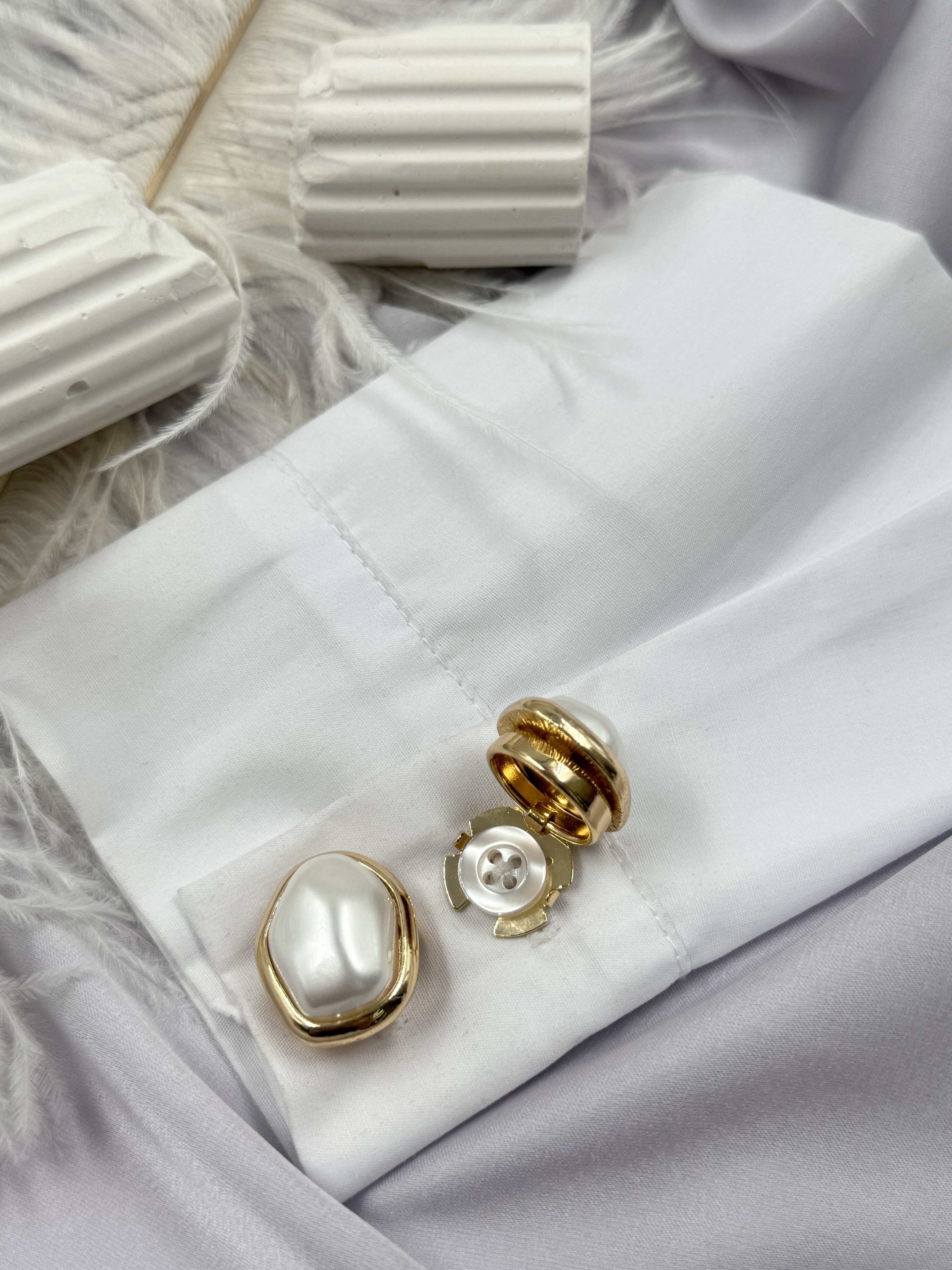 Накладки на пуговицы золотистые с жемчугом (клипсы)