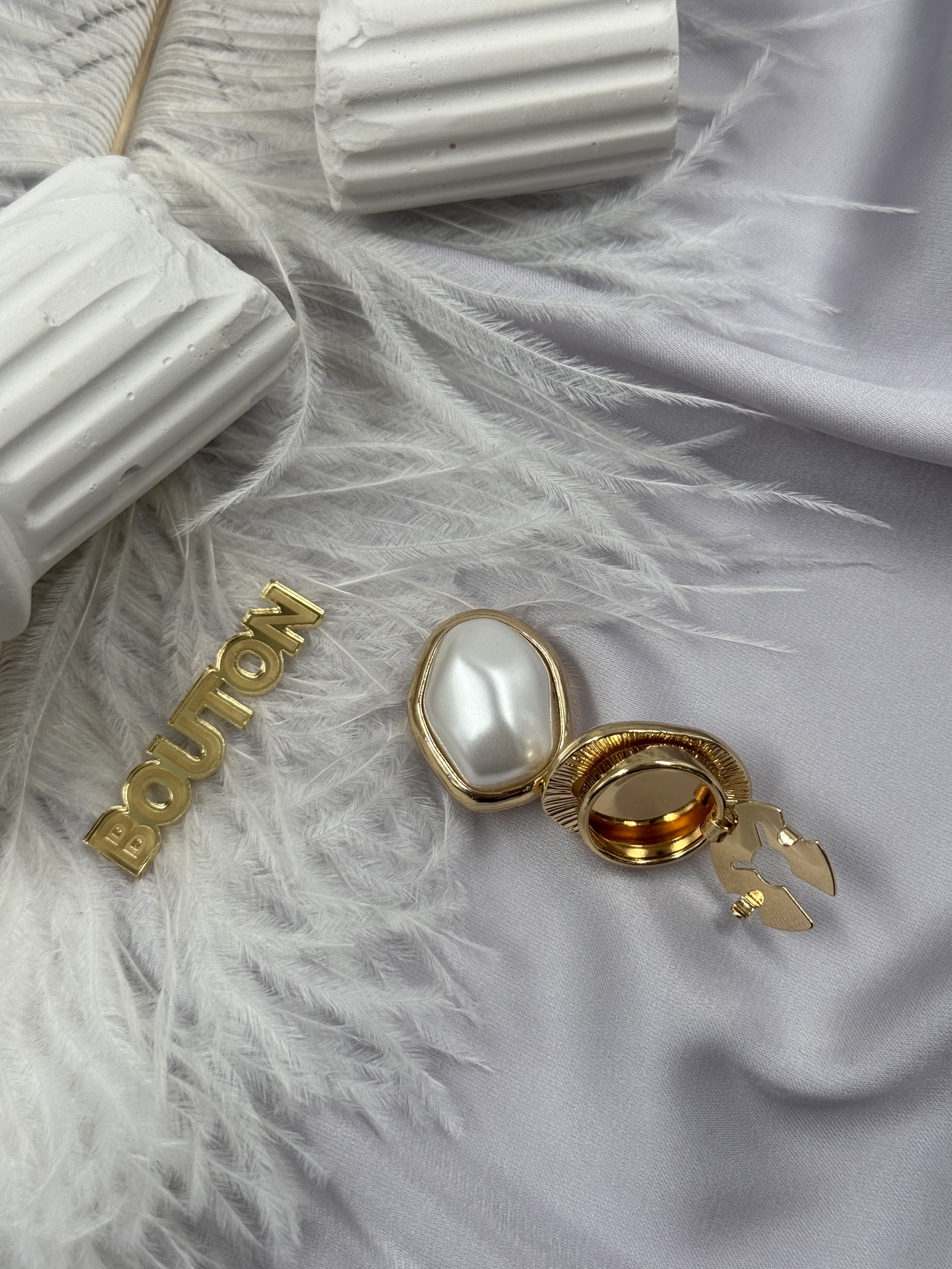 Накладка на пуговицу золотистая с жемчугом неровной формы