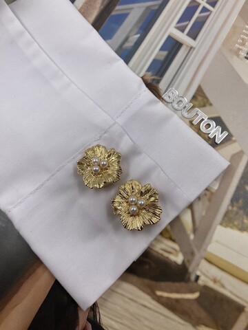 Милая и аккуратная накладка из золотистого металла с жемчугом
