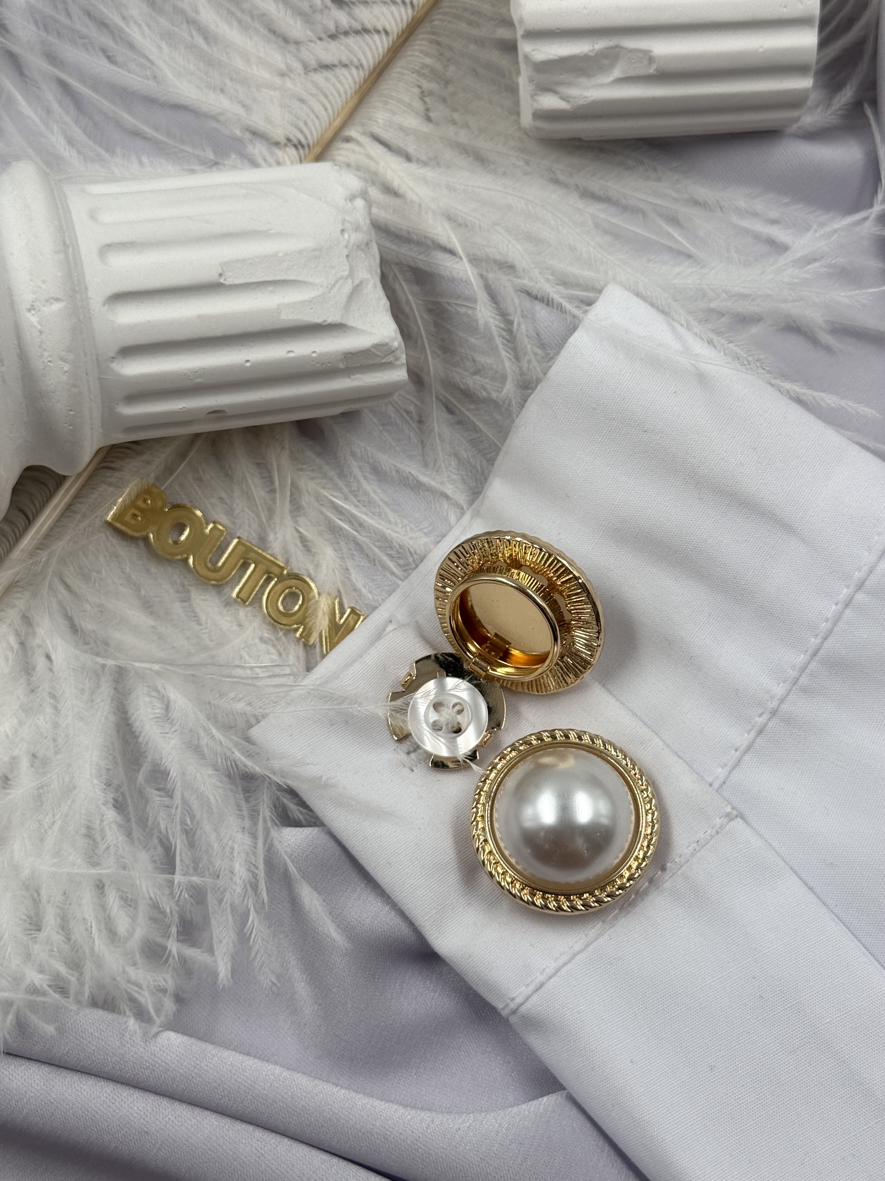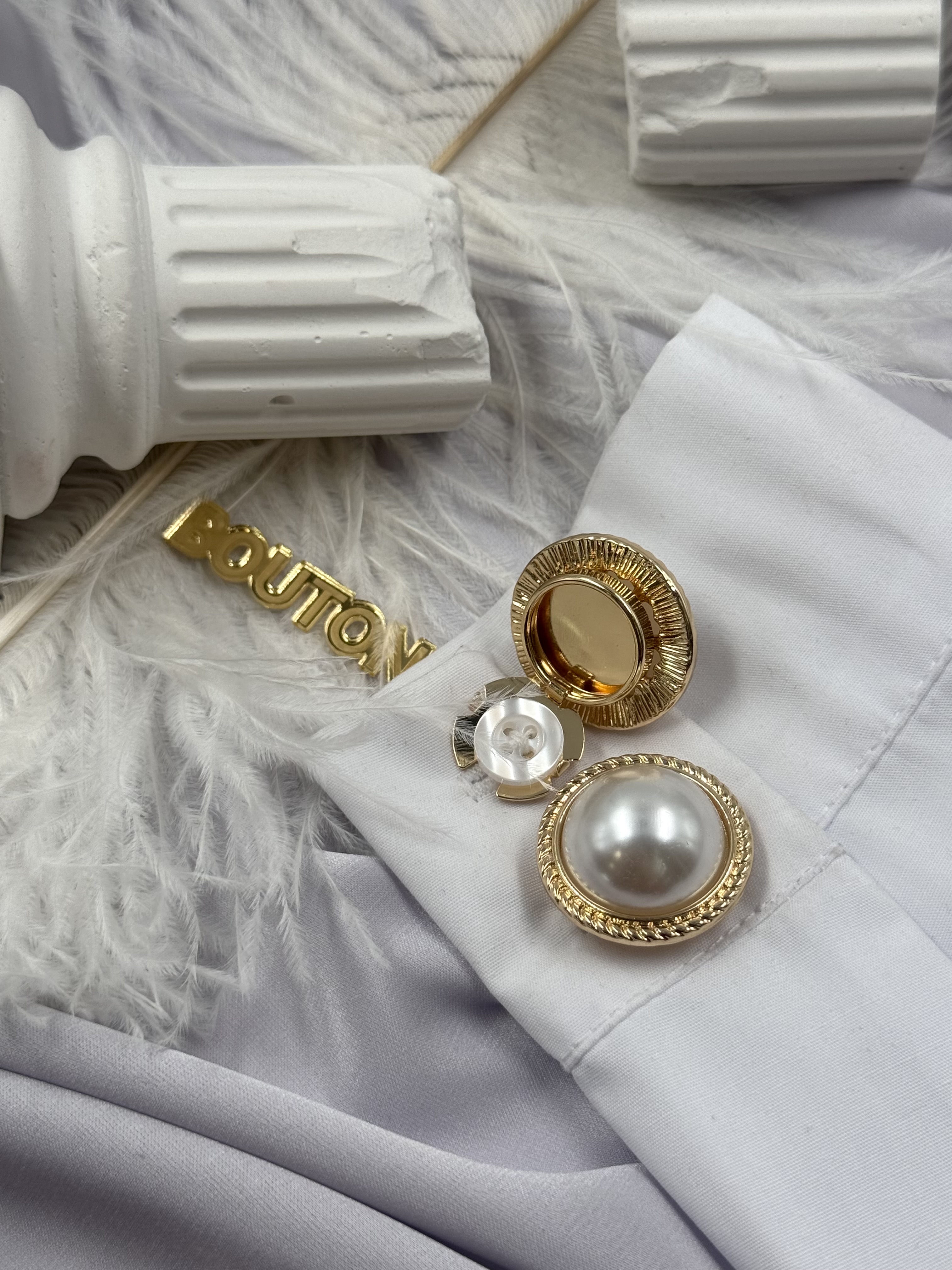 Накладки на пуговицы золотистые с жемчугом (клипсы)