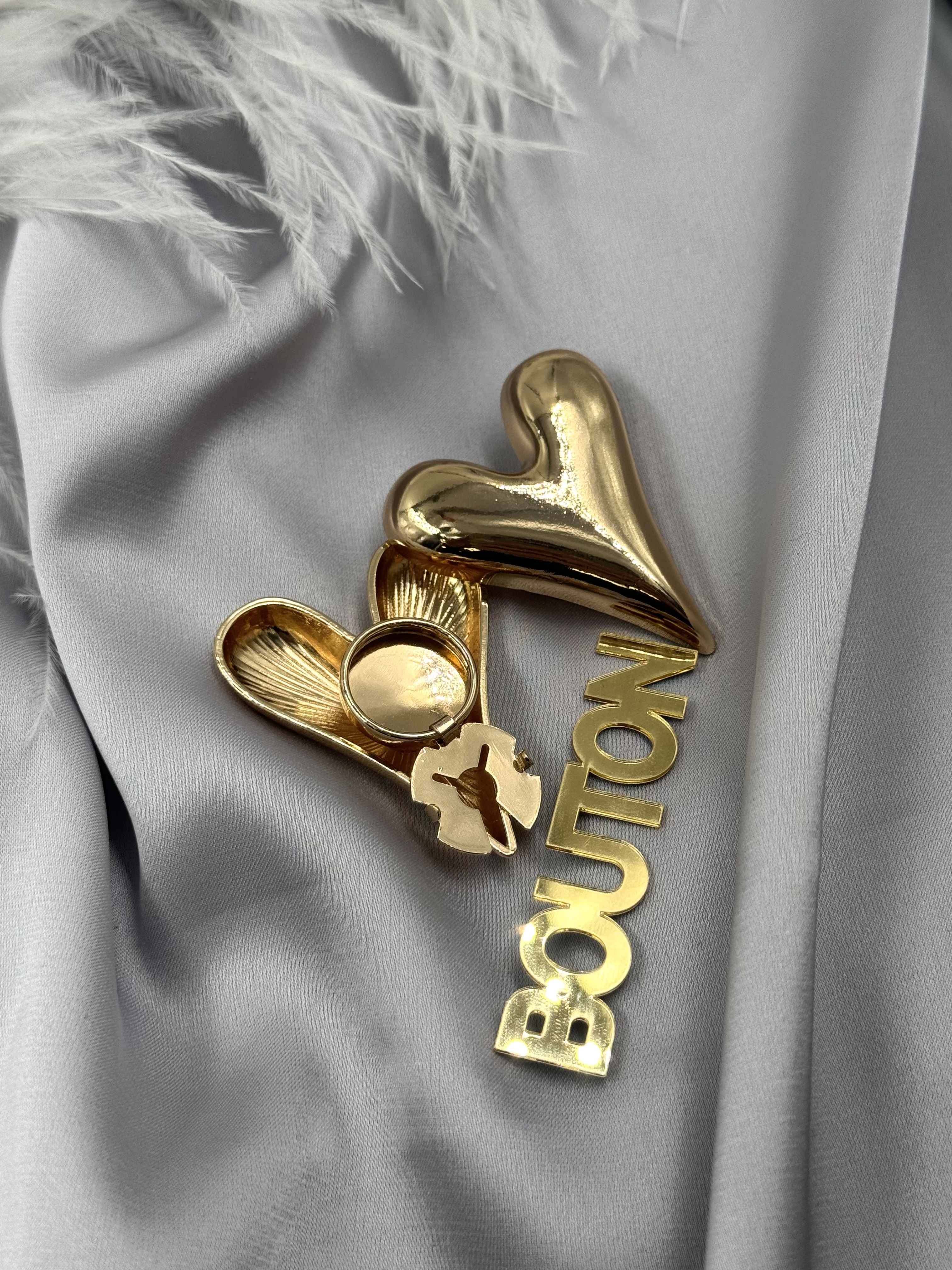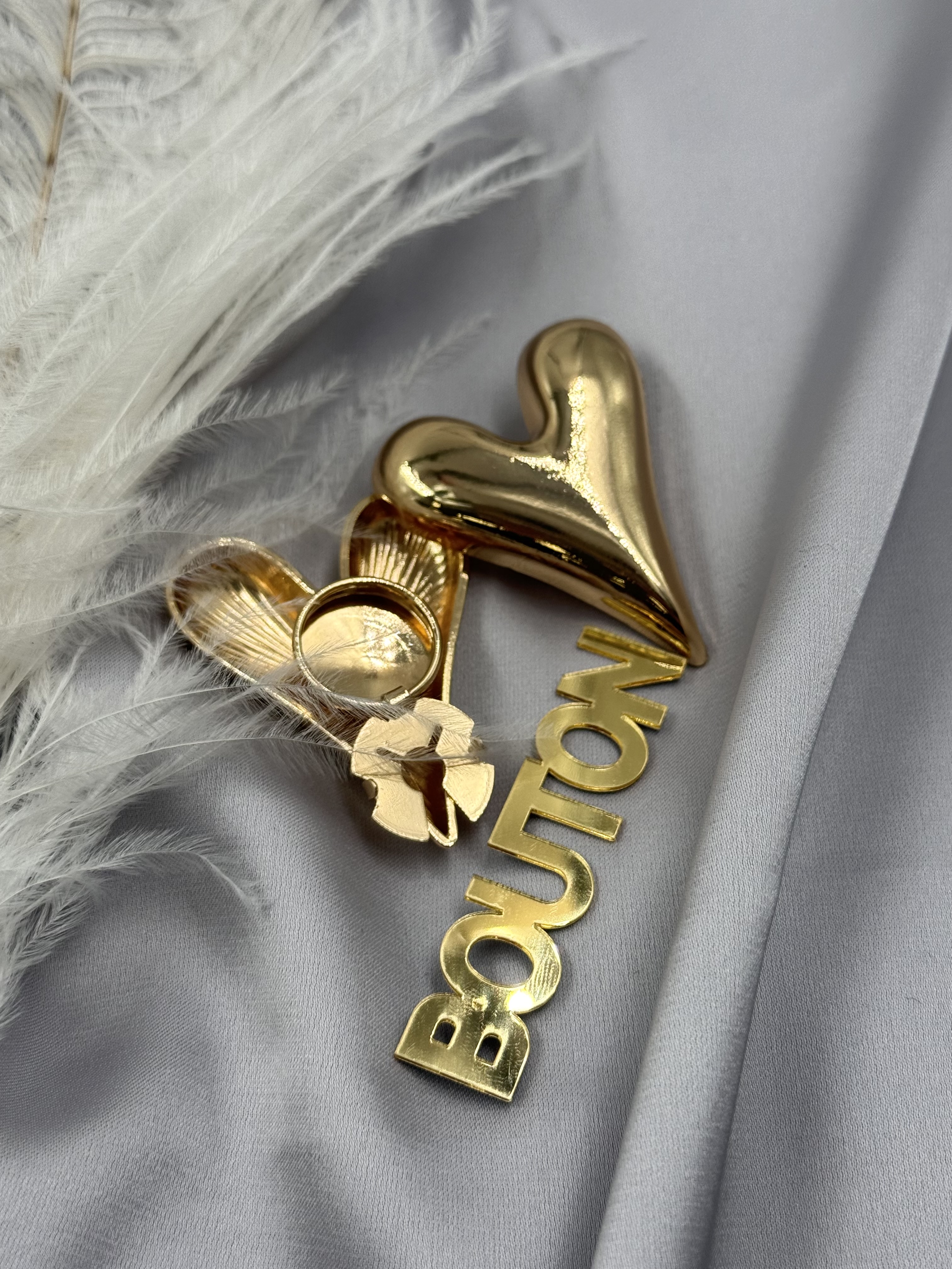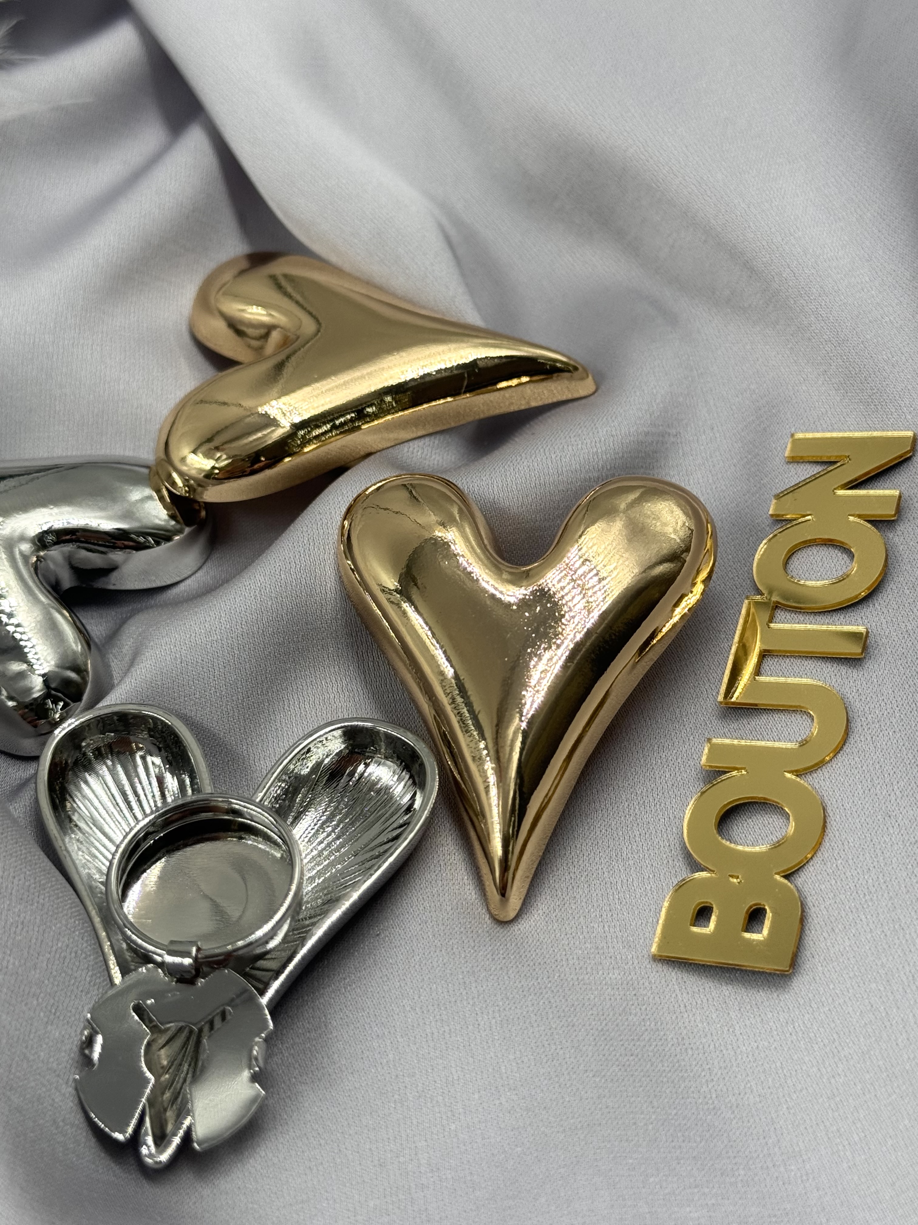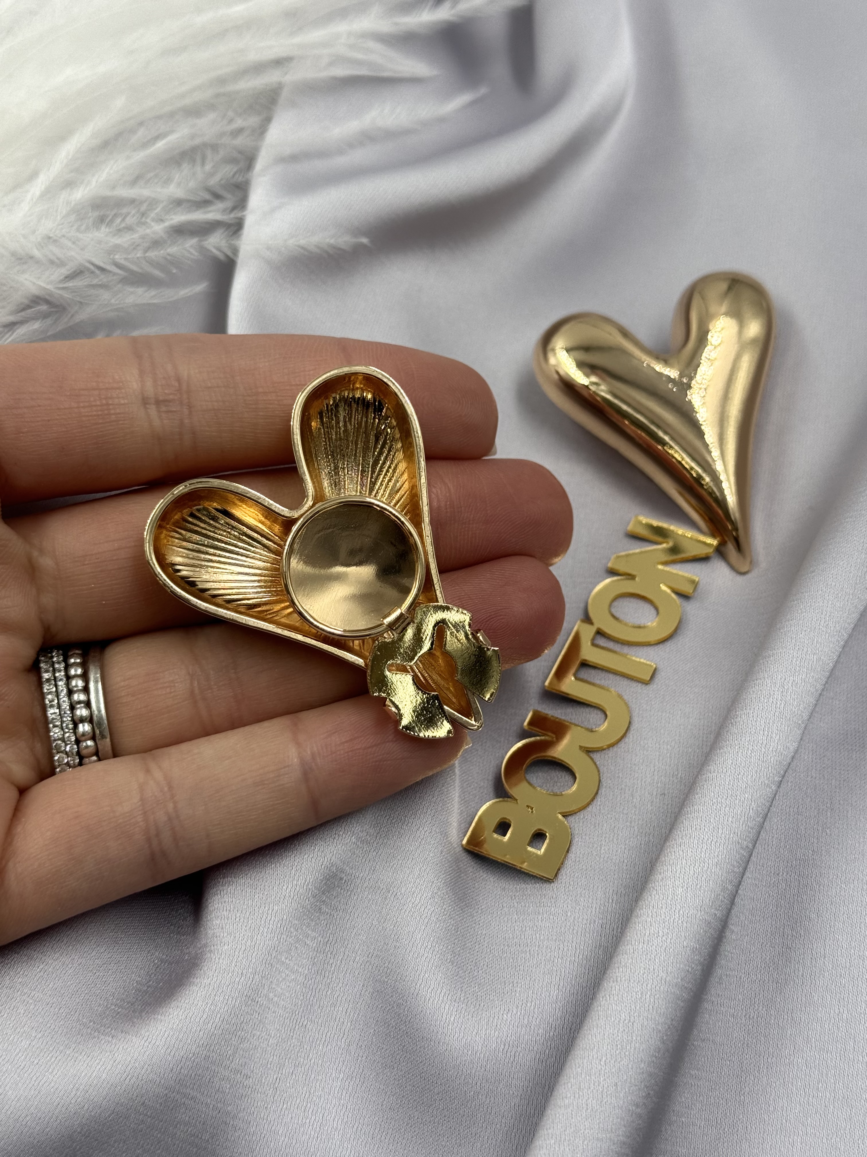 Накладка на пуговицу золотистая в форме массивного сердца
