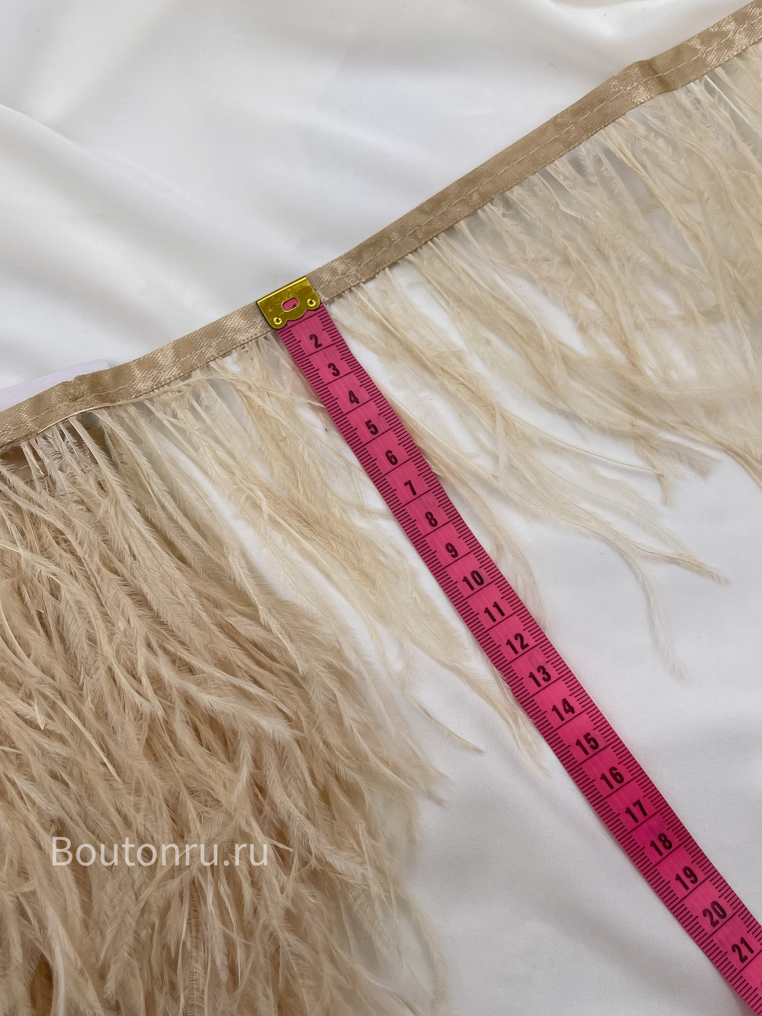 Перо страуса на ленте в интересном сливочно-бежевом цвете. Плотность перьев можно регулировать разным количеством слоев, в зависимости от нужного Вам эффекта.