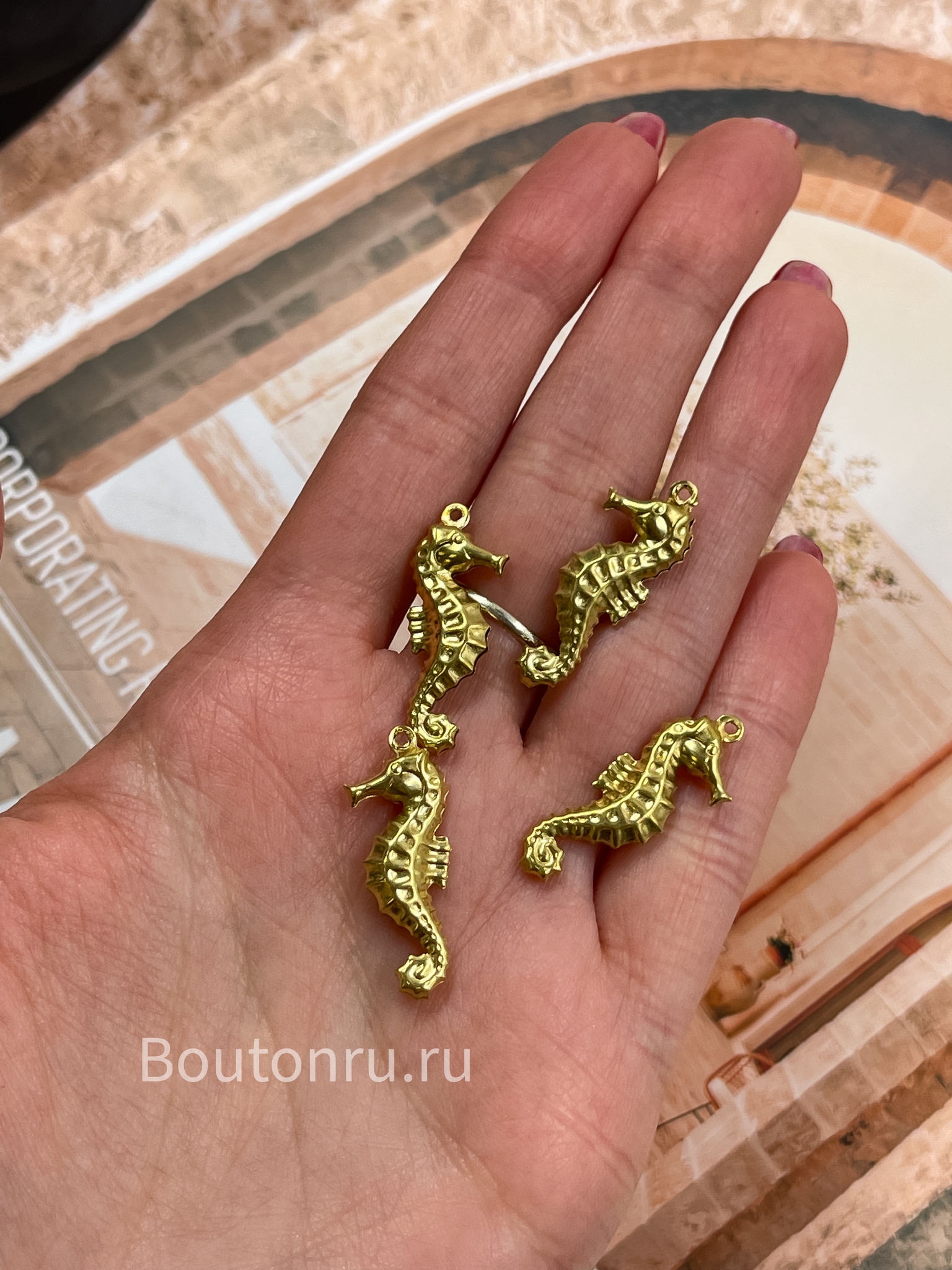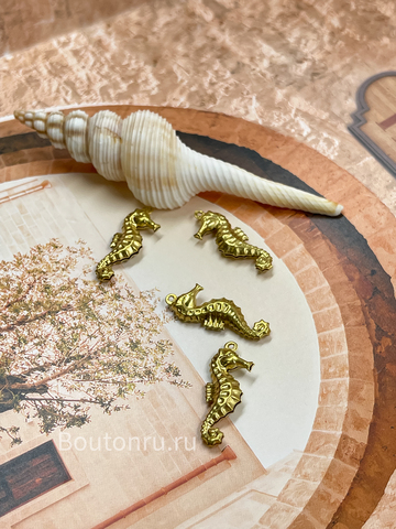 Подвеска в форме морского конька в духе известного бренда. Подвеска выполнена из золотистого металла.