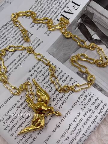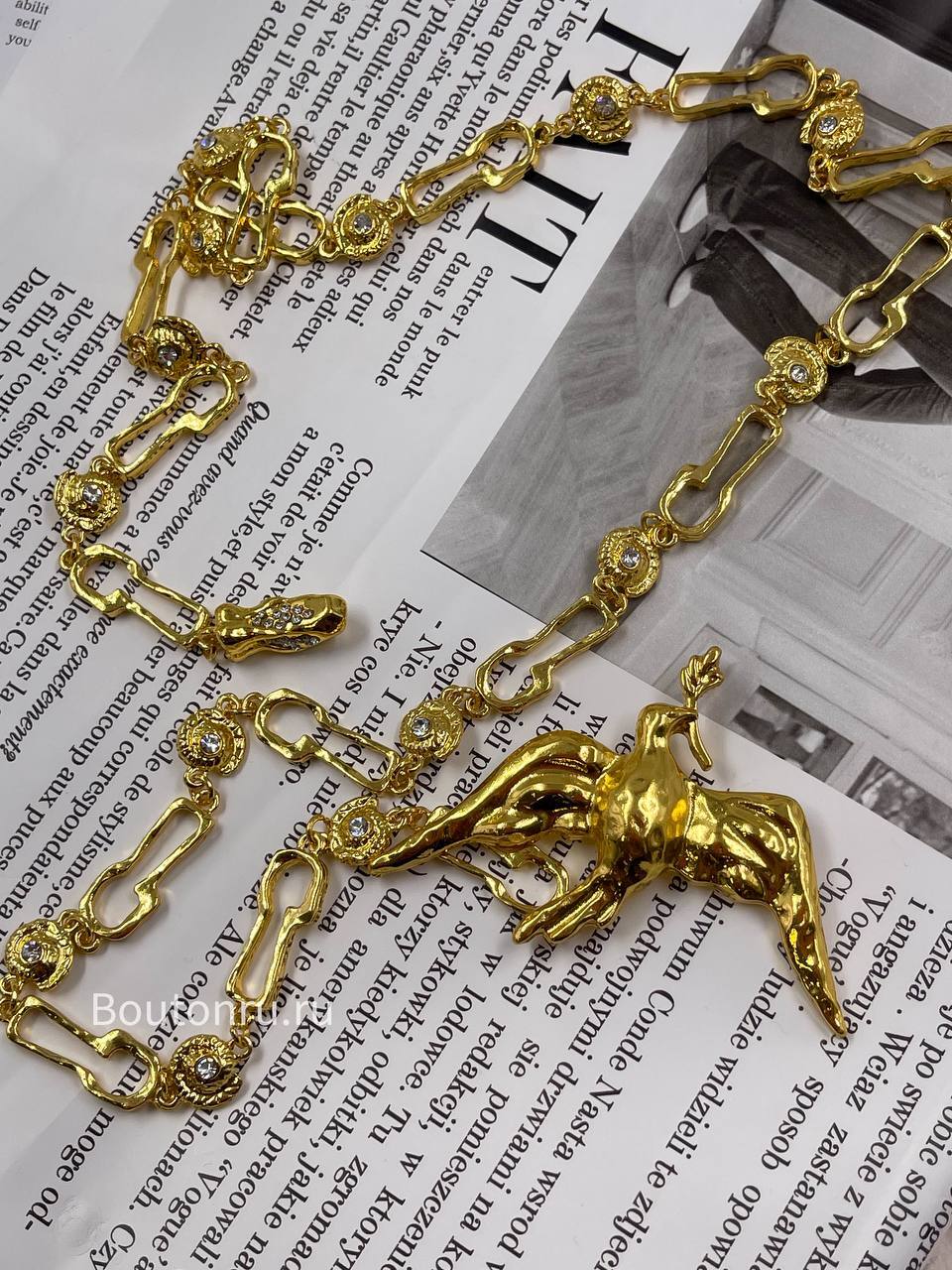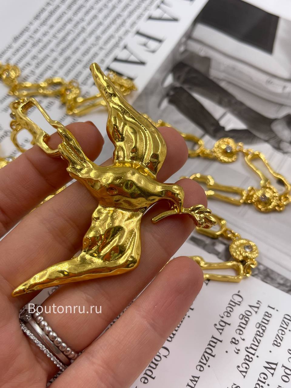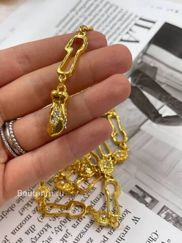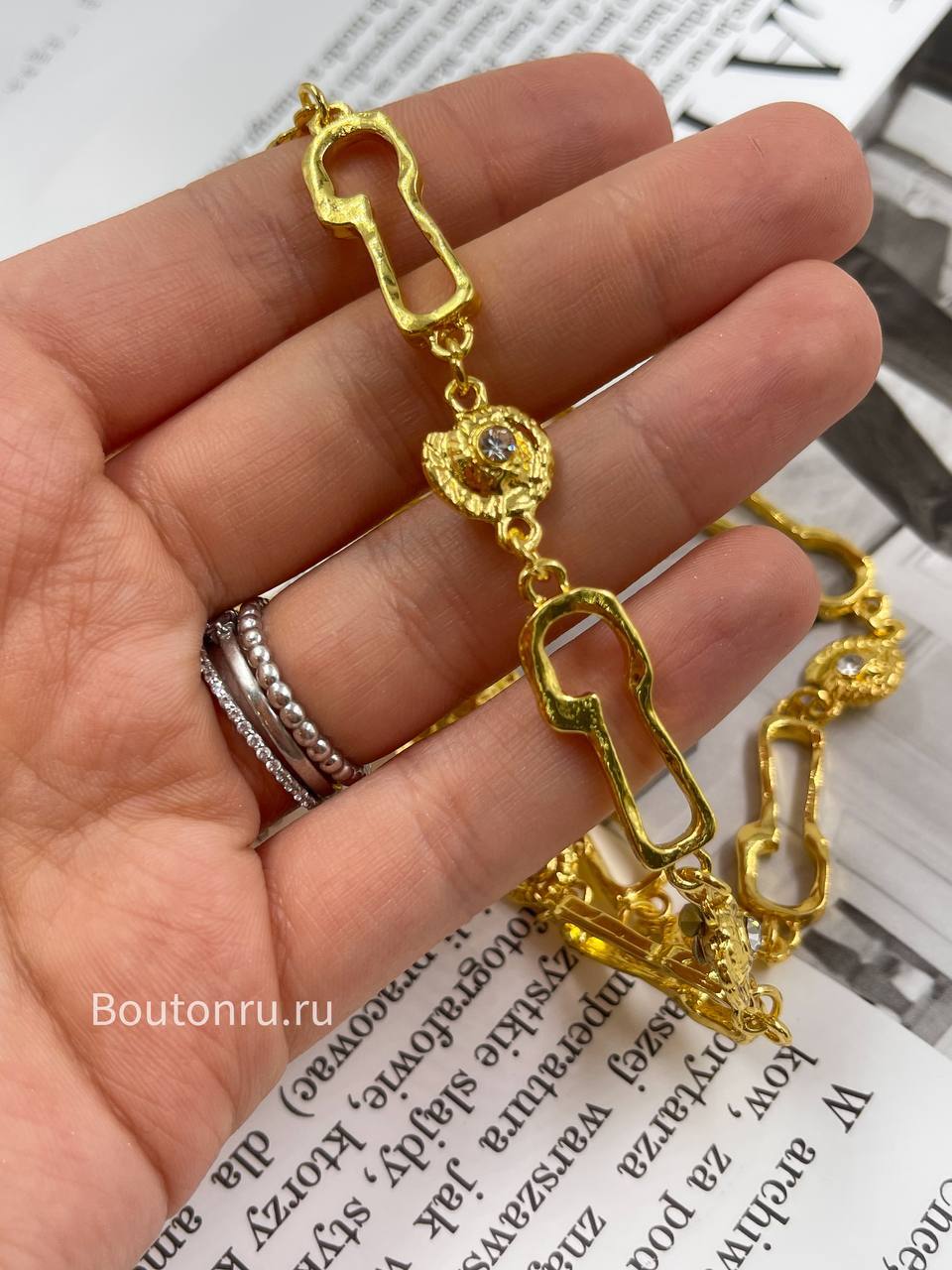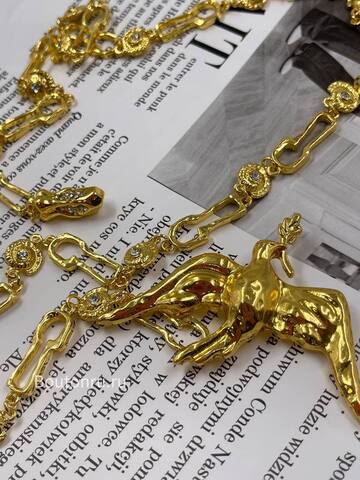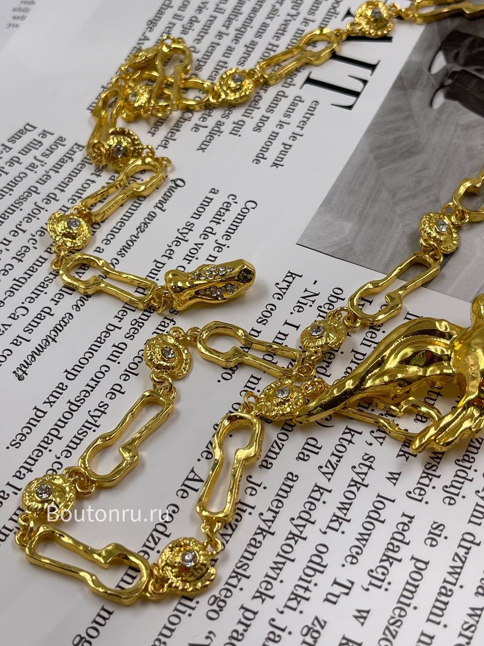 Пояс в стиле известного бренда золотистый с Птицей и звеньями в форме замочных скважин