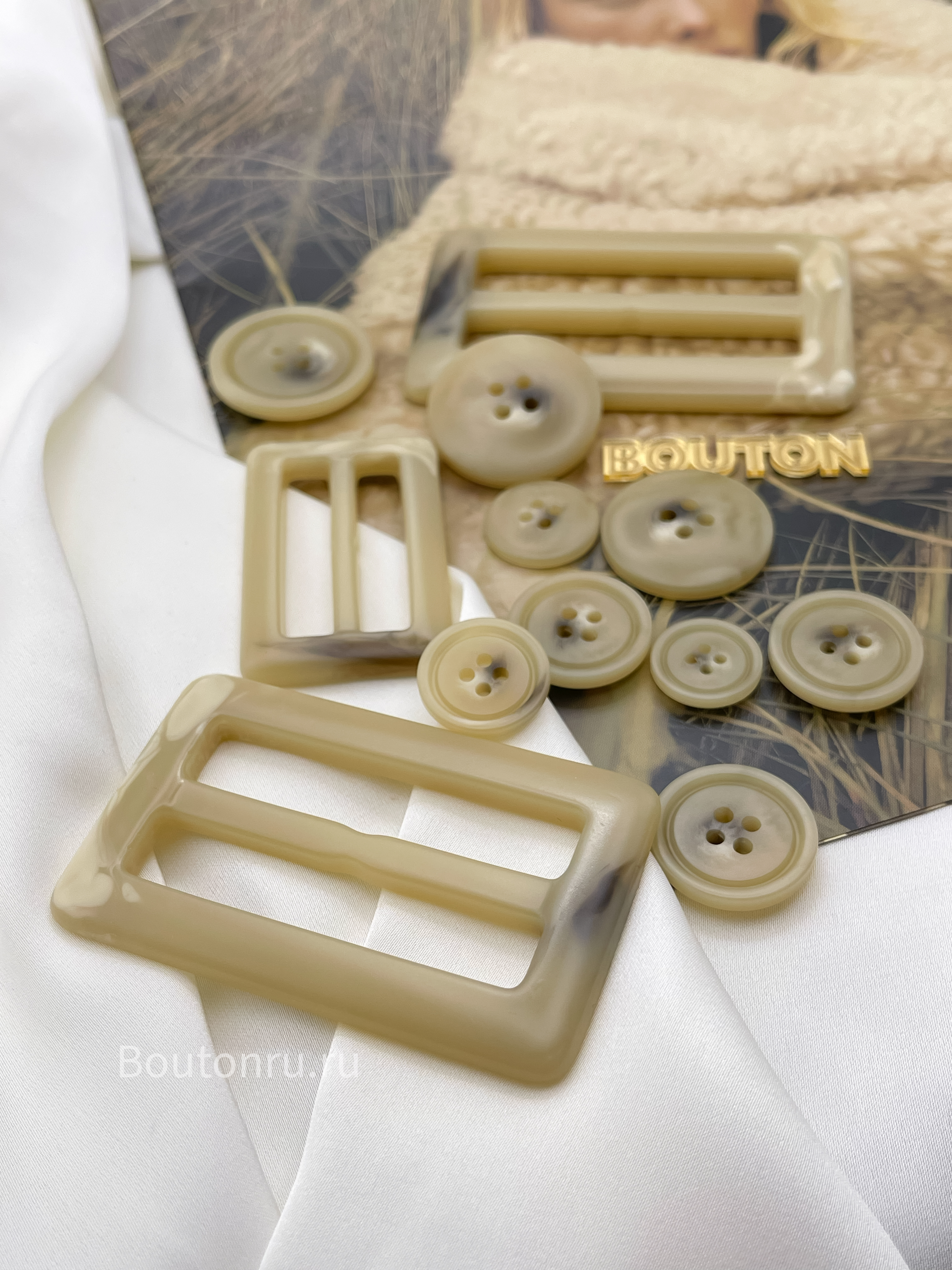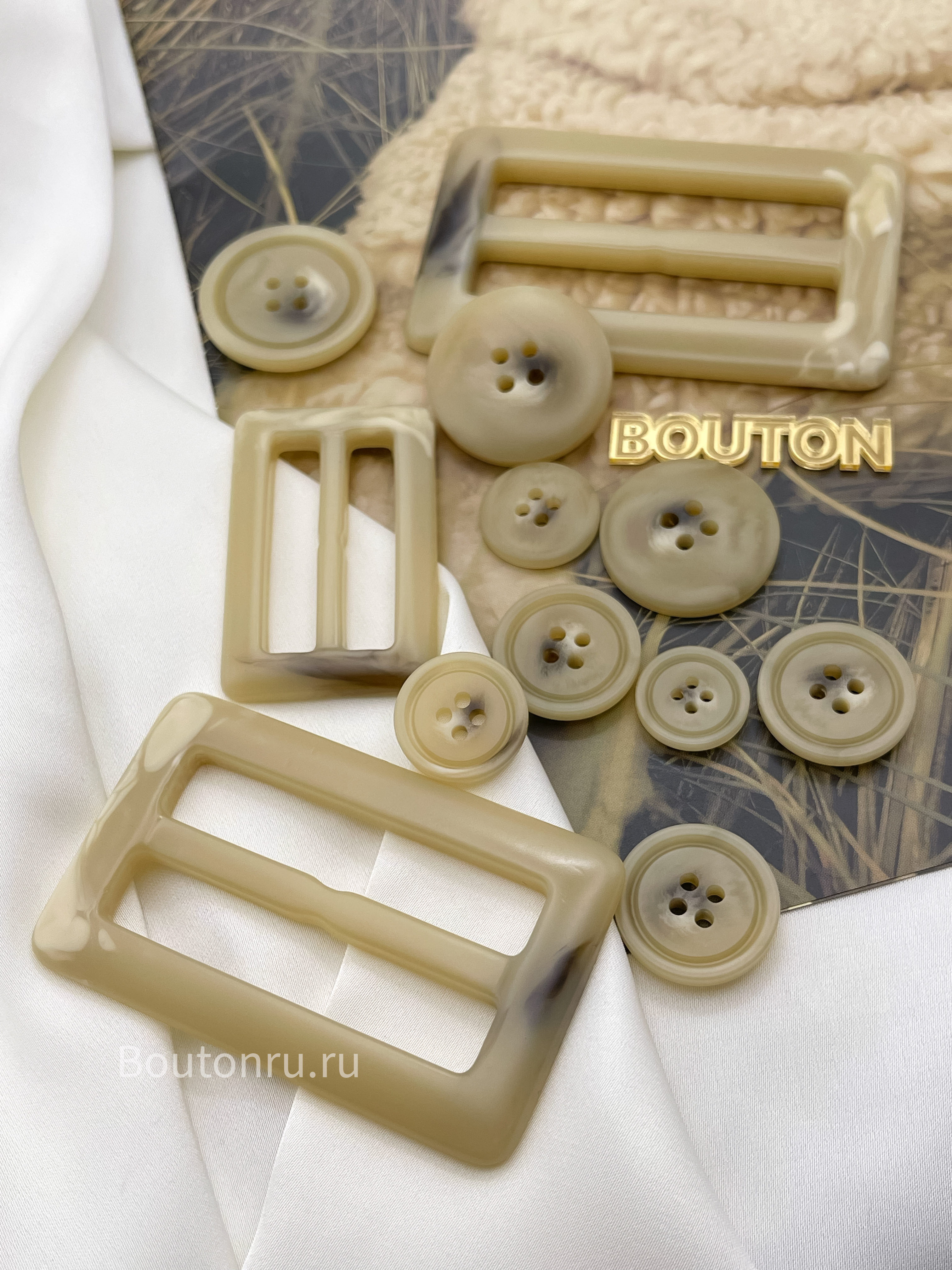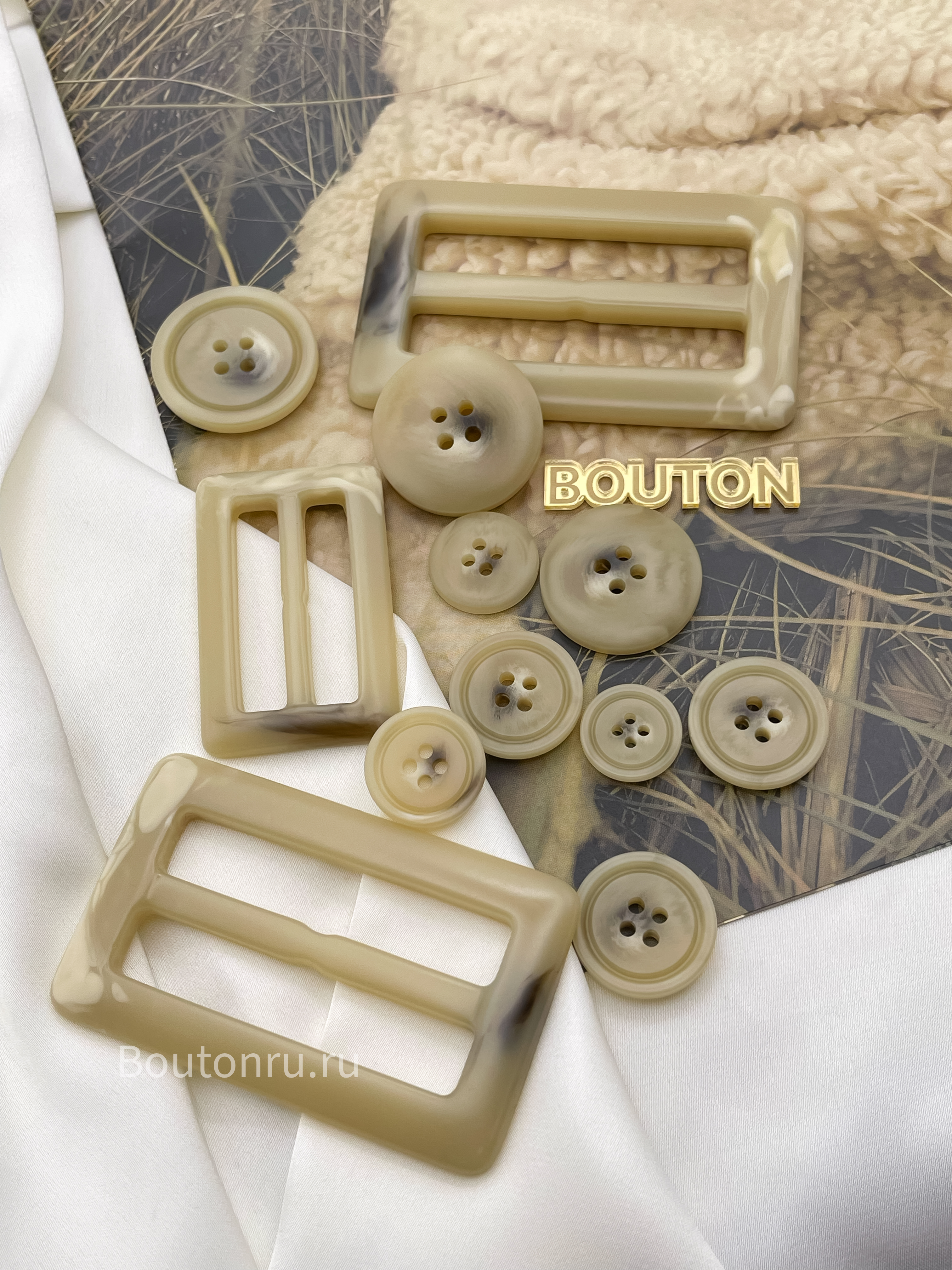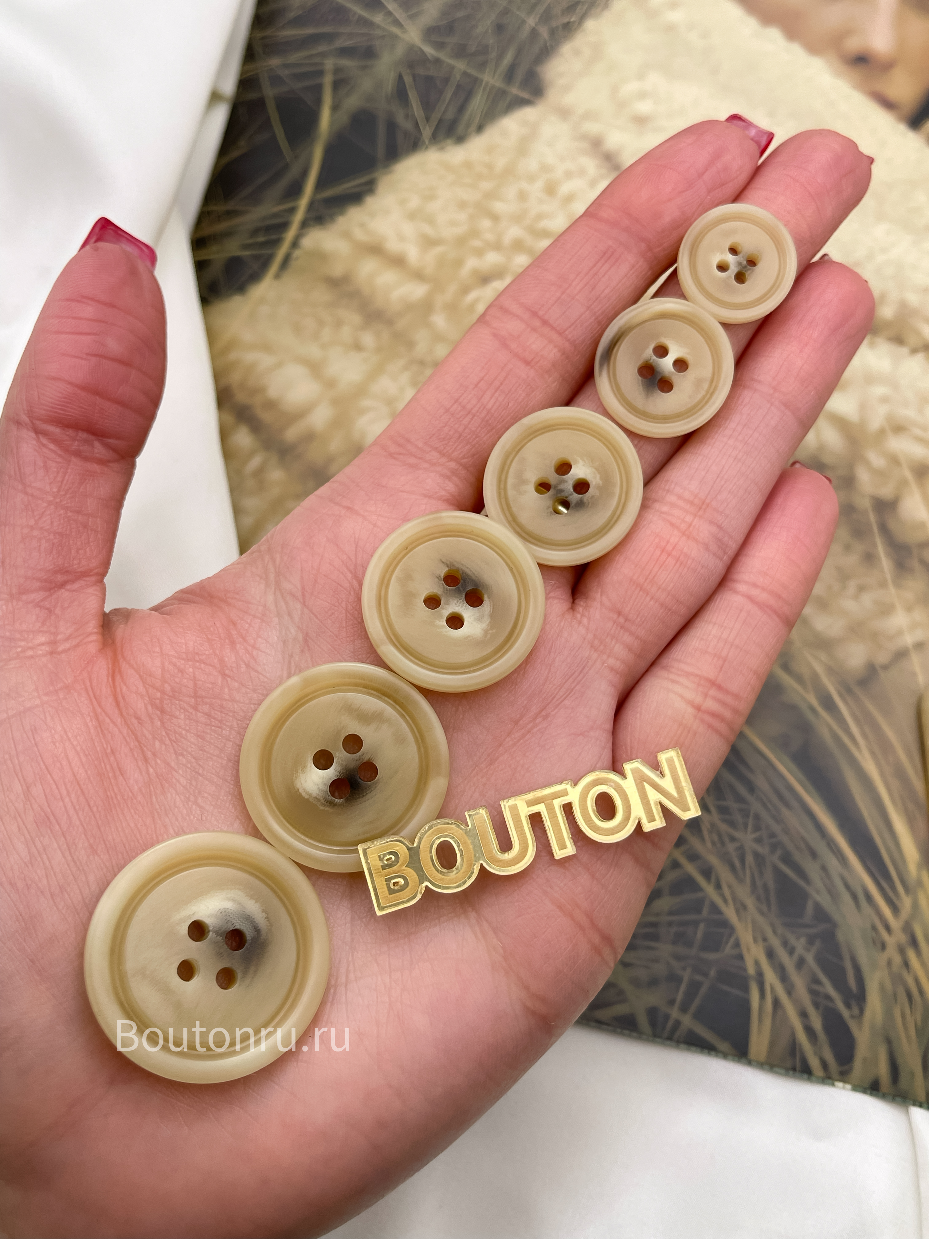 Пуговицы бежевые с прожилками под "Рог"