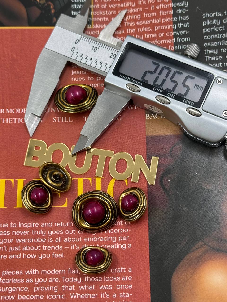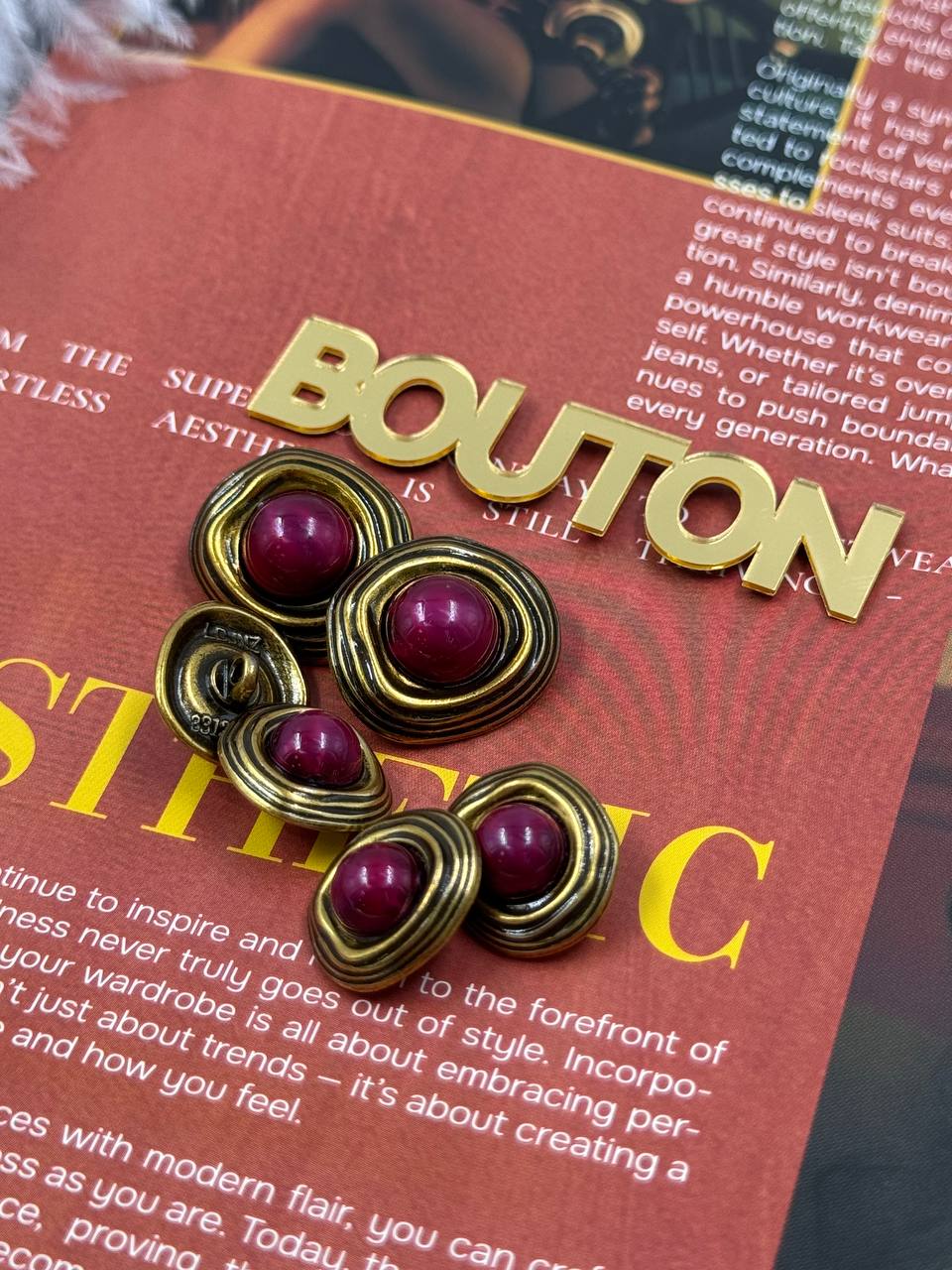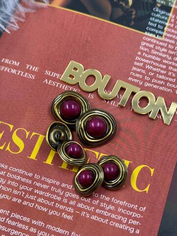 Пуговицы бронзовые неровной формы с розовым (красным) камнем
