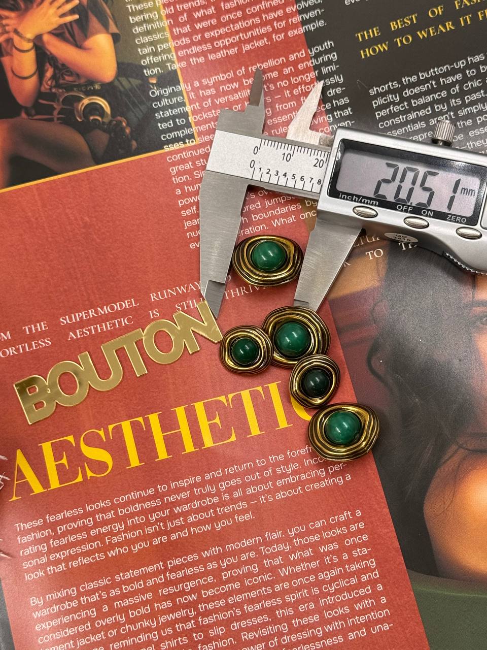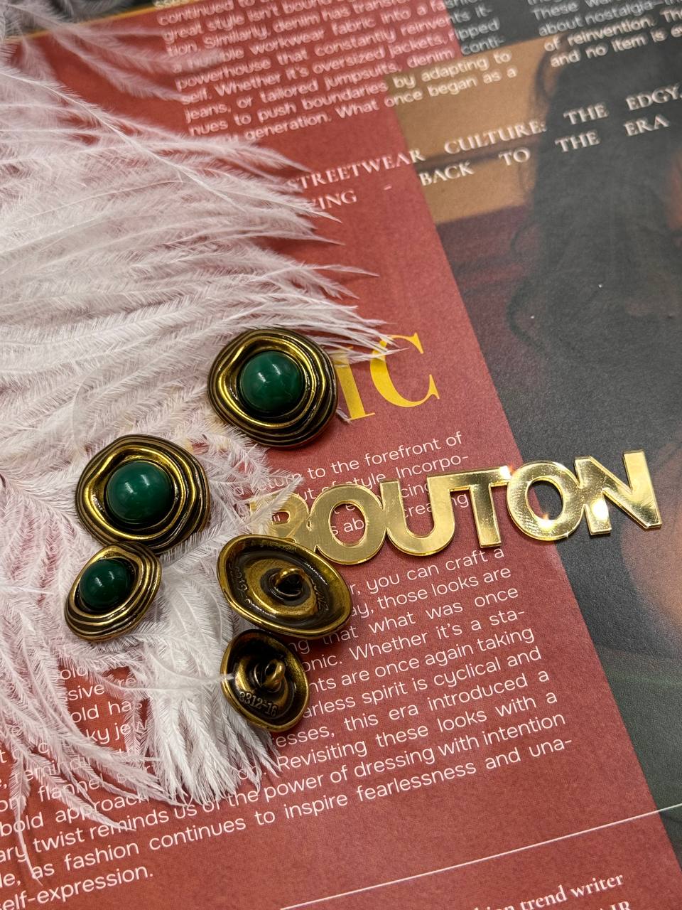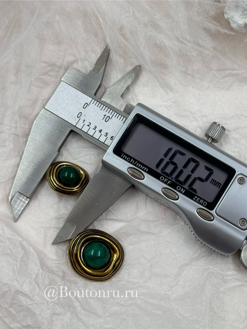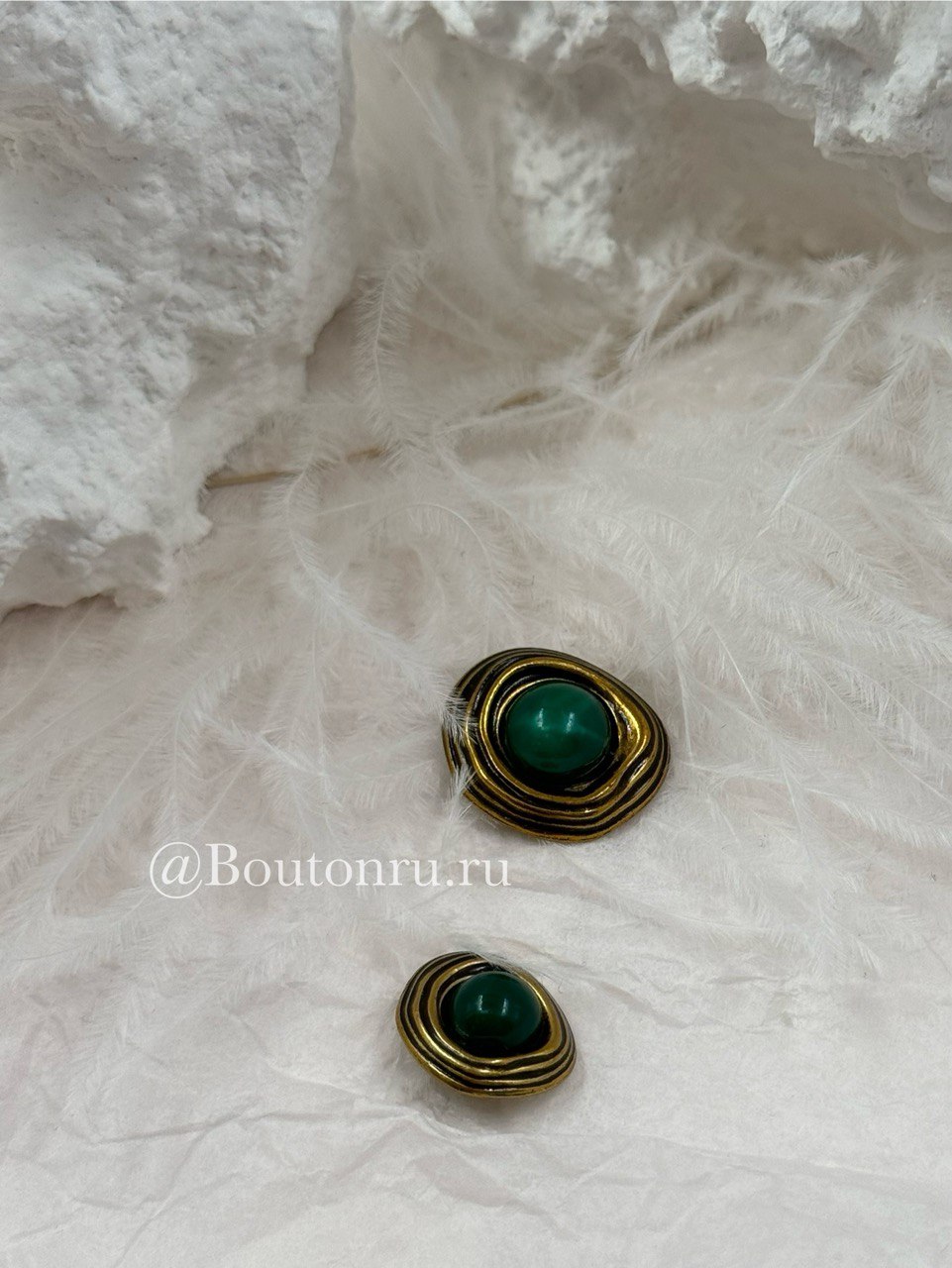 Пуговицы бронзовые неровной формы с зеленым камнем