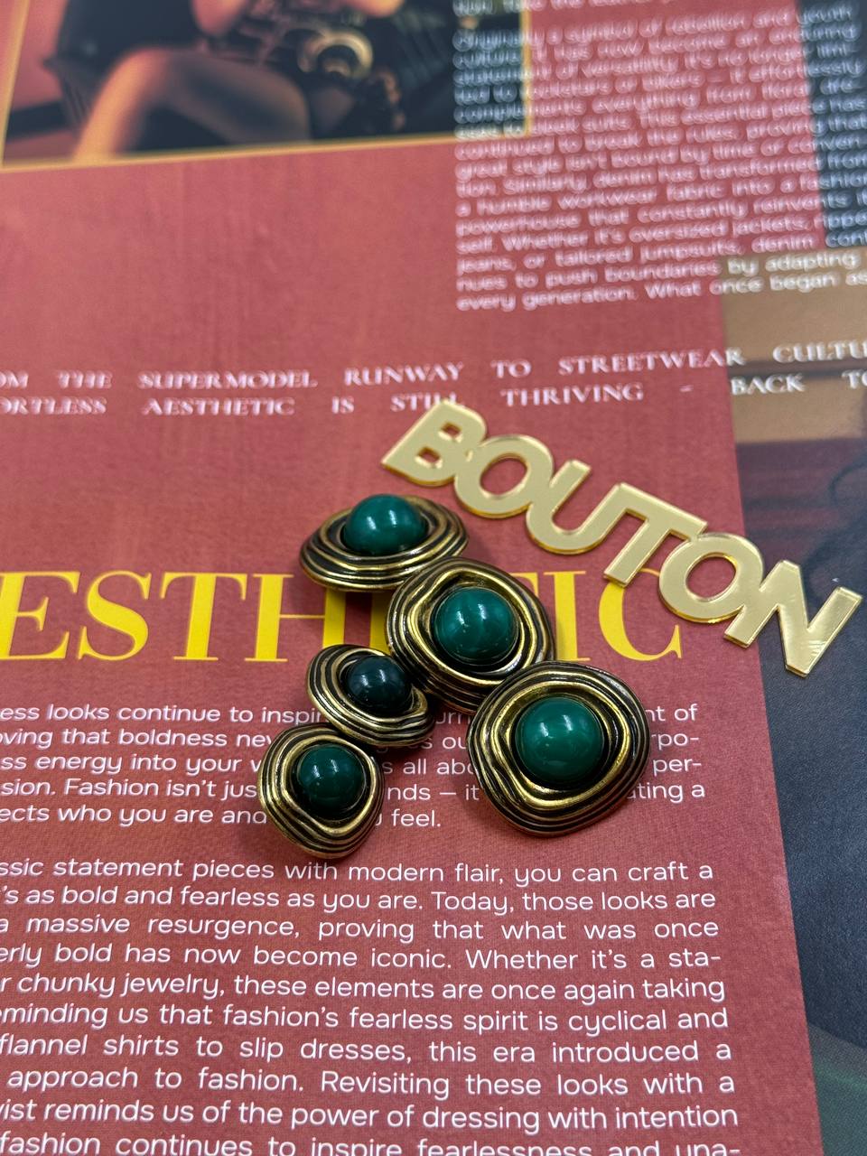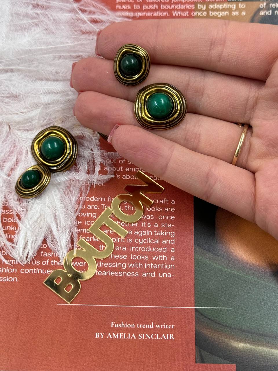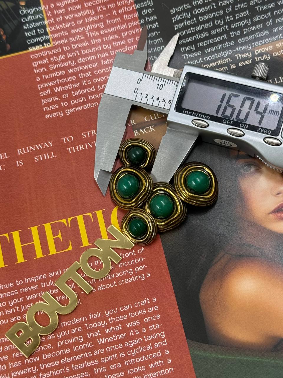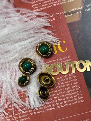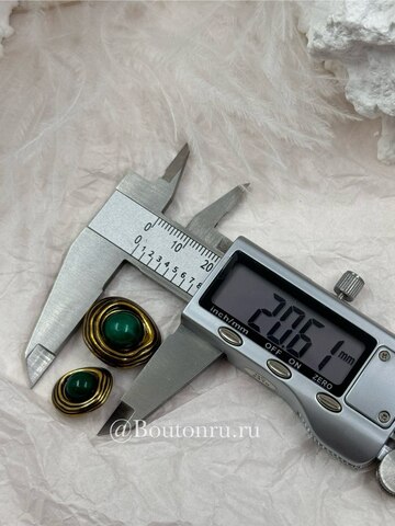 Пуговицы бронзовые неровной формы с зеленым камнем