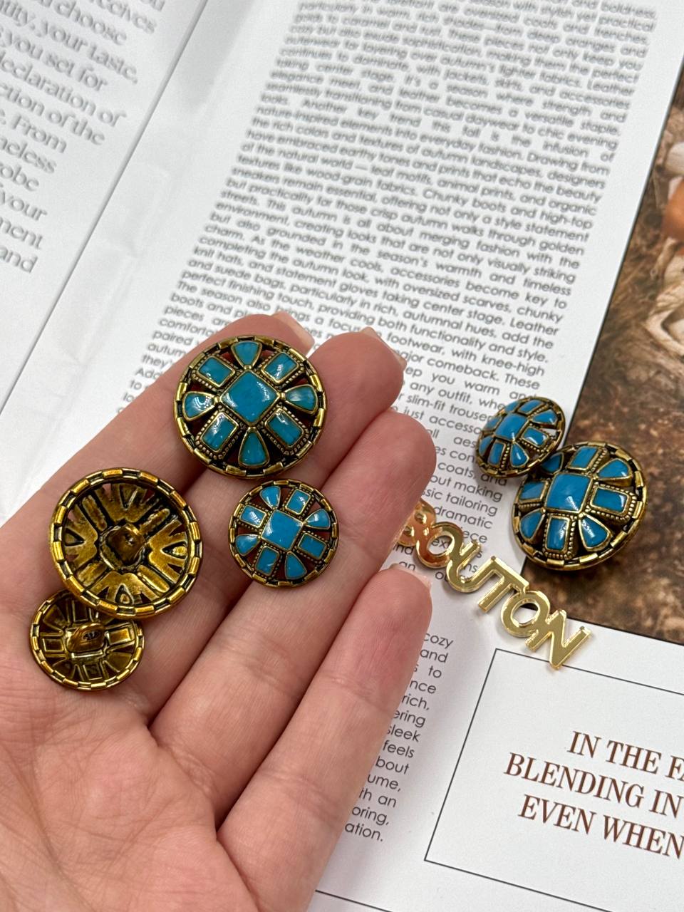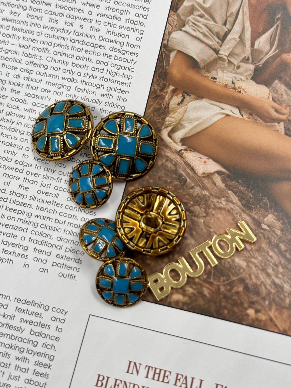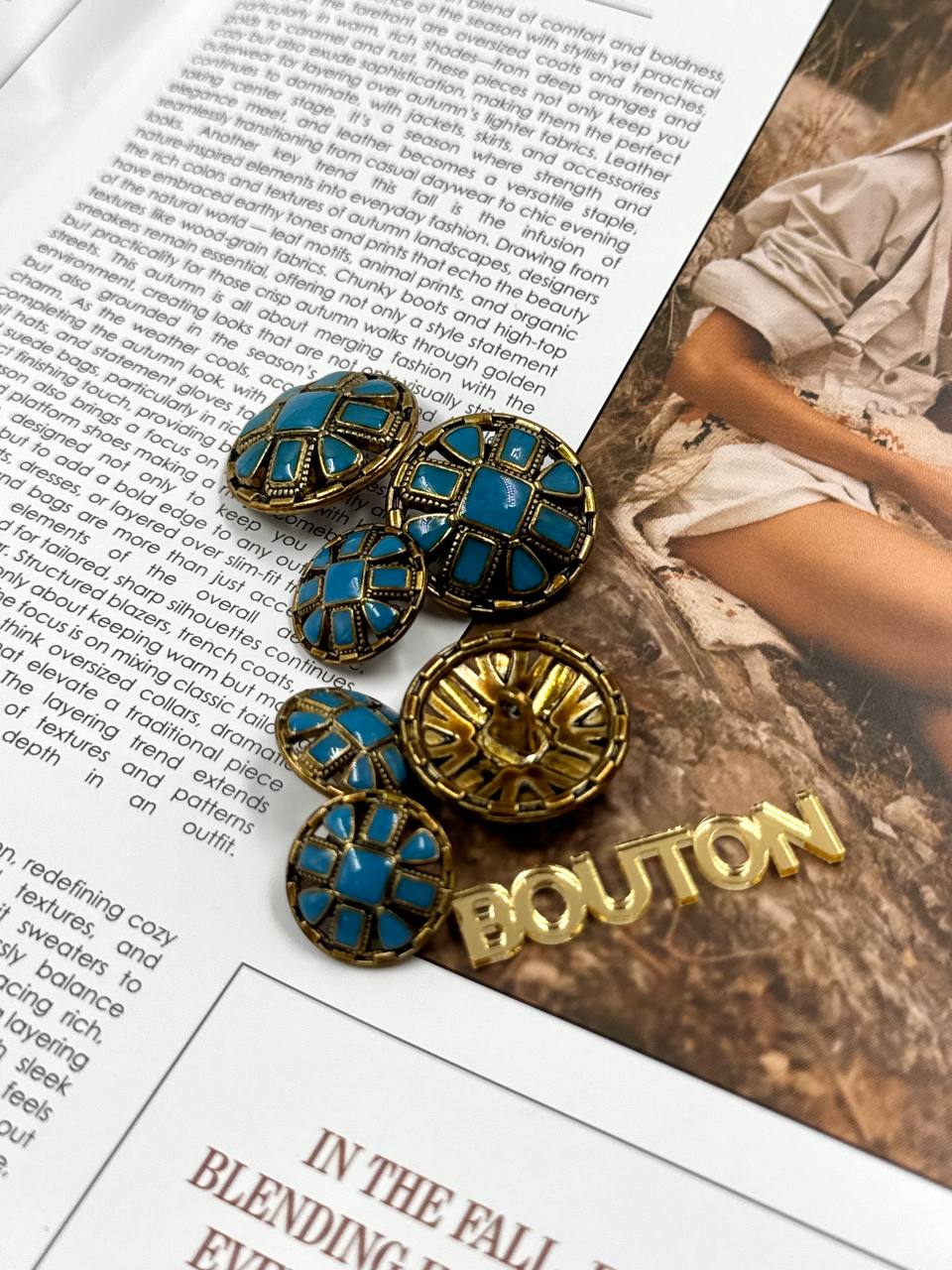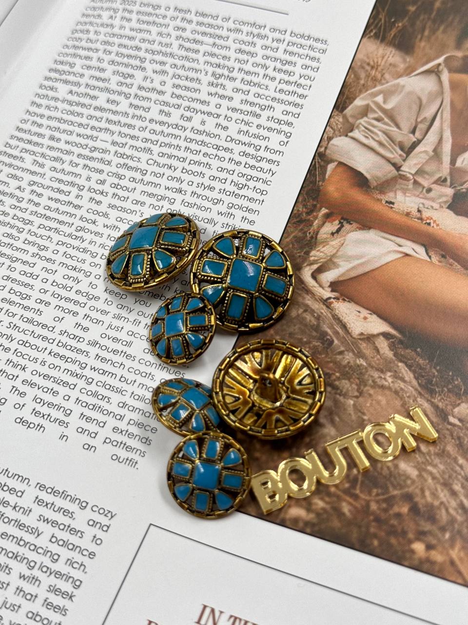 Пуговицы бронзовый металл с голубой (синей) эмалью и квадратными деталями