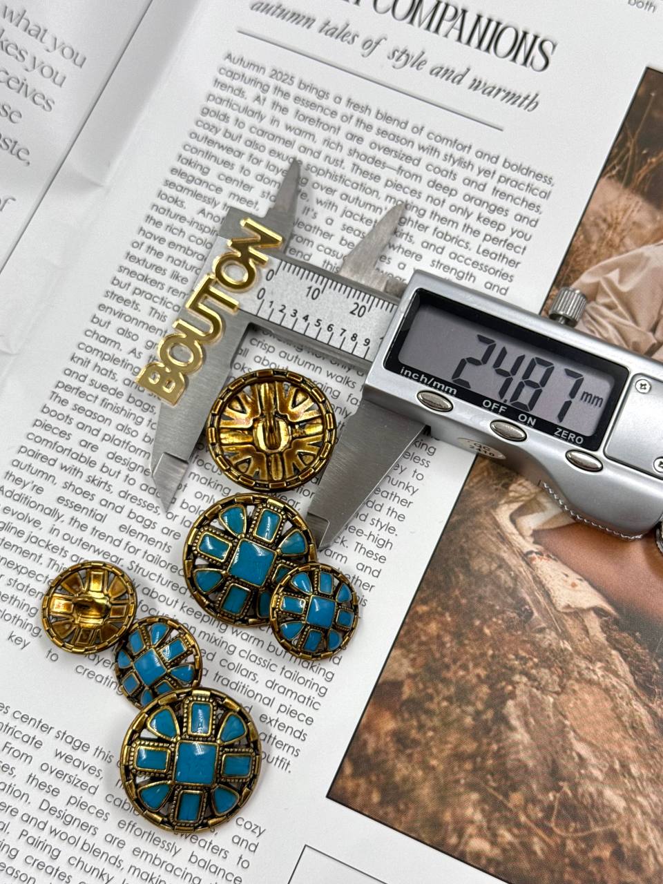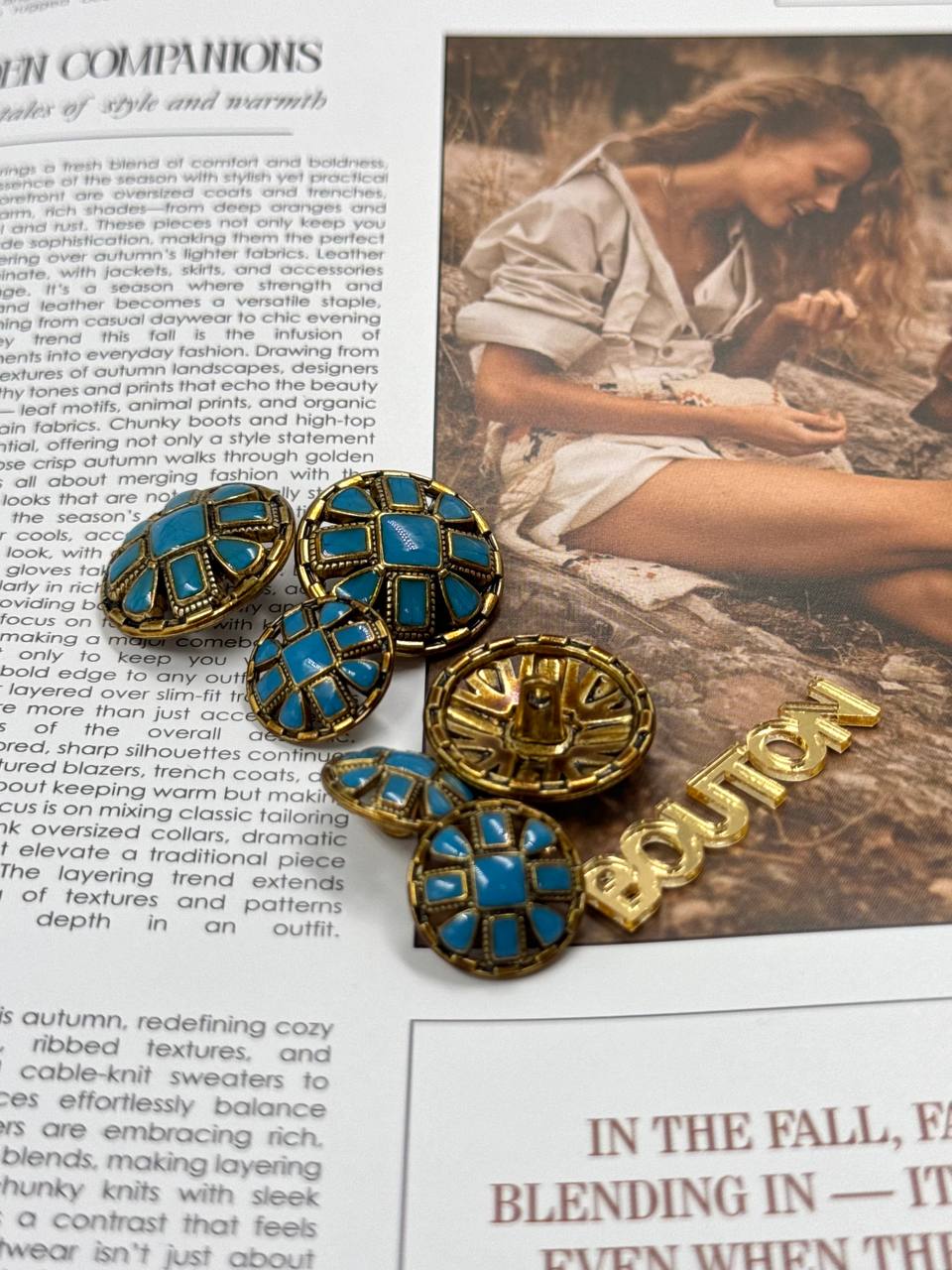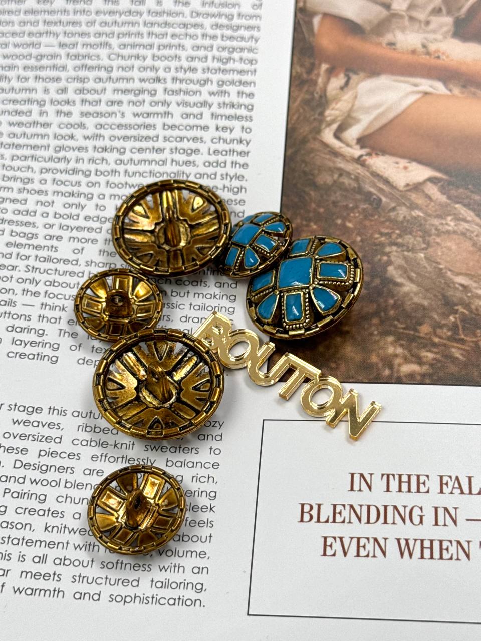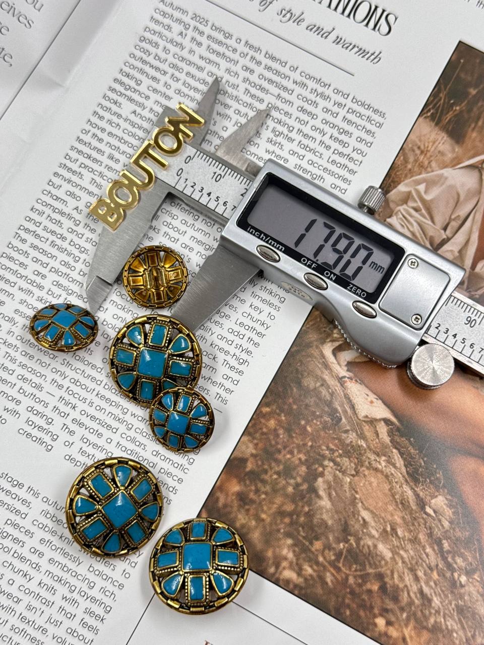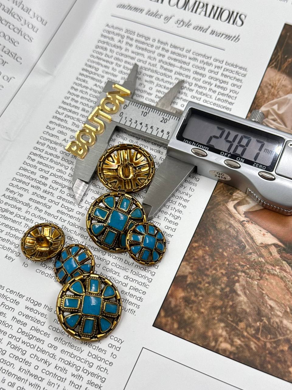 Пуговицы бронзовый металл с голубой (синей) эмалью и квадратными деталями