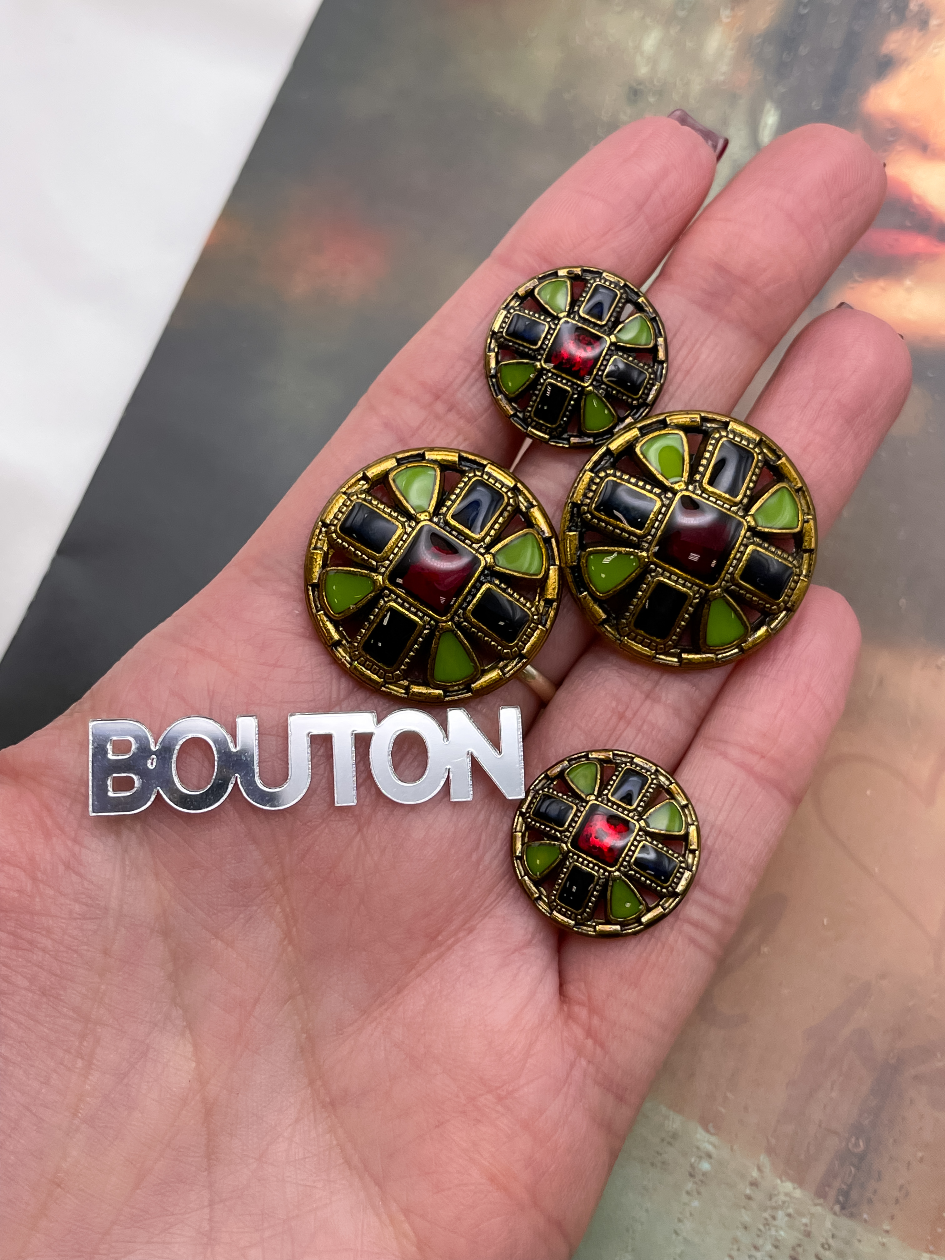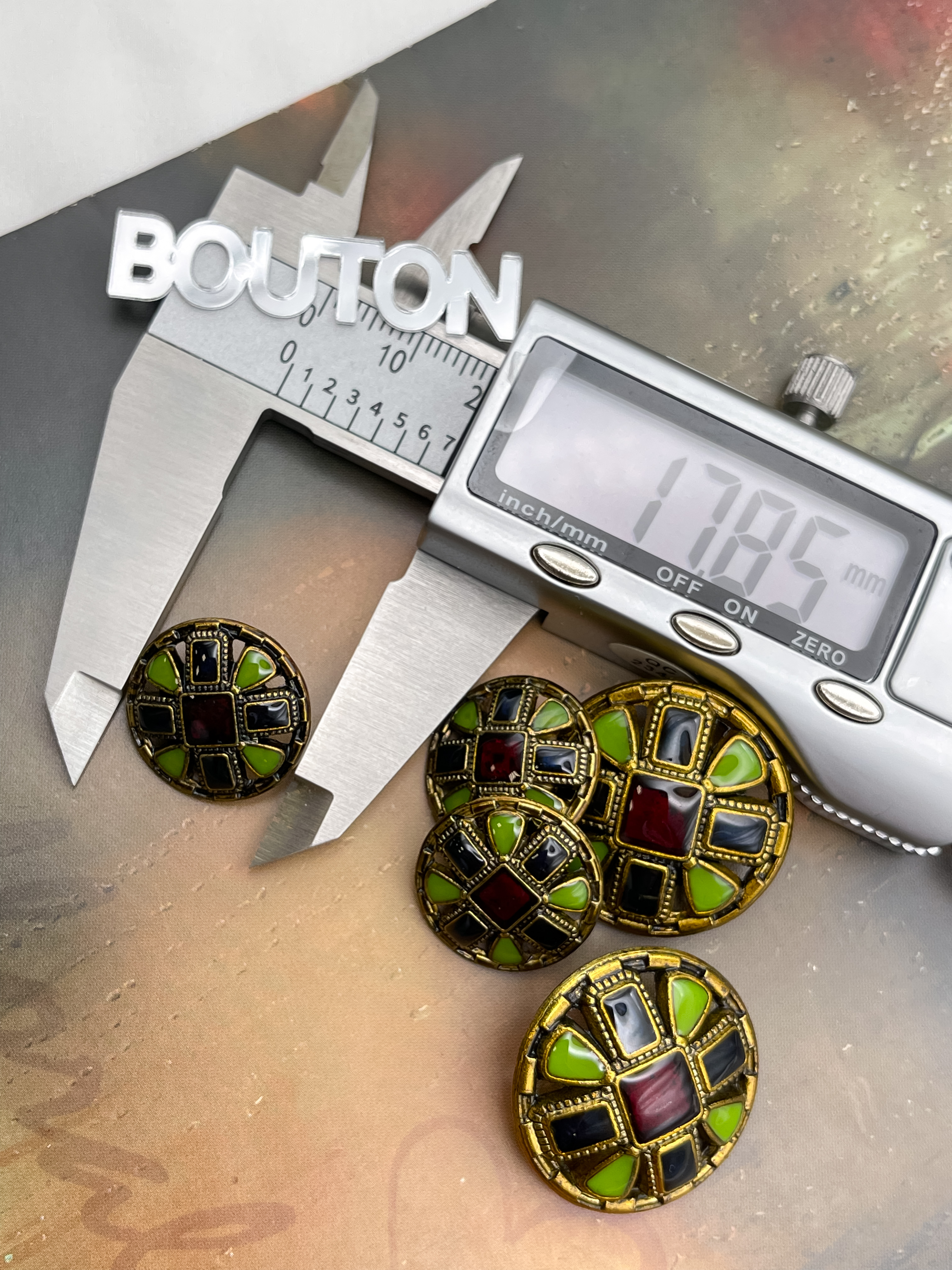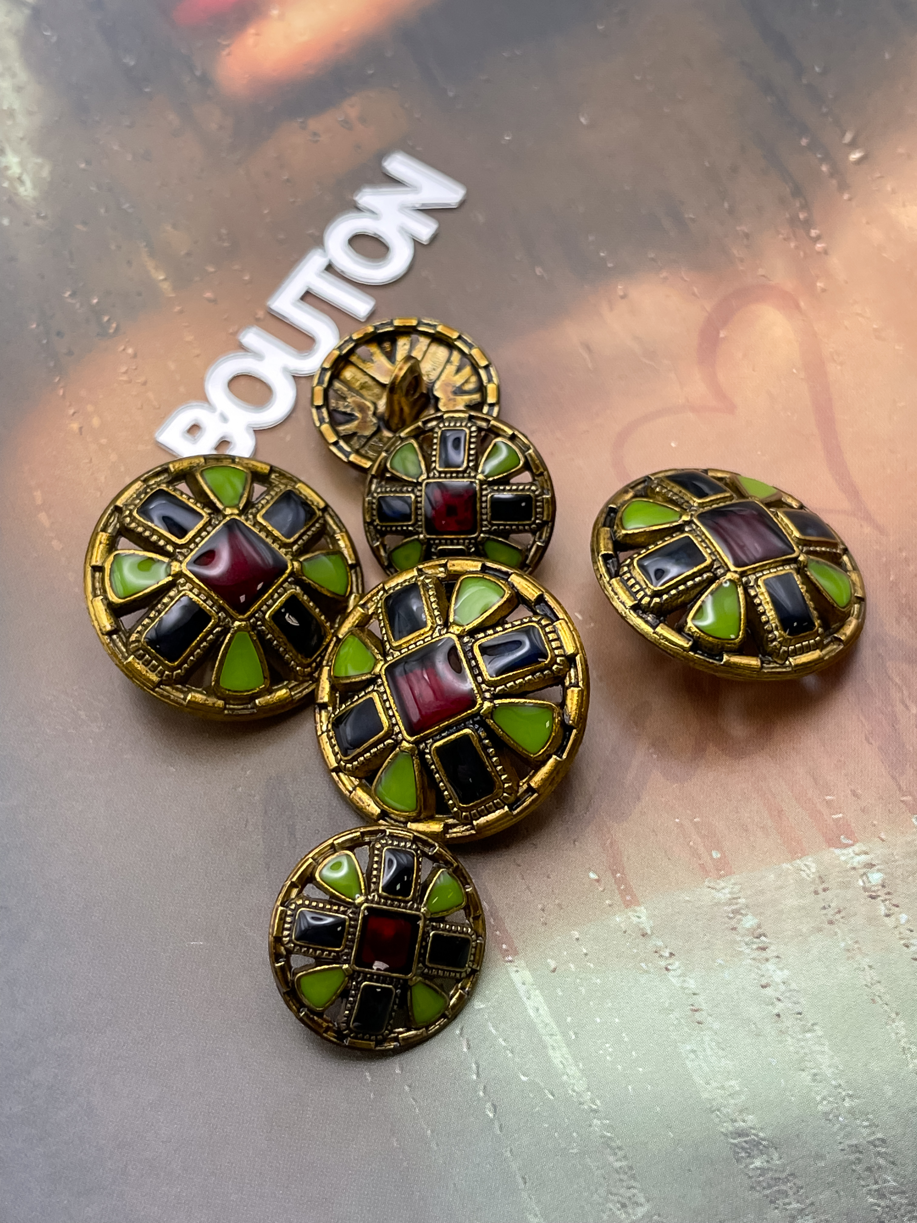 Пуговицы бронзовый металл с красной и зеленой эмалью и квадратными деталями
