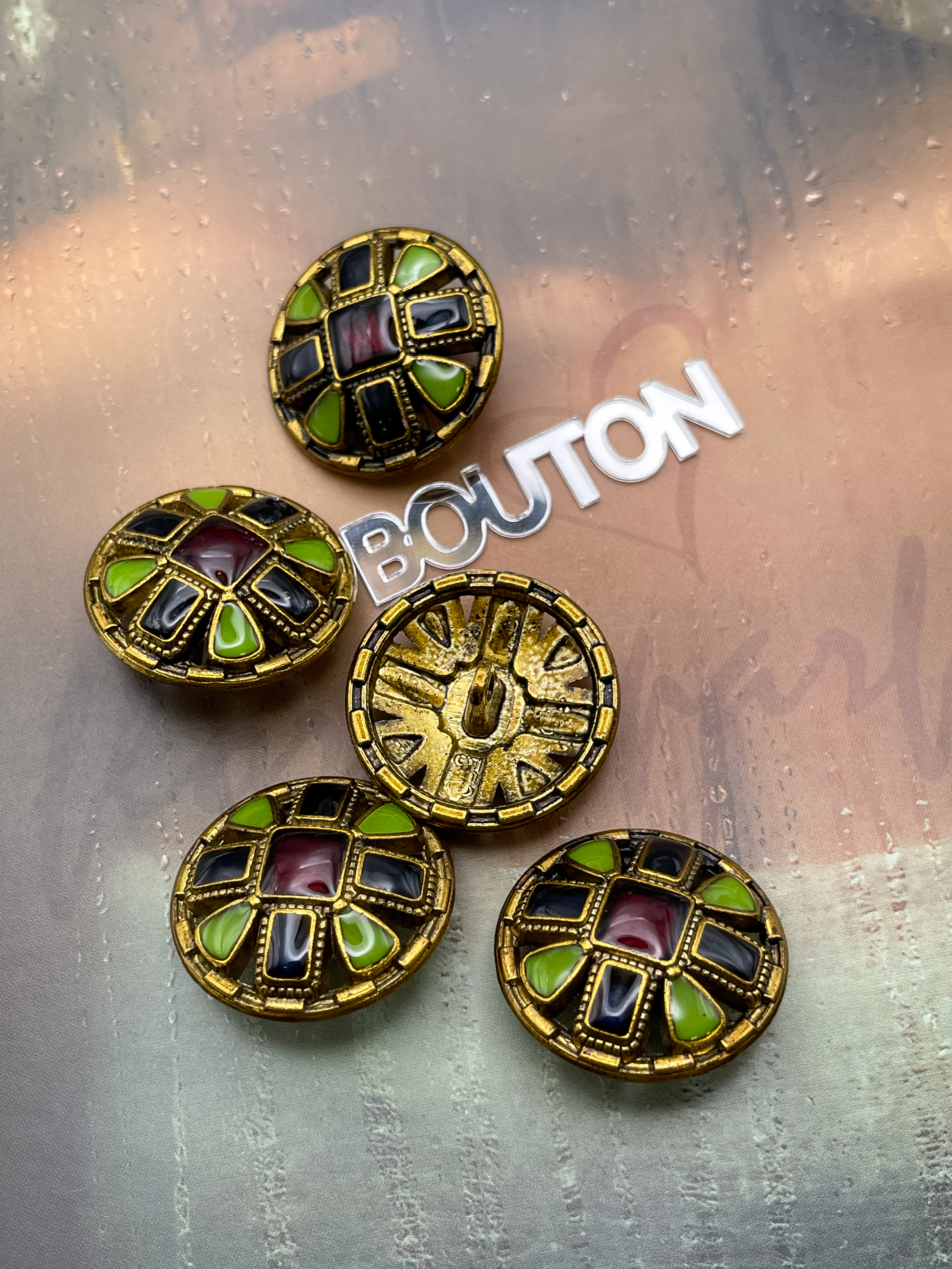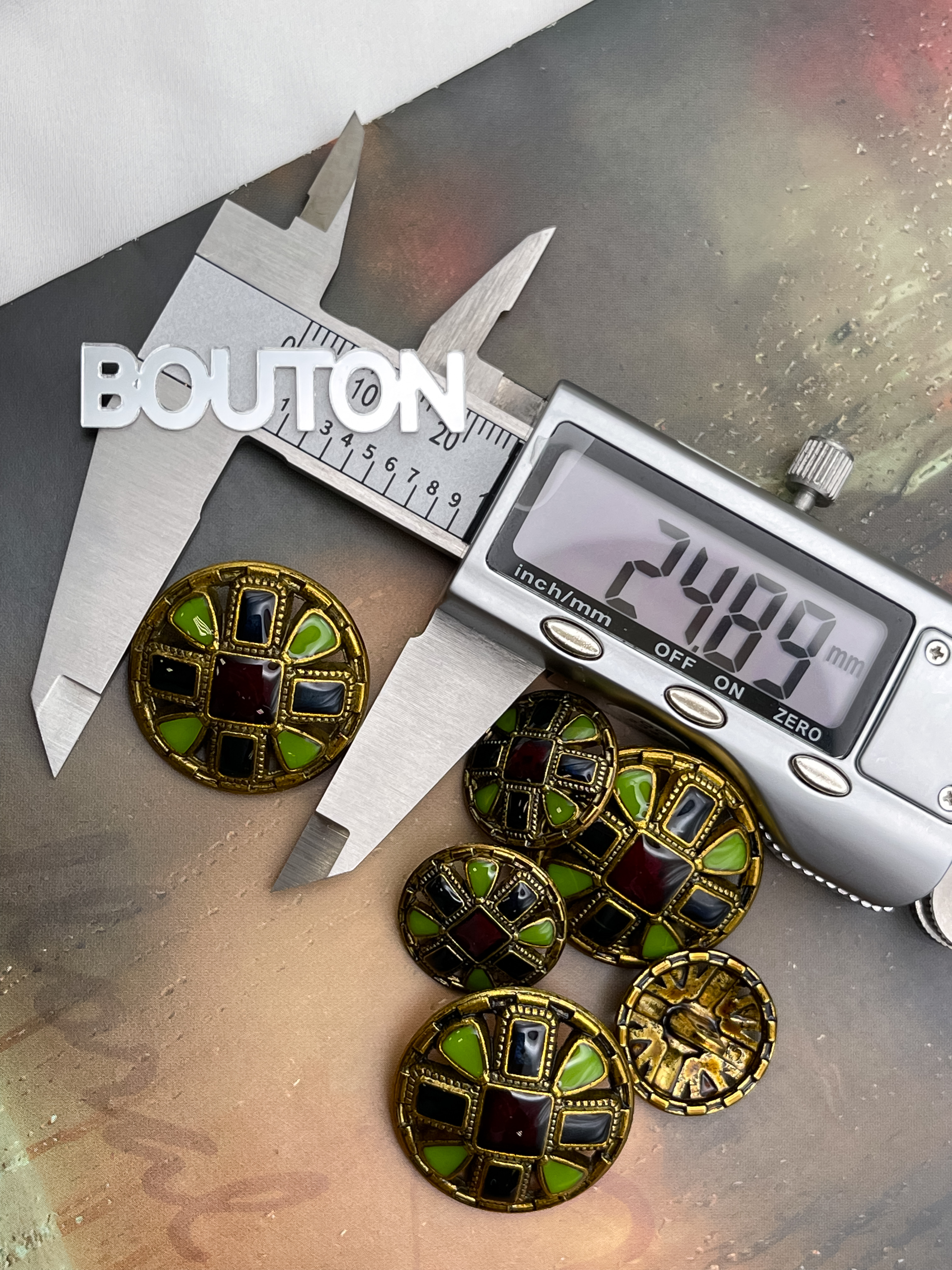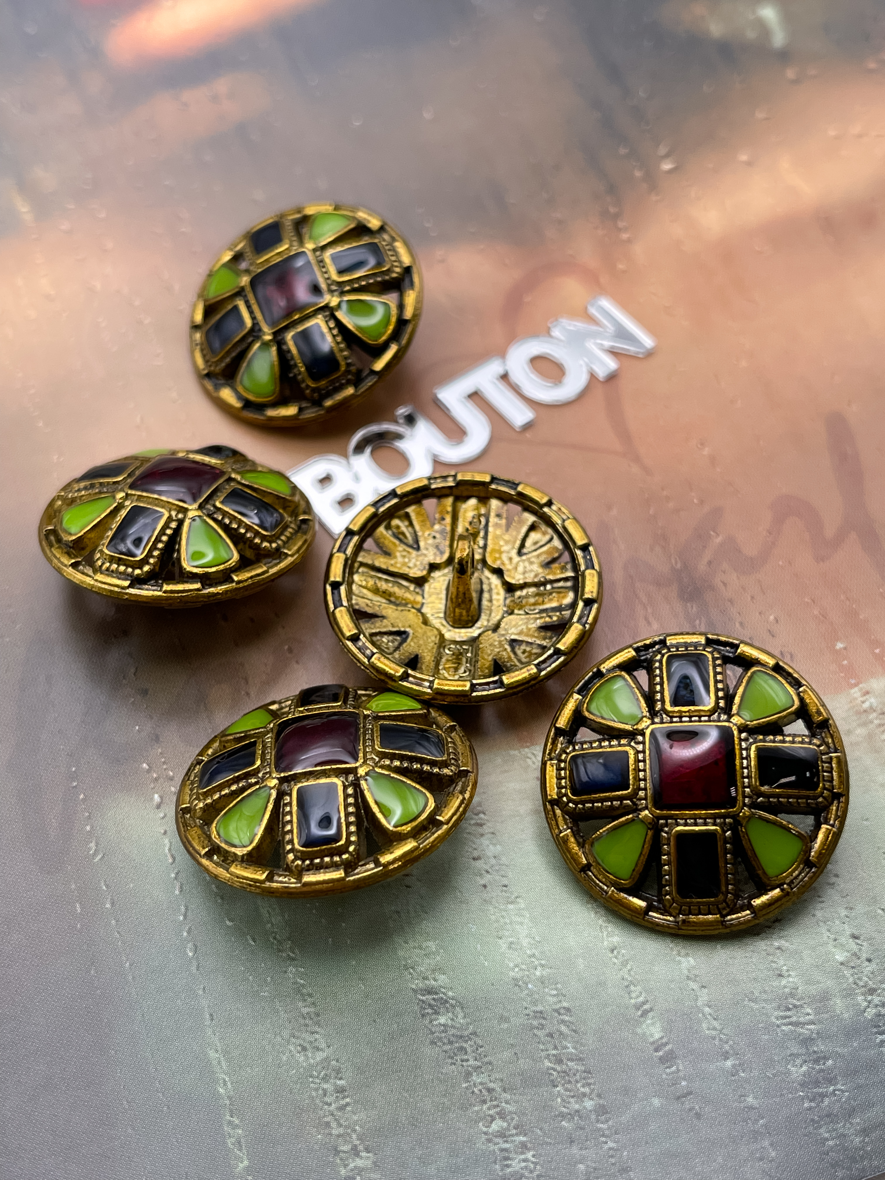 Пуговицы бронзовый металл с красной и зеленой эмалью и квадратными деталями