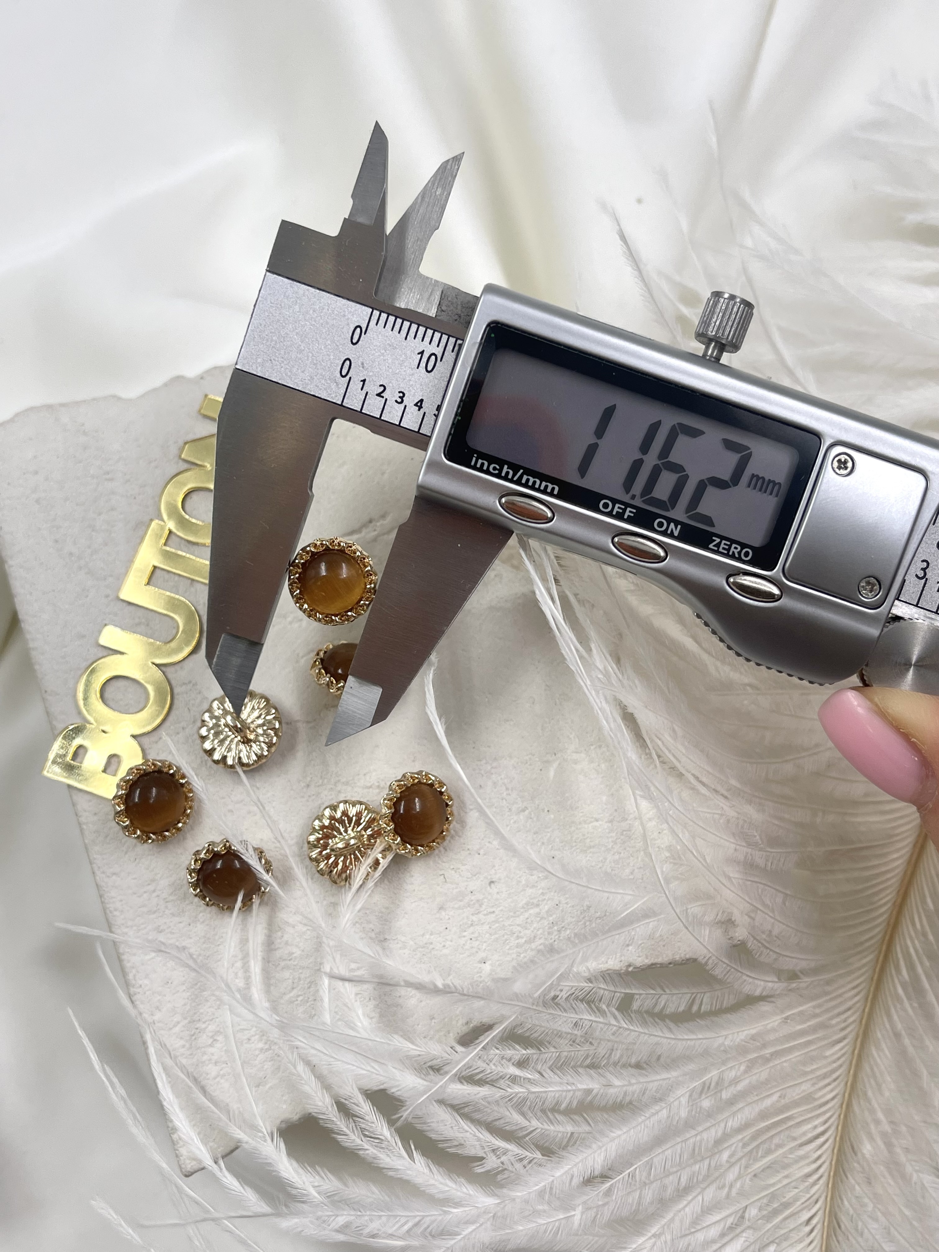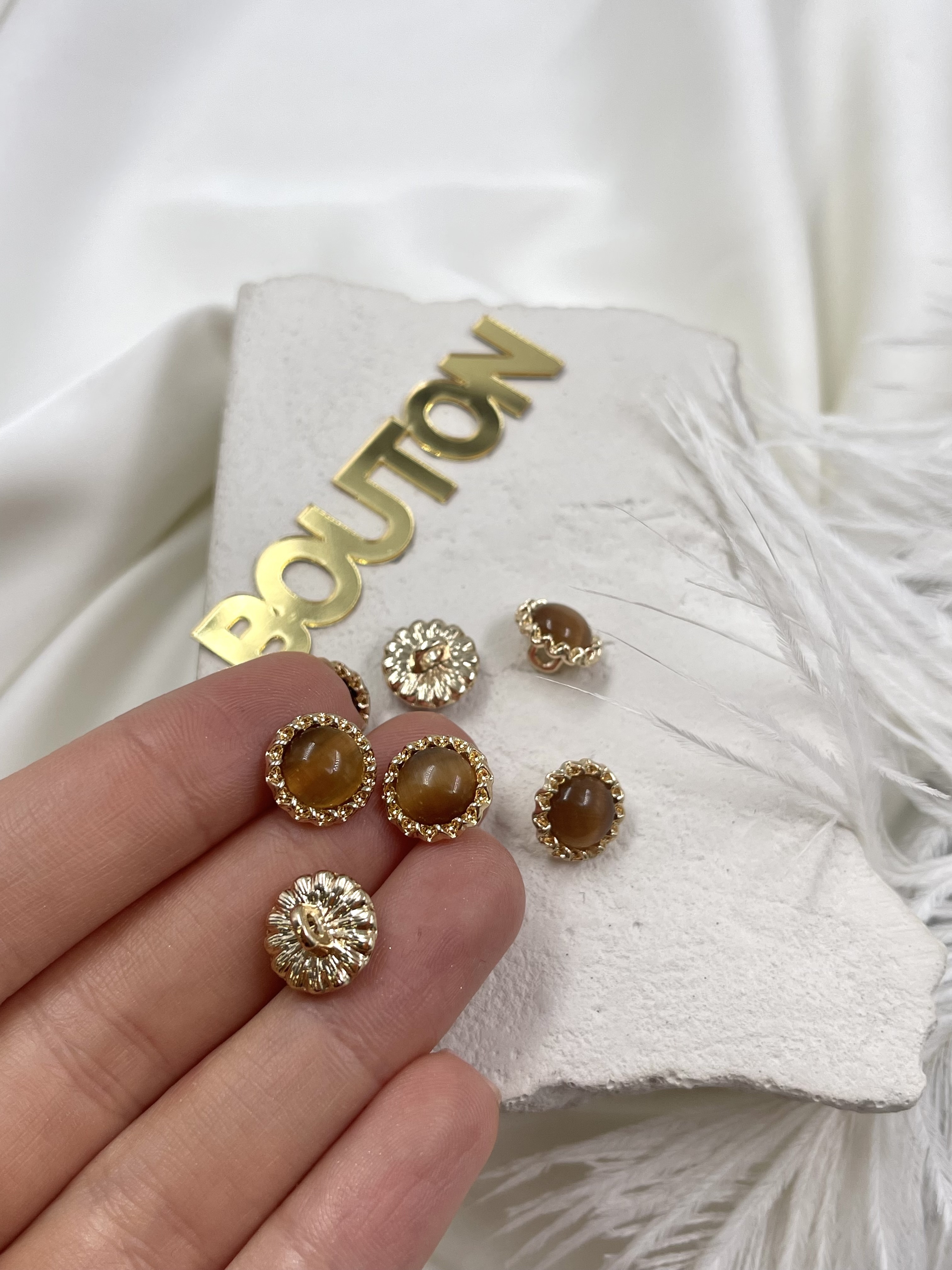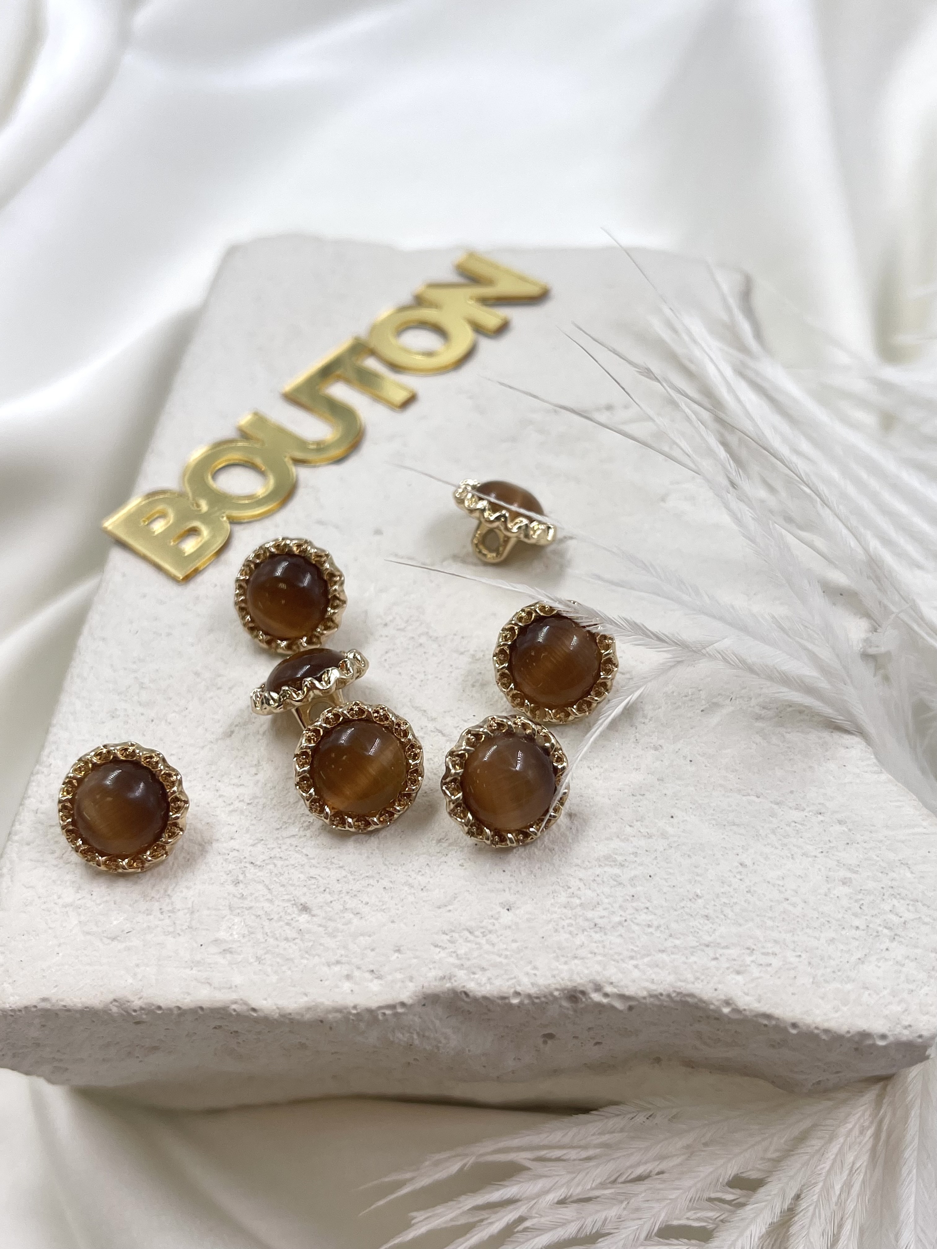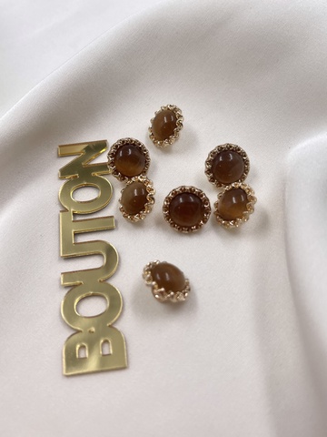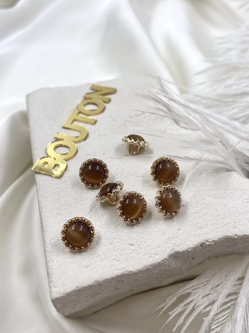 Пуговицы с красивым обрамлением золотистого металла и яркой серединкой.