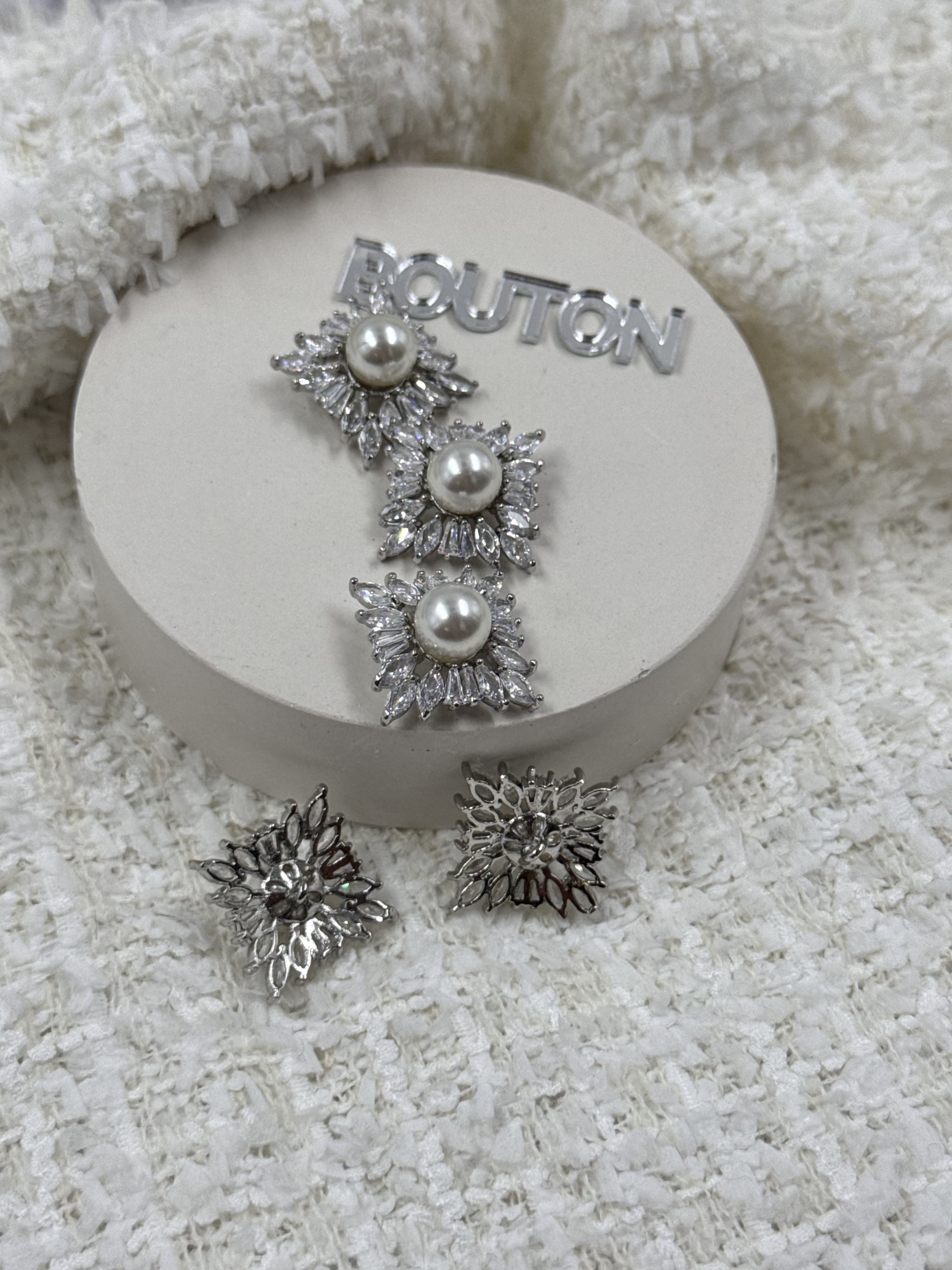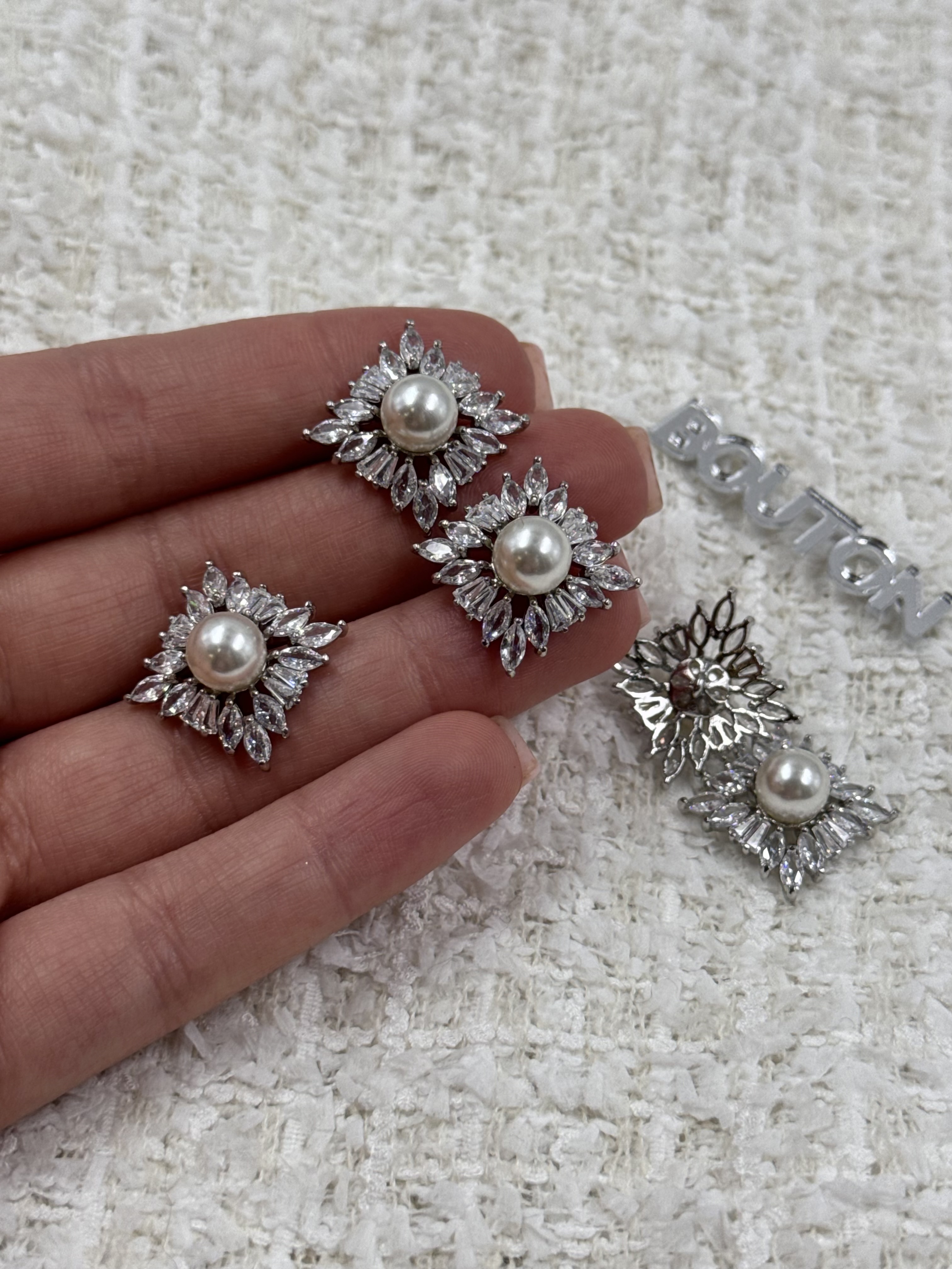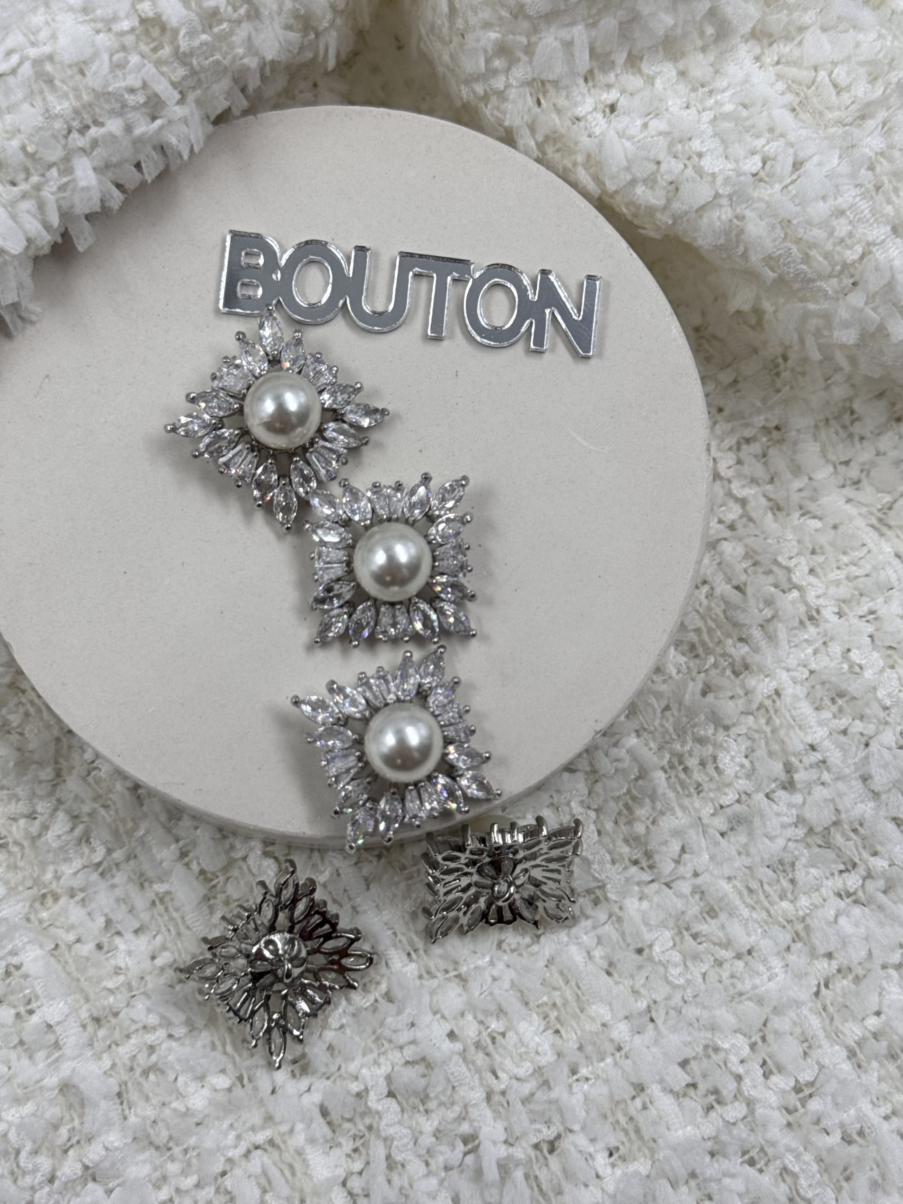 Пуговицы квадратные с горным хрусталем и жемчугом